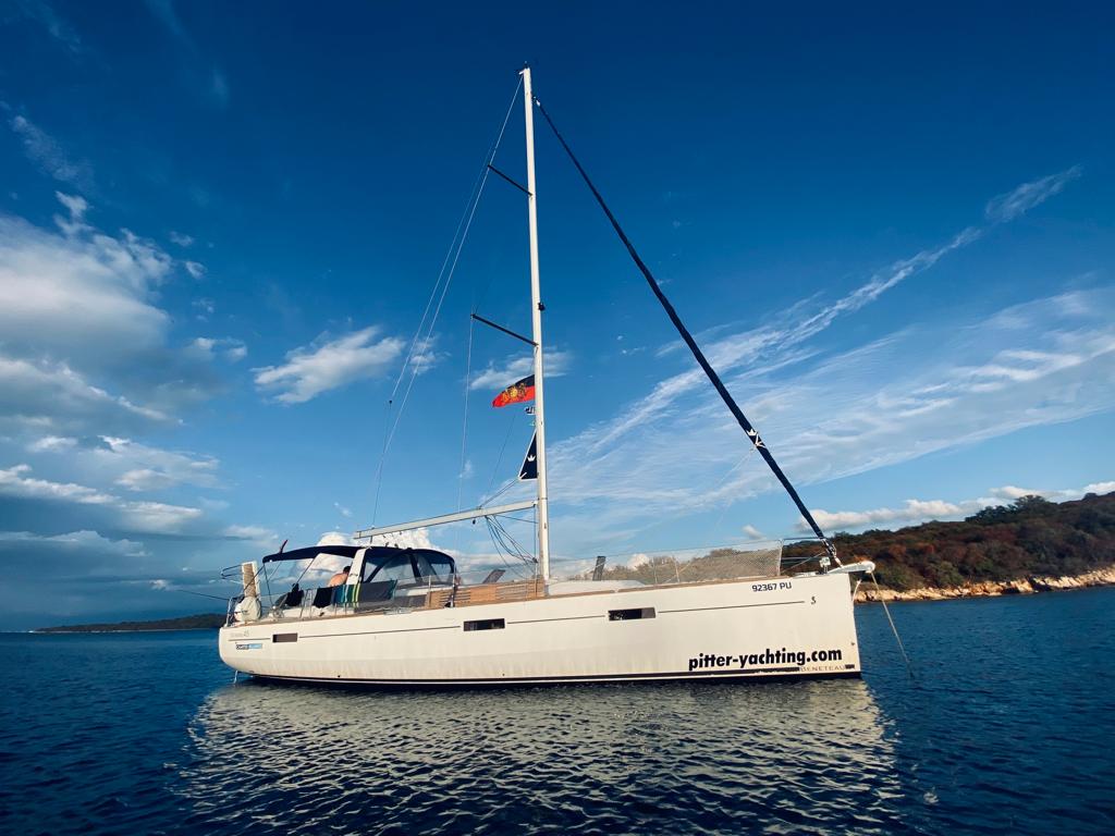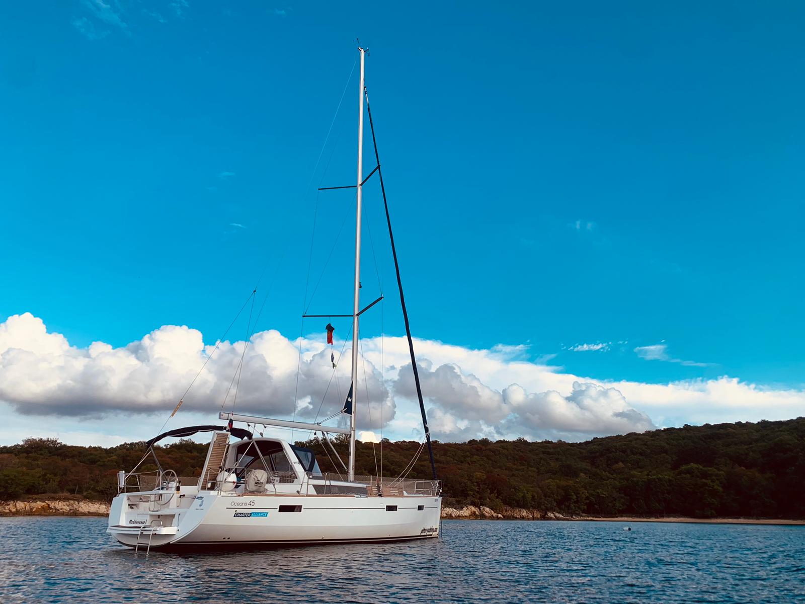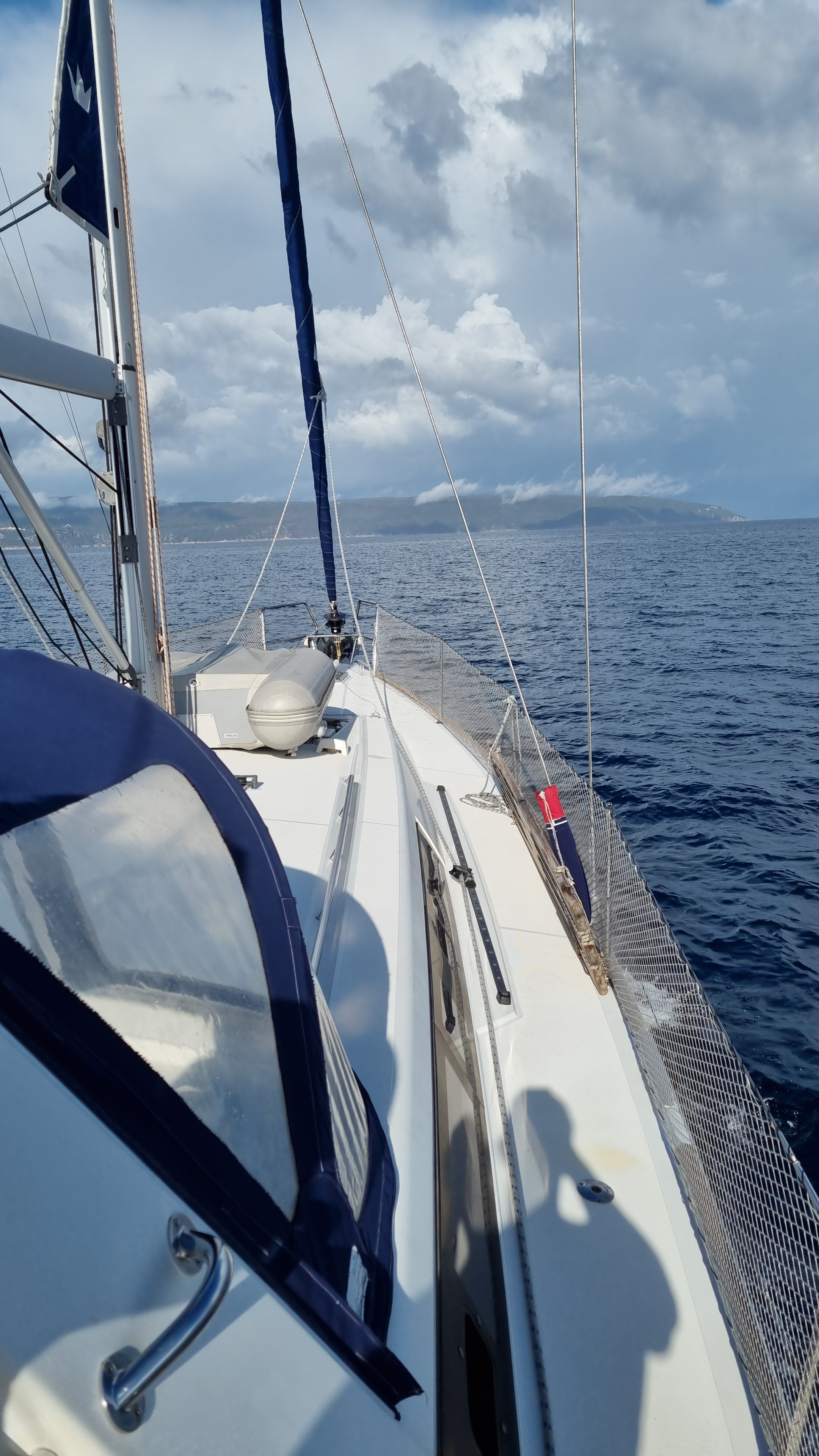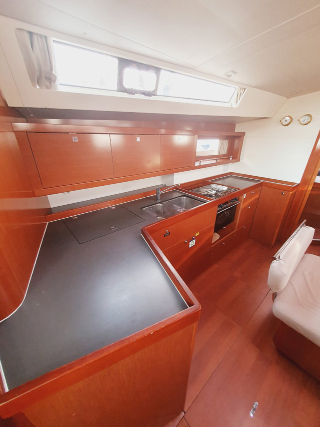 | Navigation | Barometer, Fernglas, GPS mit Kartenplotter im Cockpit, Hafenhandbücher, Handpeilkompass, Navigationsbesteck, Seekarten, Tridata (Log, Echolot, Windm.) |
