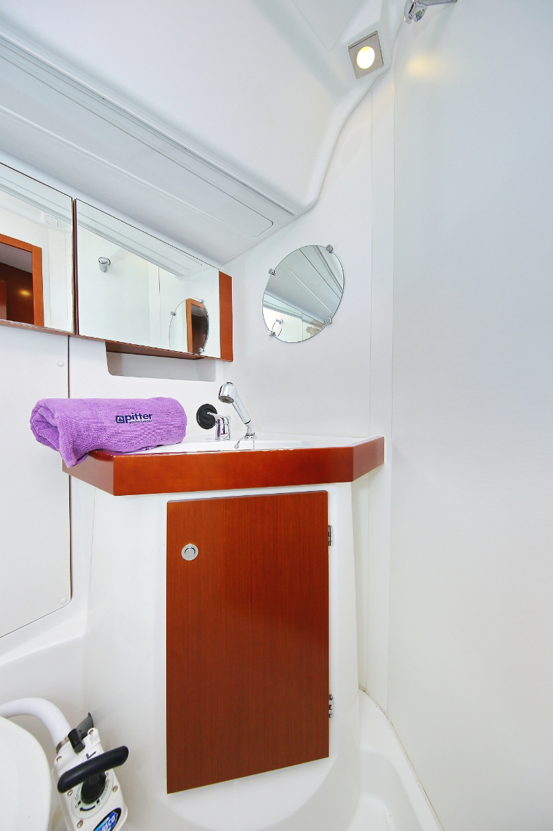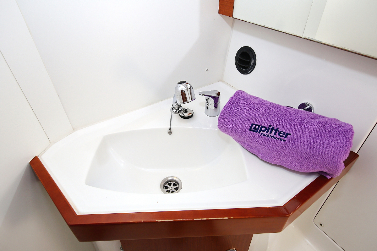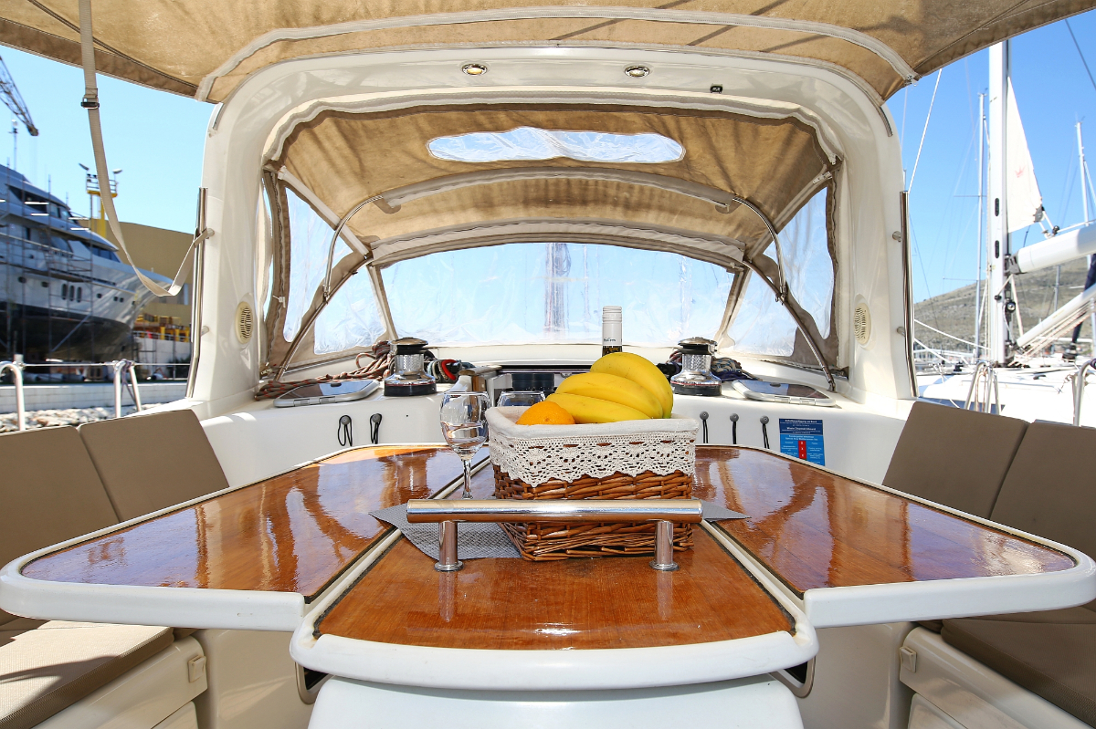 | Outside | 220 V-Landanschluss, Anker mit Kette, Ankerwinsch, Biminitop, Bootshaken, Cockpitdusche, Cockpitlautsprecher, Cockpitpolster, Cockpittisch, Dieselkanister , elektr. Ankerwinsch, Fender, Fernsteuerung für elektr. Ankerwinsch, Festmacherleinen, Gangway, Kugelfender, Kunststoff-Eimer (Pütz), Solaranlage, Sprayhood, Teak im Cockpit, Teakdeck, Wantenschneider, Wasserkanister , Wasserschlauch, Windex |