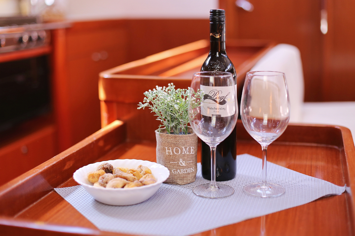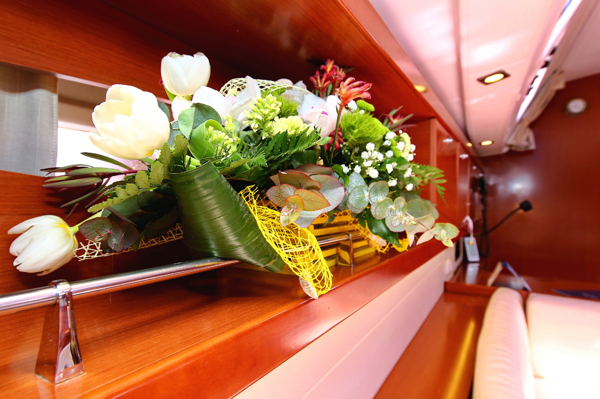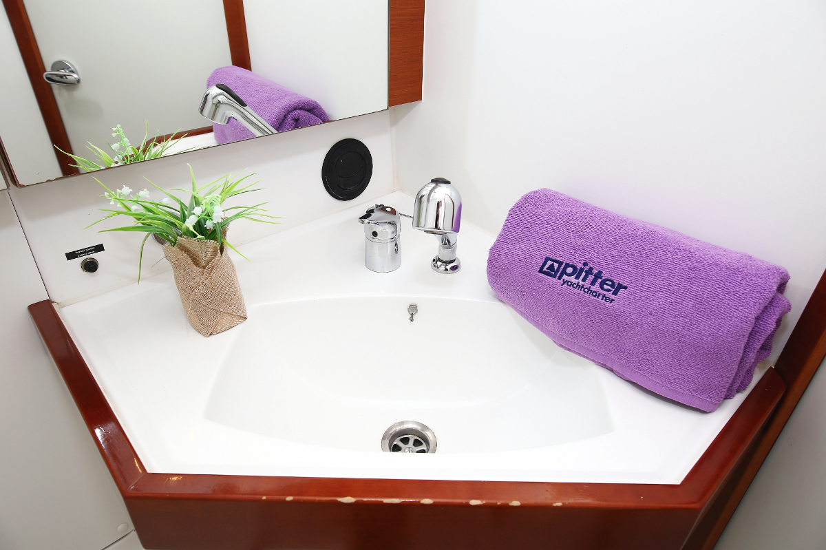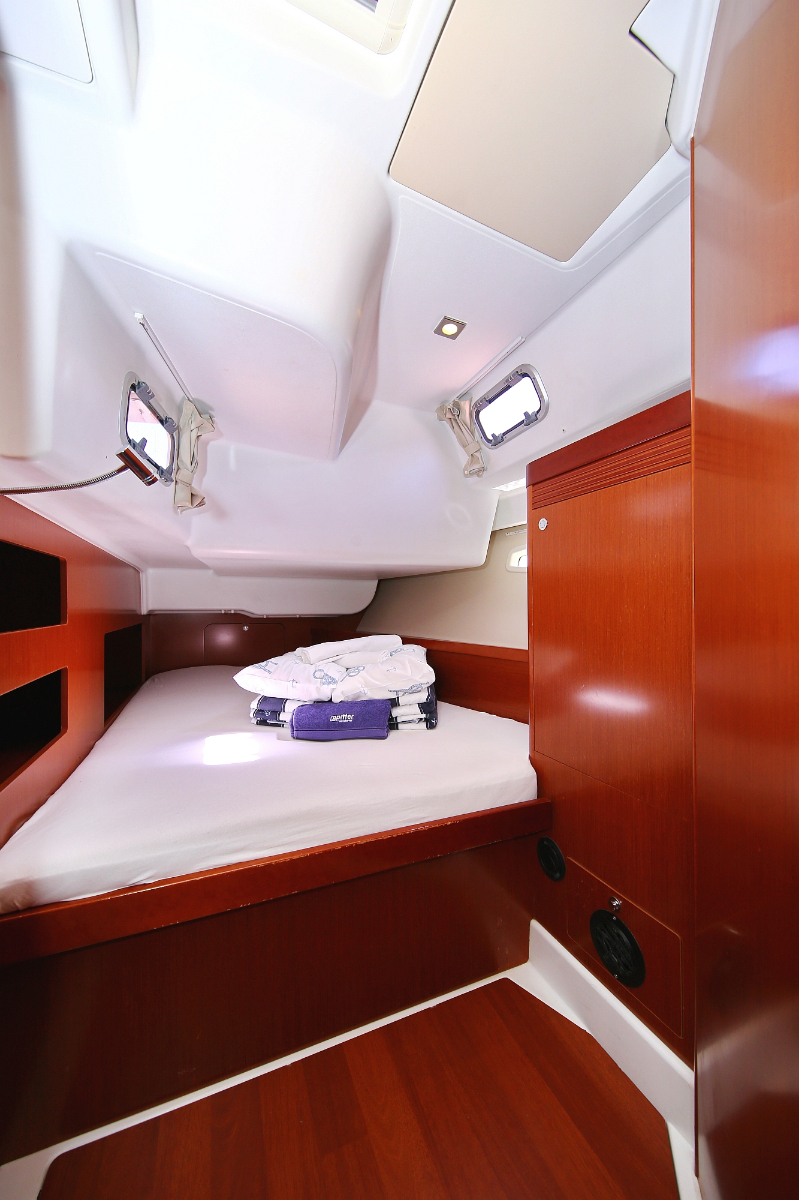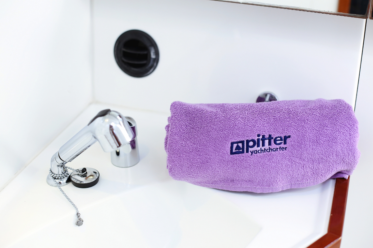 | Safety | AIS Empfänger, Autopilot, Blitzboje, Bootsmannstuhl, Bordapotheke, Bordwerkzeug, Bugstrahlruder, Feuerlöscher, Lifebelts, Nebelhorn, Notpinne, Notsignale, Radarreflektor, Reparaturset für Beiboot, Rettungsinsel, Suchscheinwerfer, Taschenlampe, UKW-Funk, Zweitanker |