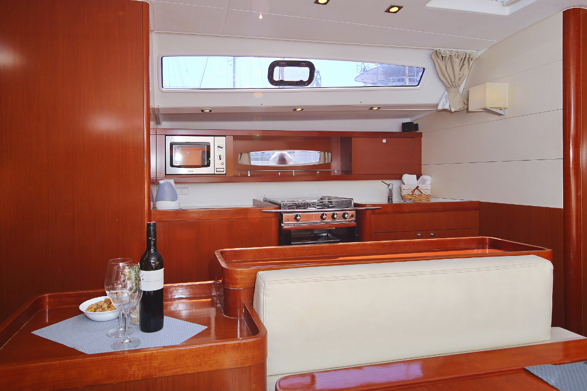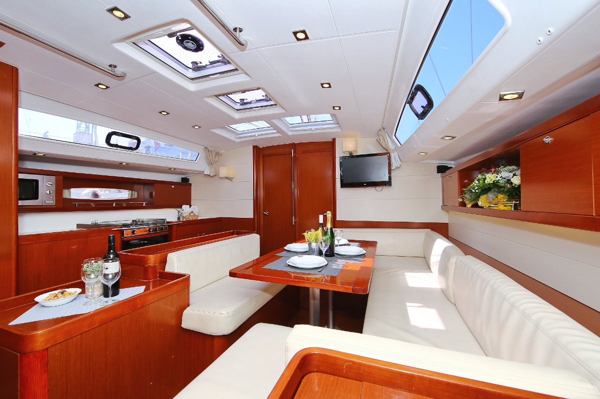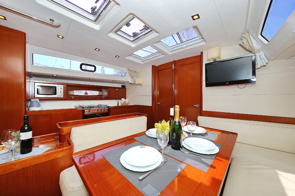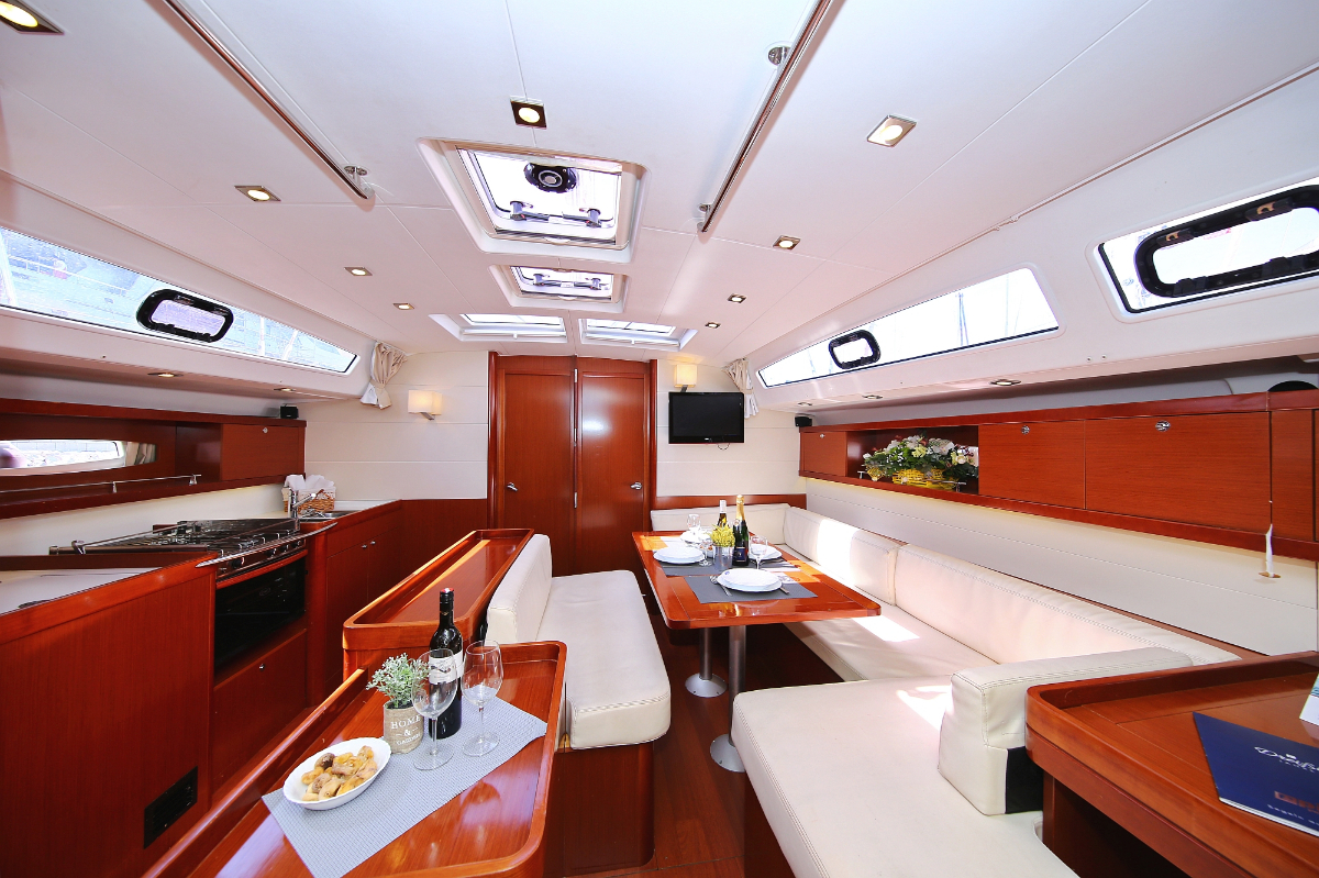 | Inside | Borduhr, Dusche, Eisbox, Heizung, Kühlschrank, Ladegerät, Luftpumpe für Beiboot, Pantryausstattung, Salontisch absenkbar, USB Steckdose, Warmwasser |