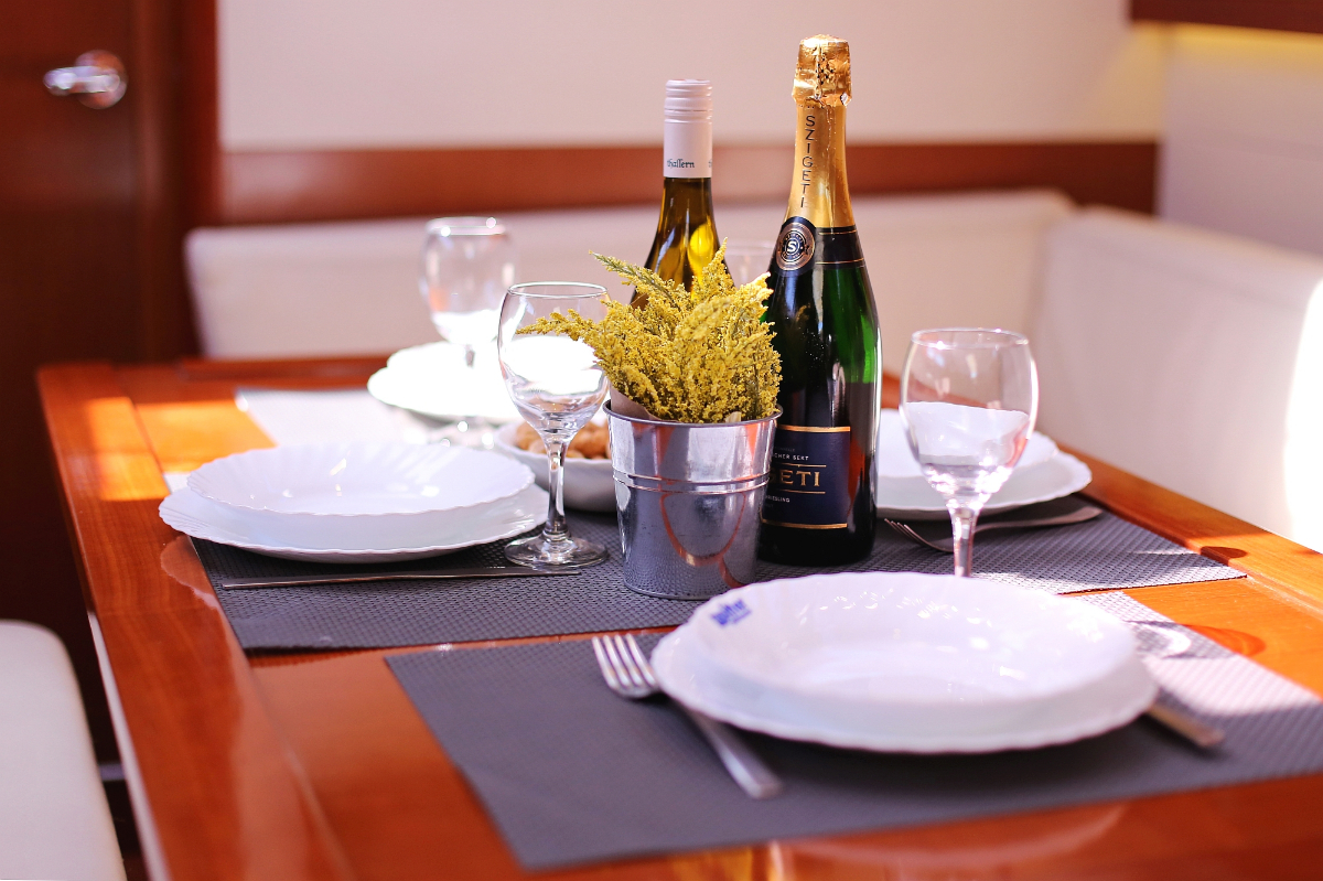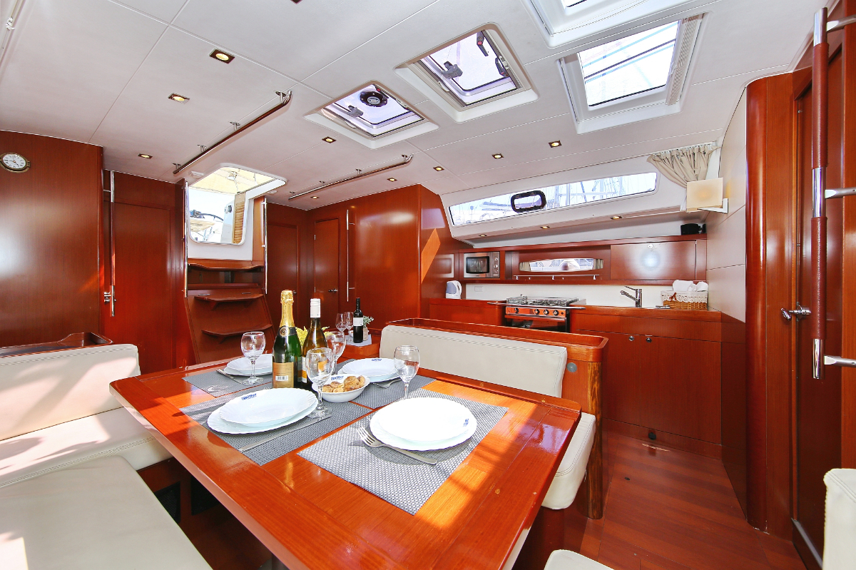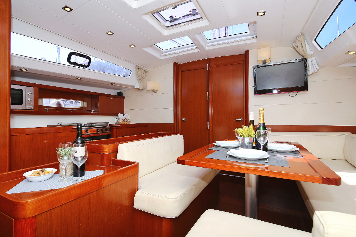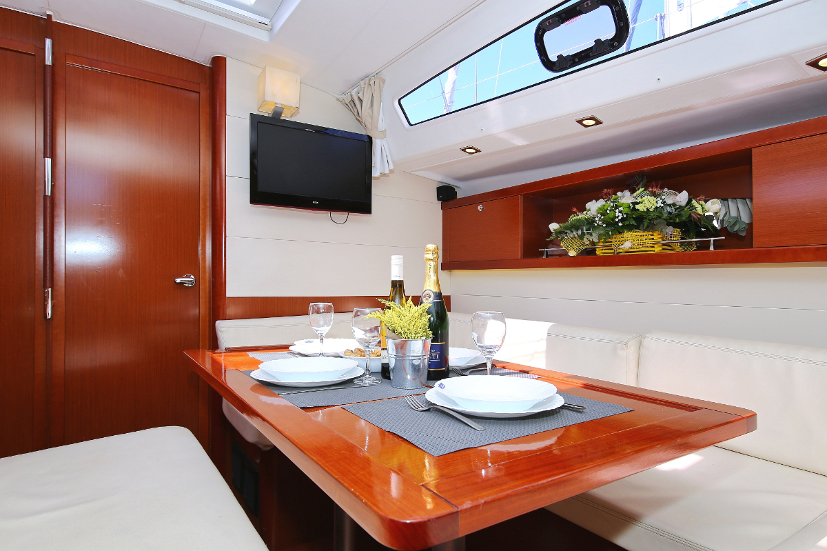 | Inside | Borduhr, Dusche, Eisbox, Heizung, Kühlschrank, Ladegerät, Luftpumpe für Beiboot, Pantryausstattung, Salontisch absenkbar, USB Steckdose, Warmwasser |