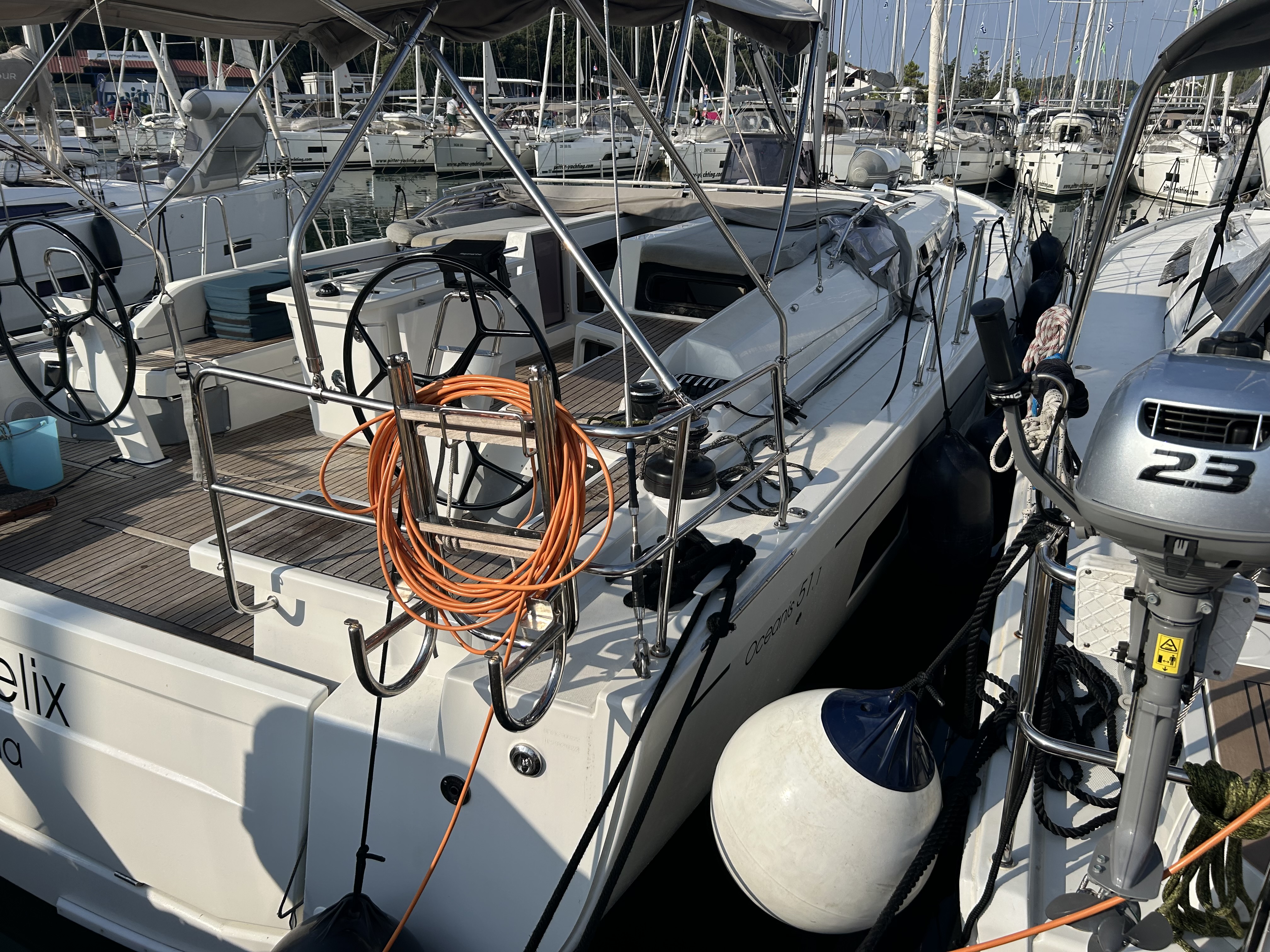 | Safety | AIS Empfänger, Ankerlicht, Automatikwesten, Autopilot, Blitzboje, Bootmesser, Bootsmannstuhl, Bordapotheke, Bordwerkzeug, Bugstrahlruder, elektr. Bilgepumpe, Feueraxt, Feuerlöscher, Nebelhorn, Notpinne, Notsignale, Rettungsinsel, Taschenlampe, UKW-Funk, Zweitanker |