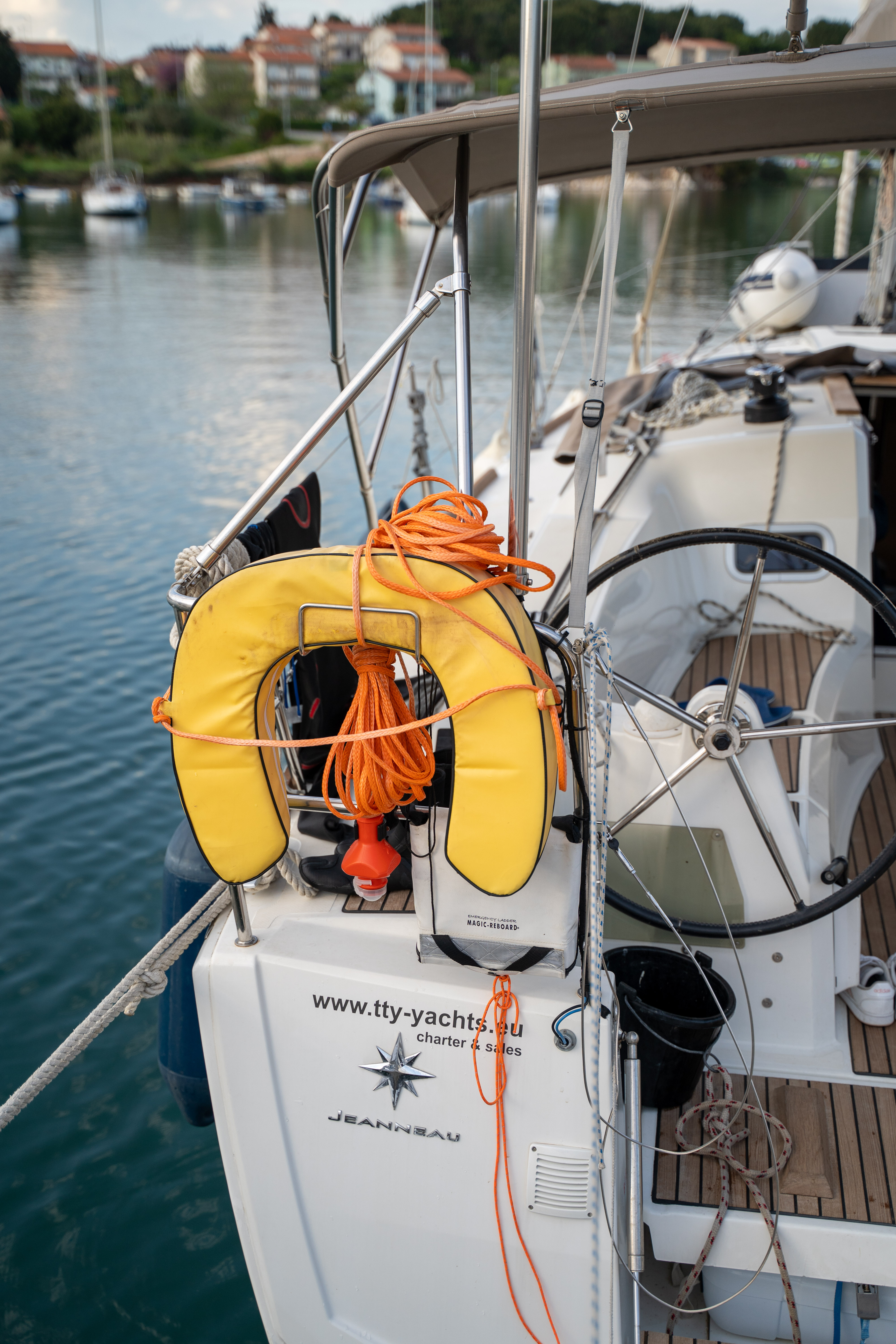 | Safety | Autopilot, Bugstrahlruder, Feststoffschwimmwesten, UKW-Funk, Zweitanker |