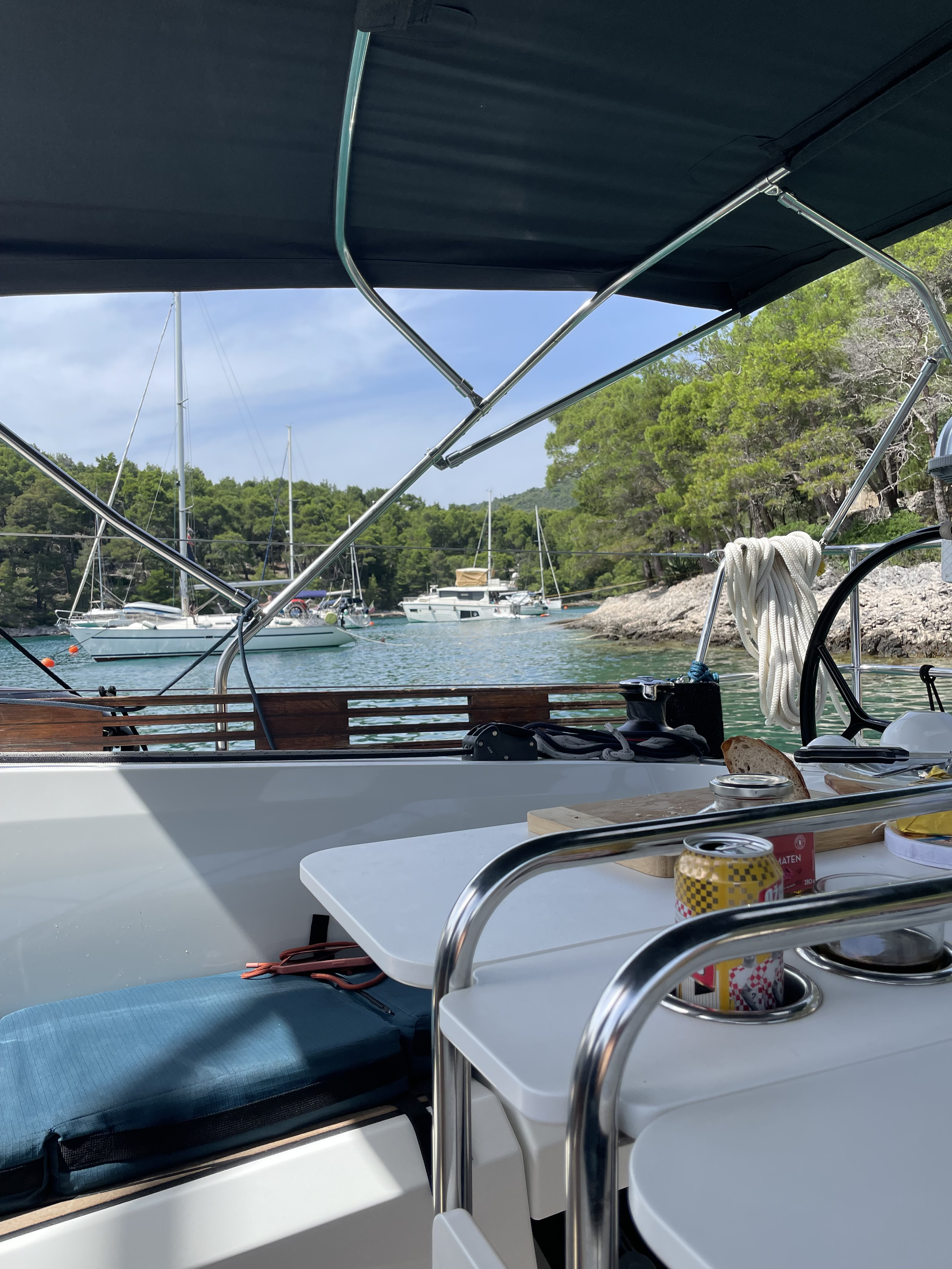 | Navigation | Barometer, GPS mit Kartenplotter im Cockpit, Handpeilkompass, Kompass, Seekarten, Tridata (Log, Echolot, Windm.), Windmesser |