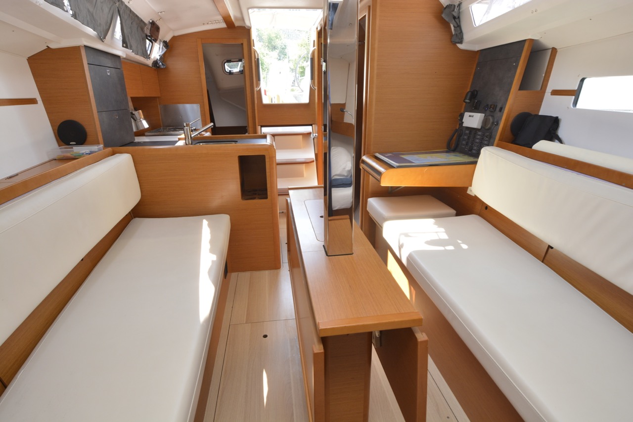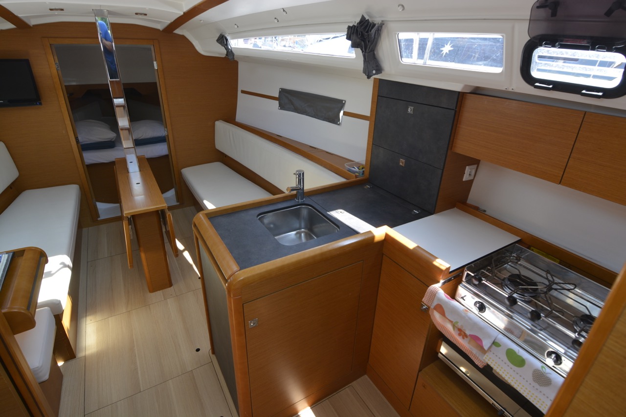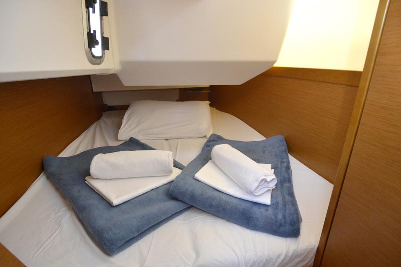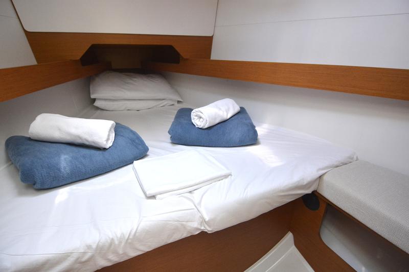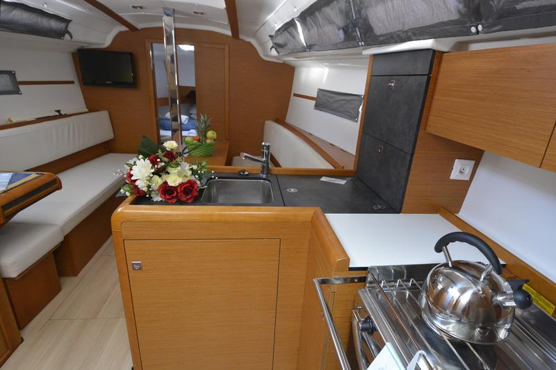 | Outside | 220 V-Landanschluss, Anker mit Kette, Badeplattform, Biminitop, Cockpitdusche, Cockpittisch, elektr. Ankerwinsch, Fender, Festmacherleinen, Sprayhood, Windex |