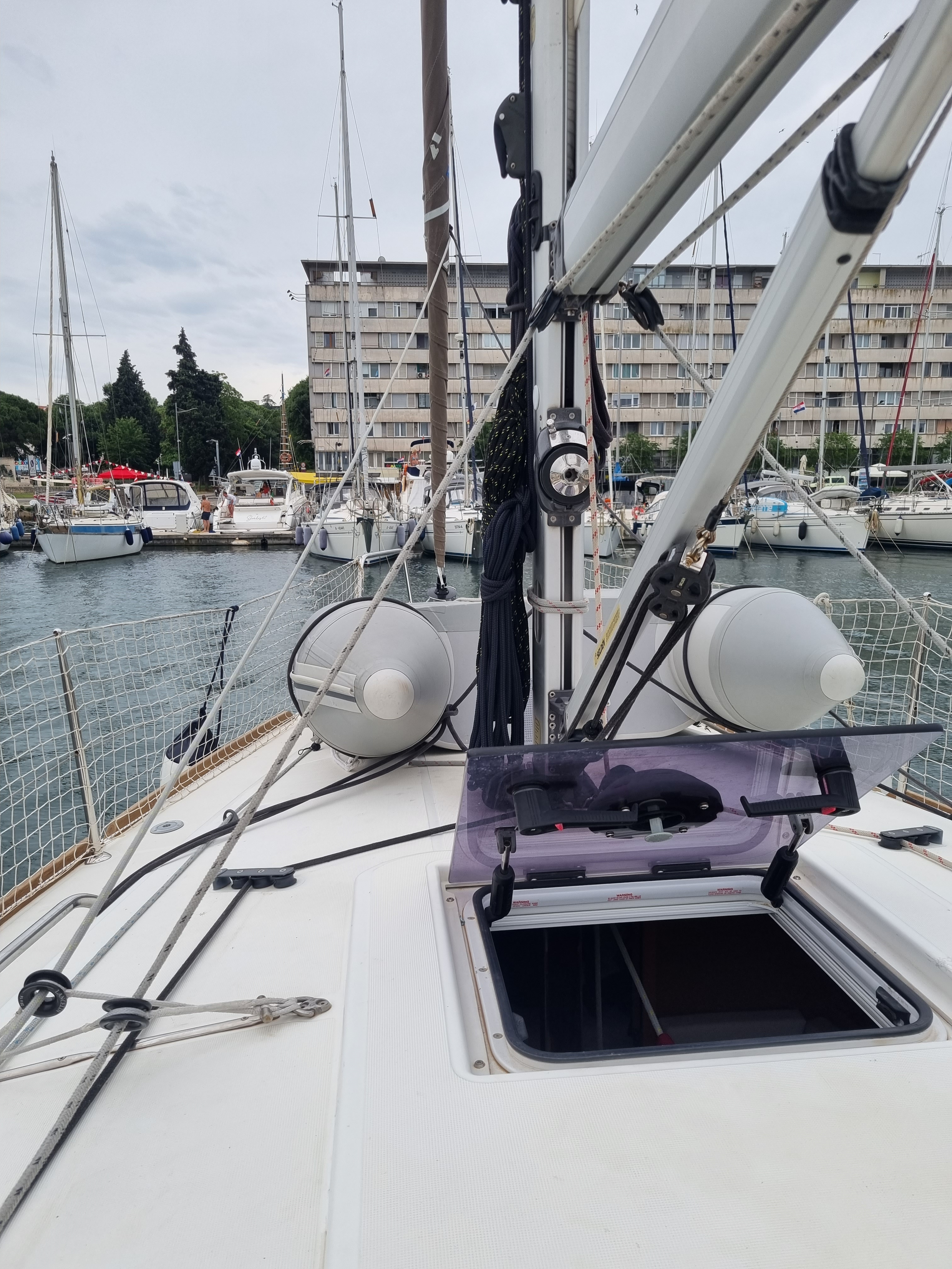 | Navigation | Echolot, GPS mit Kartenplotter im Salon, Hafenhandbücher, Handpeilkompass, Kompass, Seekarten, Sumlog, Windmesser |