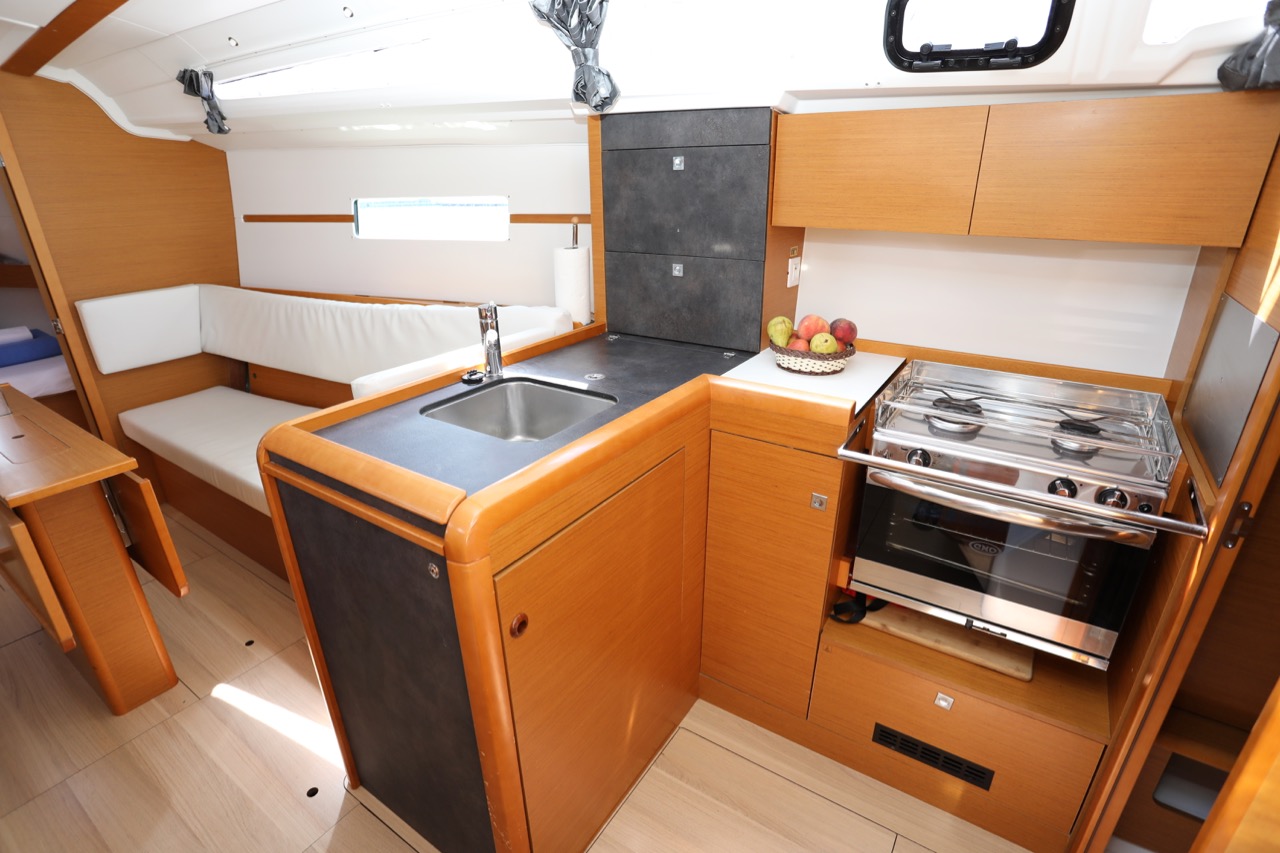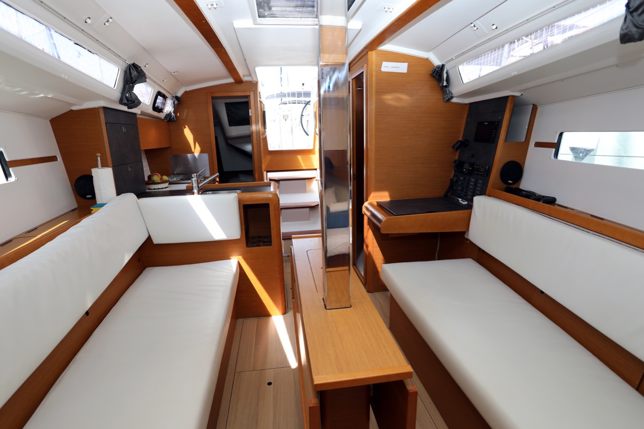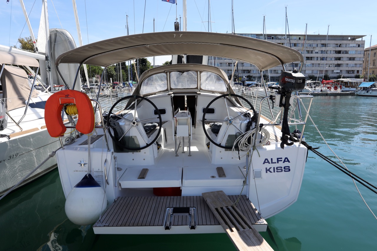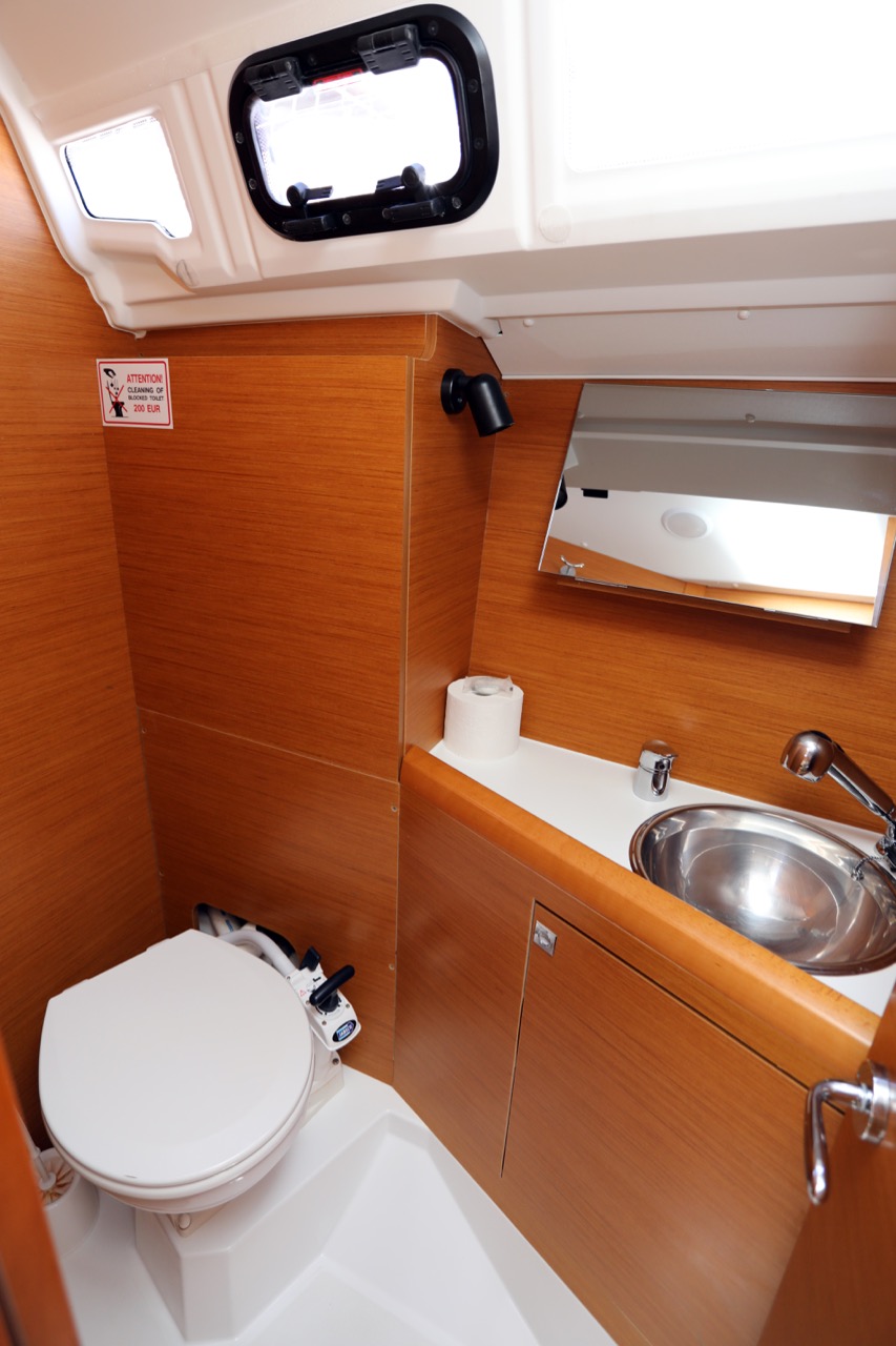 | Outside | 220 V-Landanschluss, Anker mit Kette, Badeplattform, Biminitop, Cockpitdusche, Cockpittisch, elektr. Ankerwinsch, Fender, Festmacherleinen, Sprayhood, Windex |
