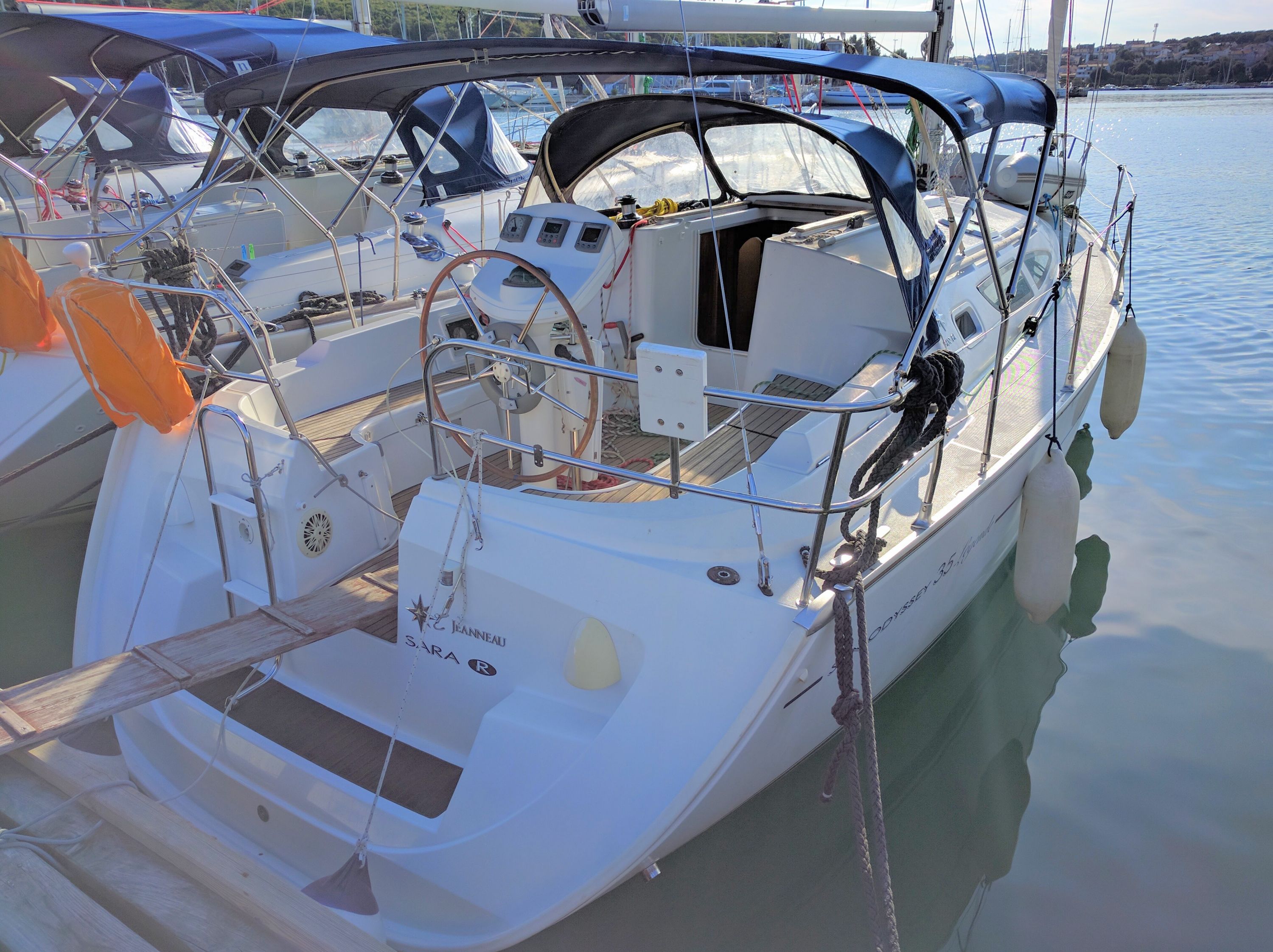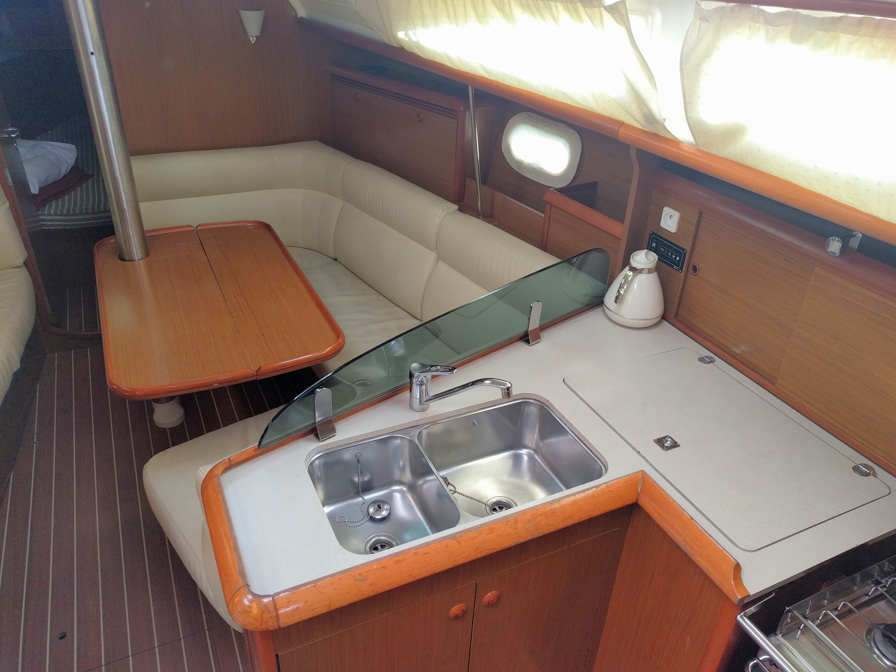| Outside | 220 V-Landanschluss, Ankerkettenzähler, Biminitop, Cockpitdusche, Cockpitlautsprecher, elektr. Ankerwinsch, Fender, Festmacherleinen, Gangway, Sprayhood, Teak im Cockpit, Wantenschneider, Wasserschlauch |