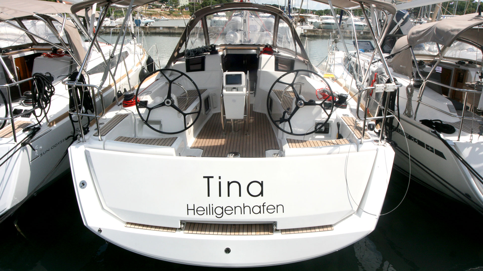 | Outside | 12 V-Anschluss, 220 V-Landanschluss, Anker mit Kette, Badeleiter, Badeplattform, Biminitop, Bootshaken, Cockpitdusche, Cockpitlautsprecher, Cockpitpolster, Cockpittisch, elektr. Ankerwinsch, Fender, Festmacherleinen, Gangway, Kugelfender, Solaranlage, Sprayhood, Teak auf Badeplattform, Teak im Cockpit, Wasserschlauch, Winschen |