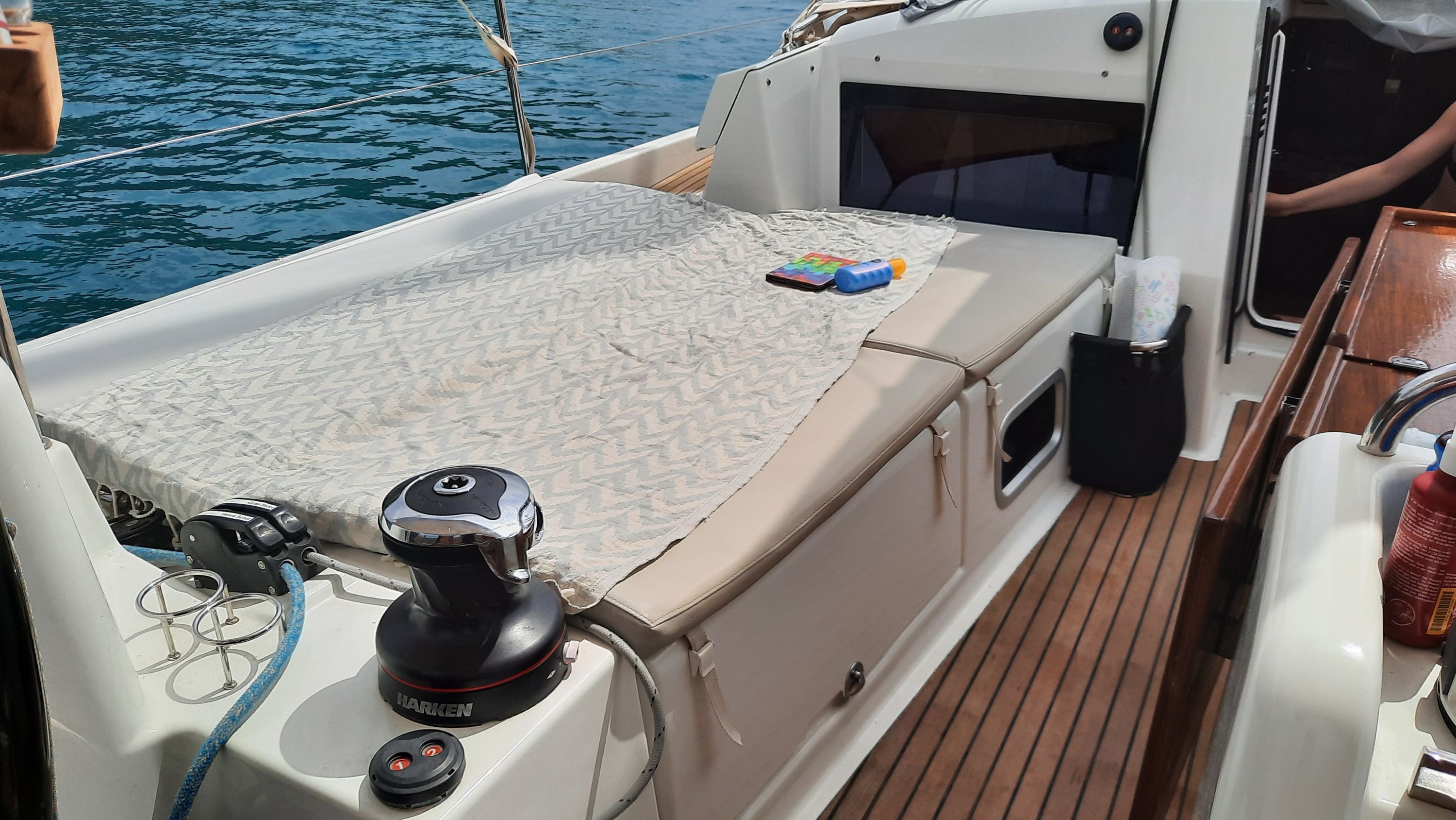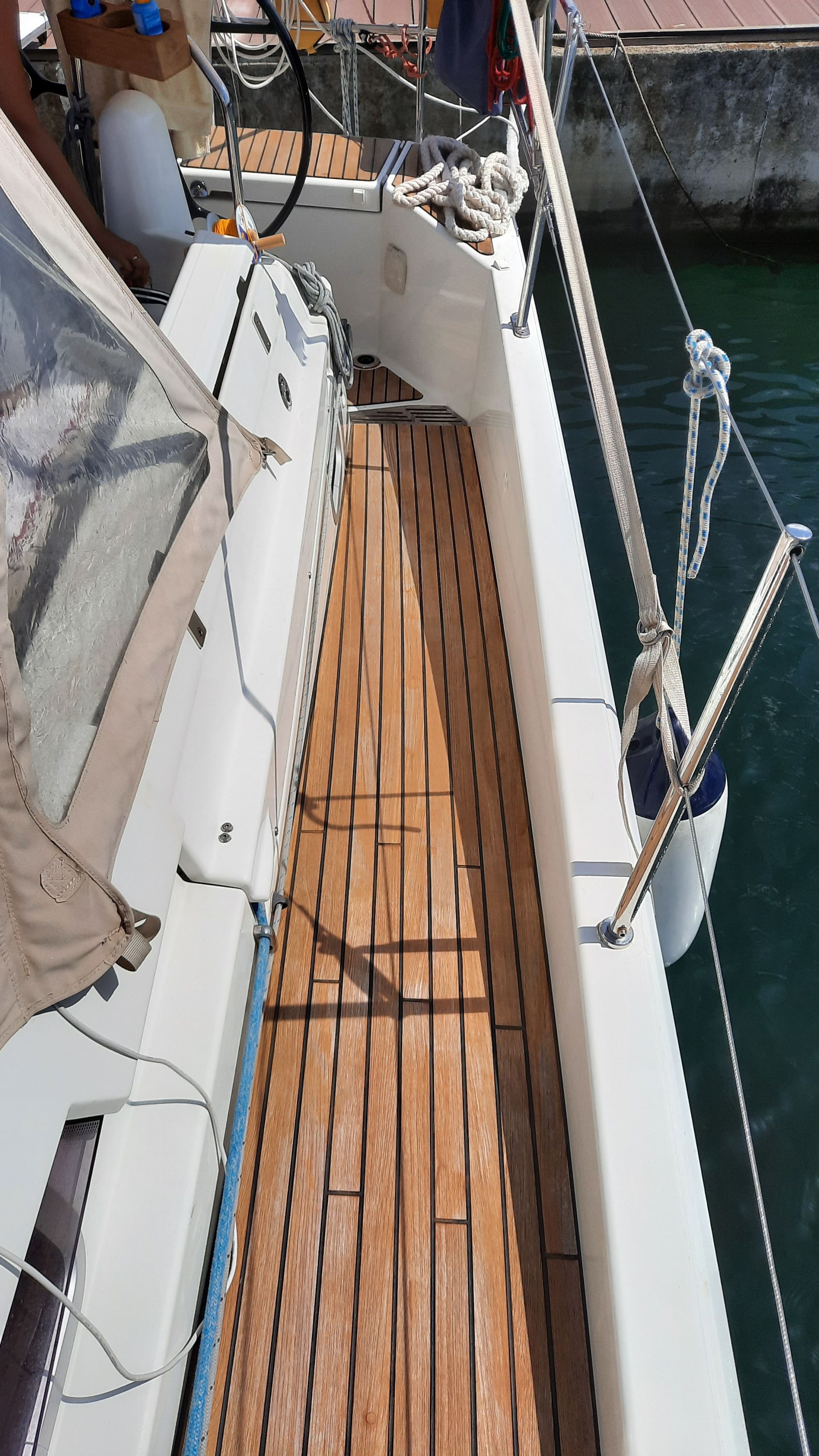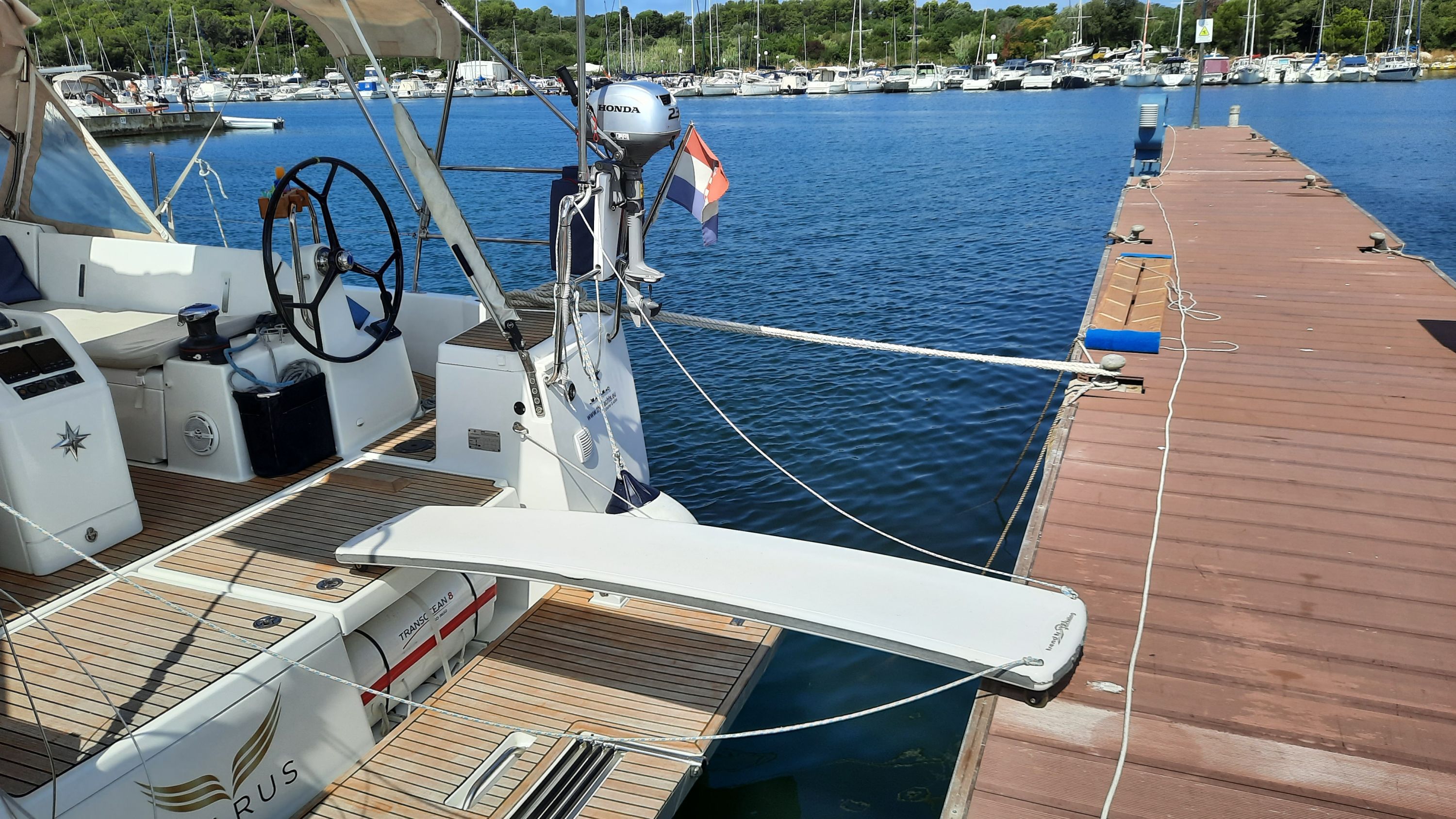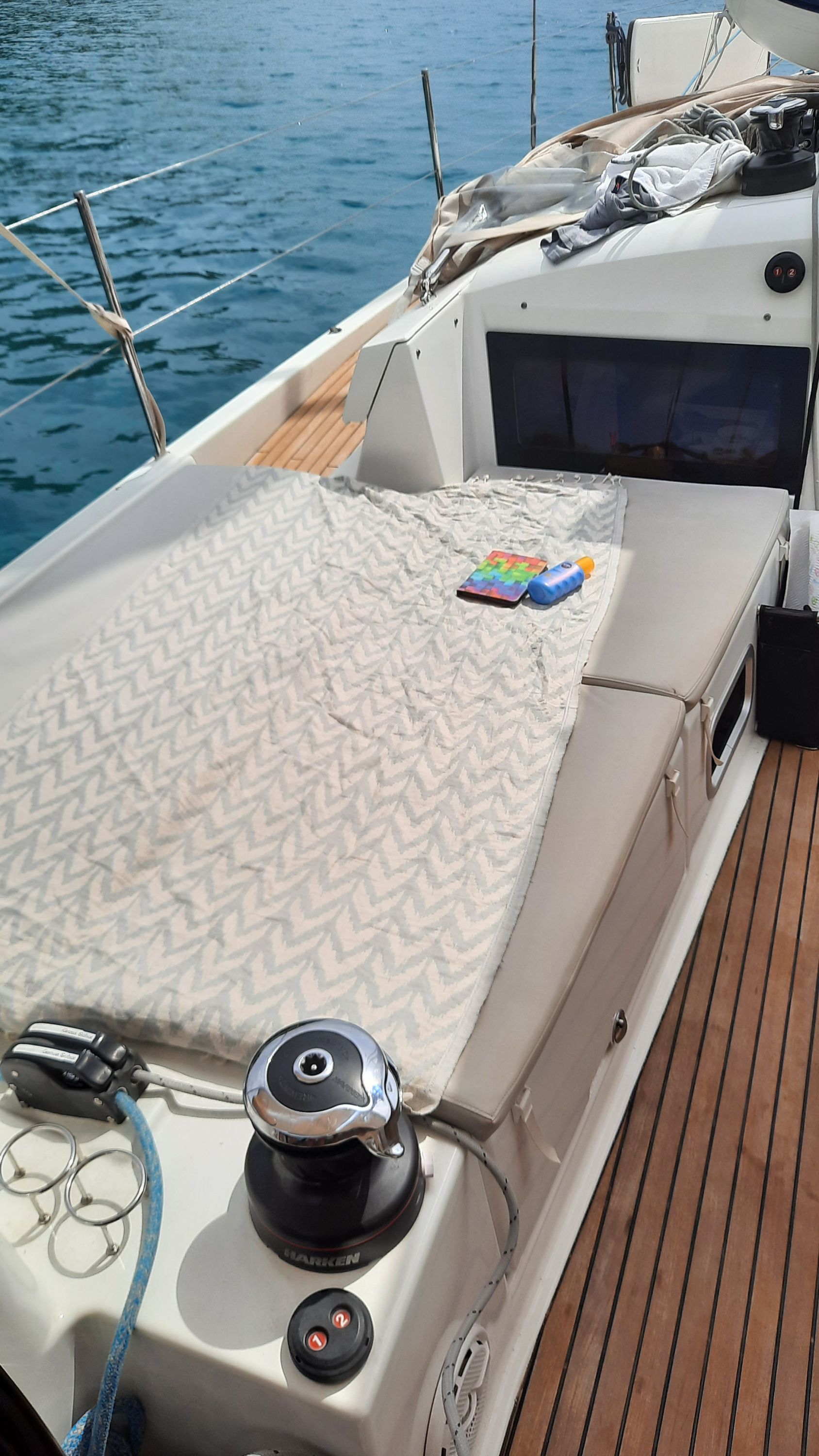 | Outside | 220 V-Landanschluss, Badeplattform, Biminitop, Cockpitdusche, Cockpitlautsprecher, Cockpitpolster, Cockpittisch, Delta-Anker, elektr. Ankerwinsch, Solaranlage, Sprayhood, Teakdeck |