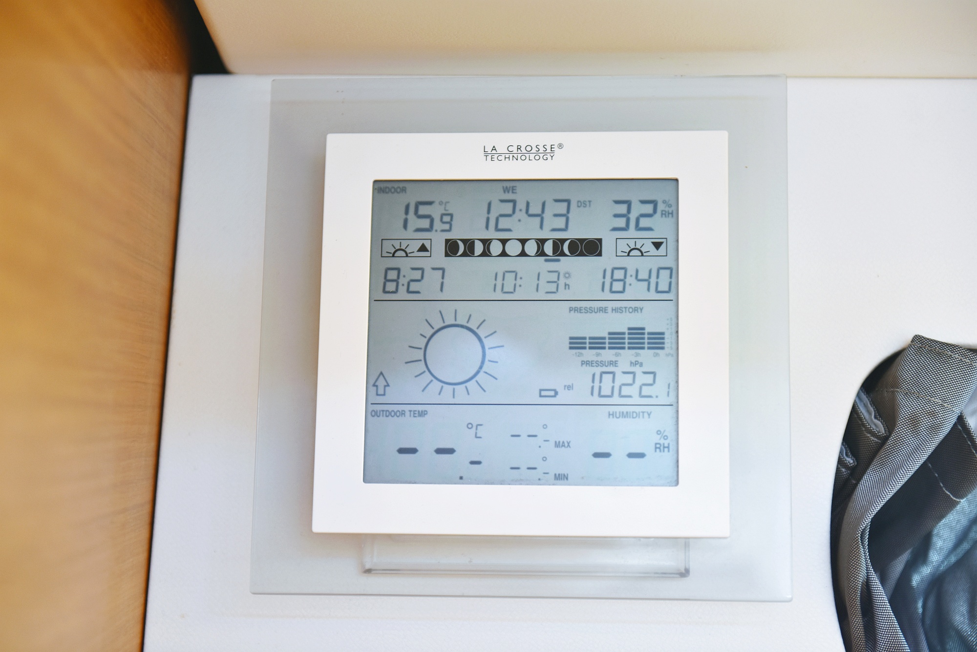 | Navigation | GPS mit Kartenplotter im Cockpit, Kompass, Navigationsbesteck, Seekarten, Steuerkompass, Tridata (Log, Echolot, Windm.), Windmesser |