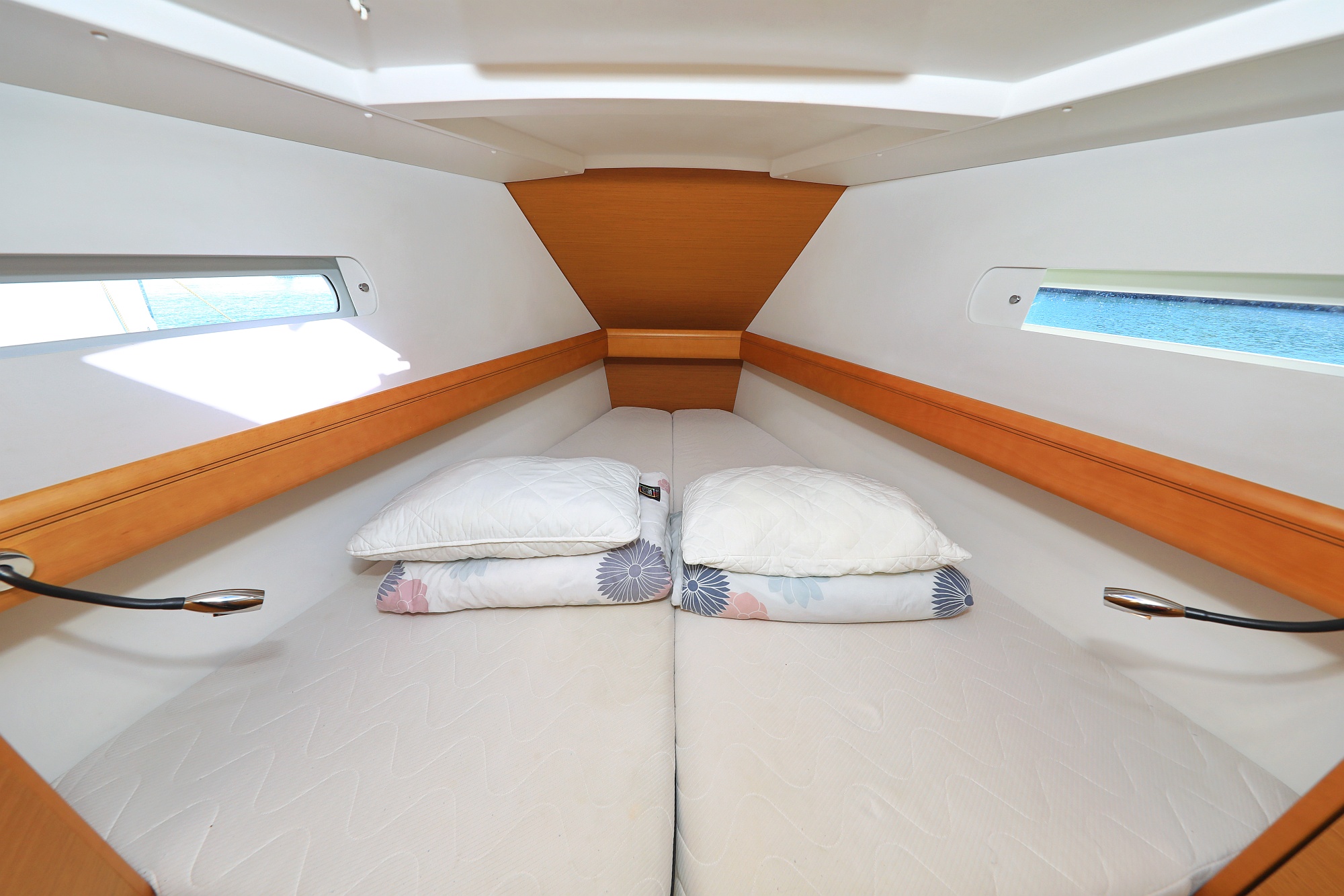 | Safety | Autopilot, Bordapotheke, Bordwerkzeug, Bugstrahlruder, Feststoffschwimmwesten, Feuerlöscher, Taschenlampe, UKW-Funk |