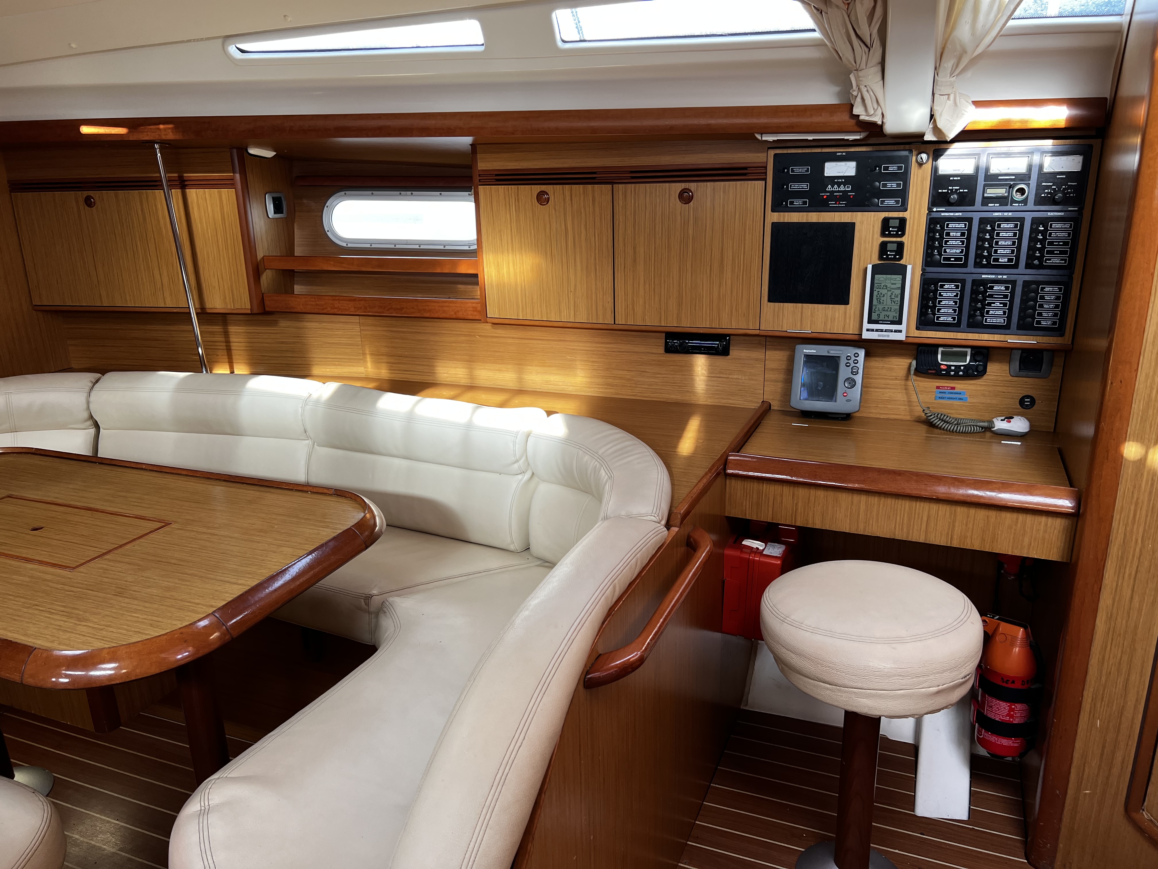 | Navigation | GPS mit Kartenplotter im Salon, Kartenplotter im Cockpit, Radar, Tridata (Log, Echolot, Windm.) |