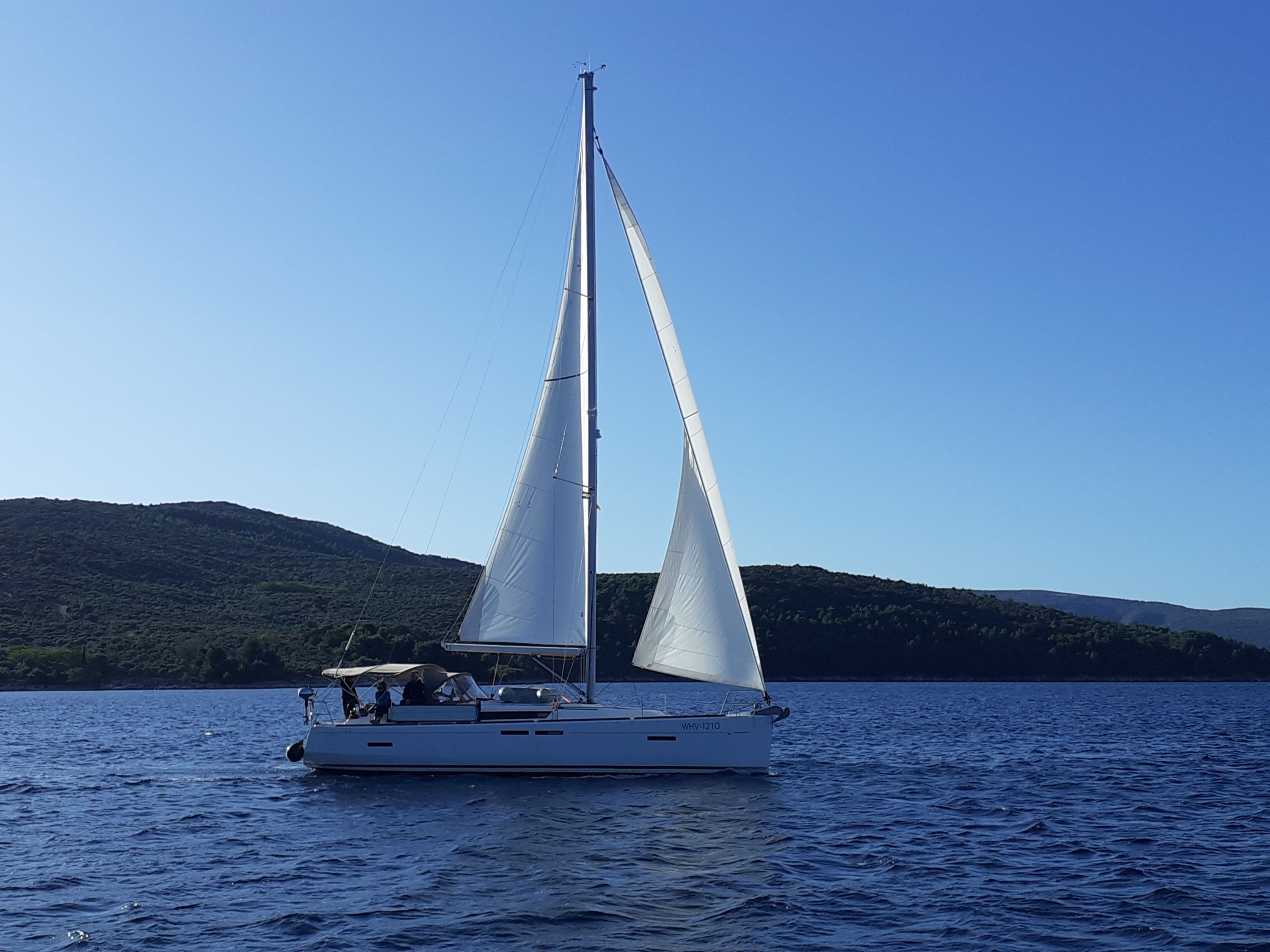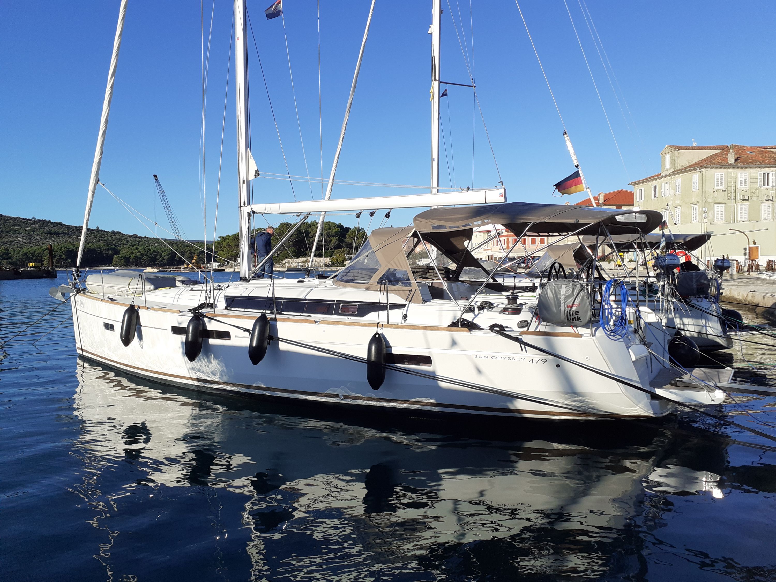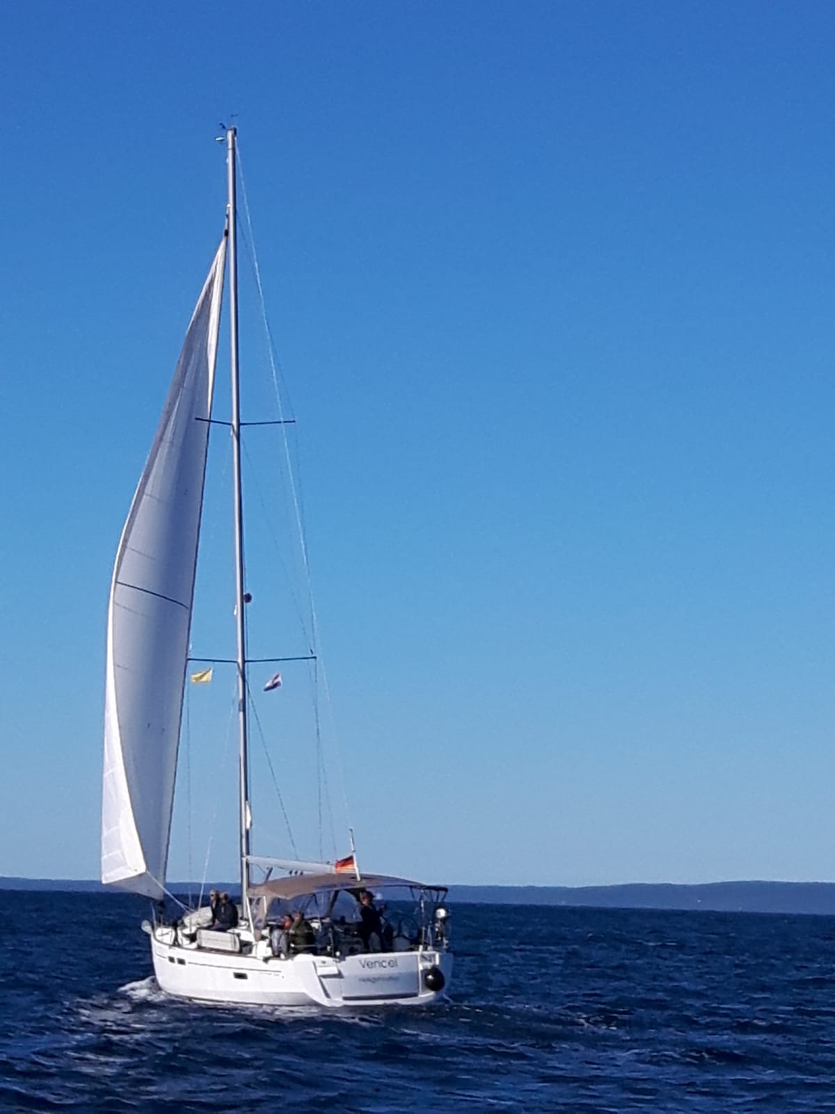 Die Sudn Odyssee 479 hat leider nur eine Fock3 und keine Genua, bei Wind bis 10kn ist sie leider untertakelt! Ab 15kn Wind fängt es an Spaß zumachen, mit ihr zu segeln.