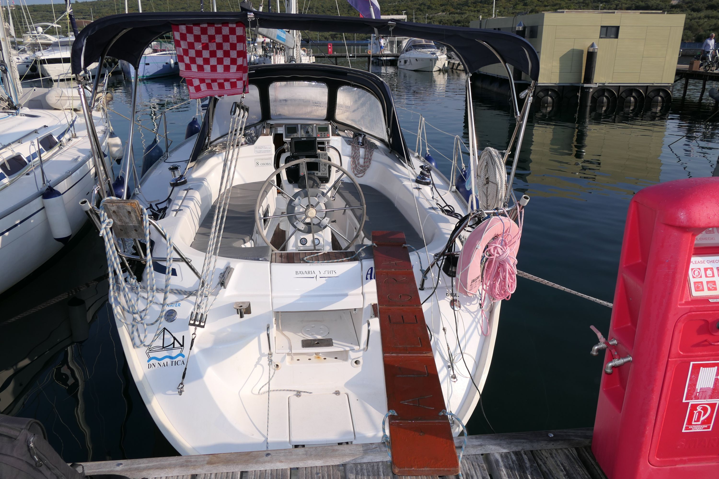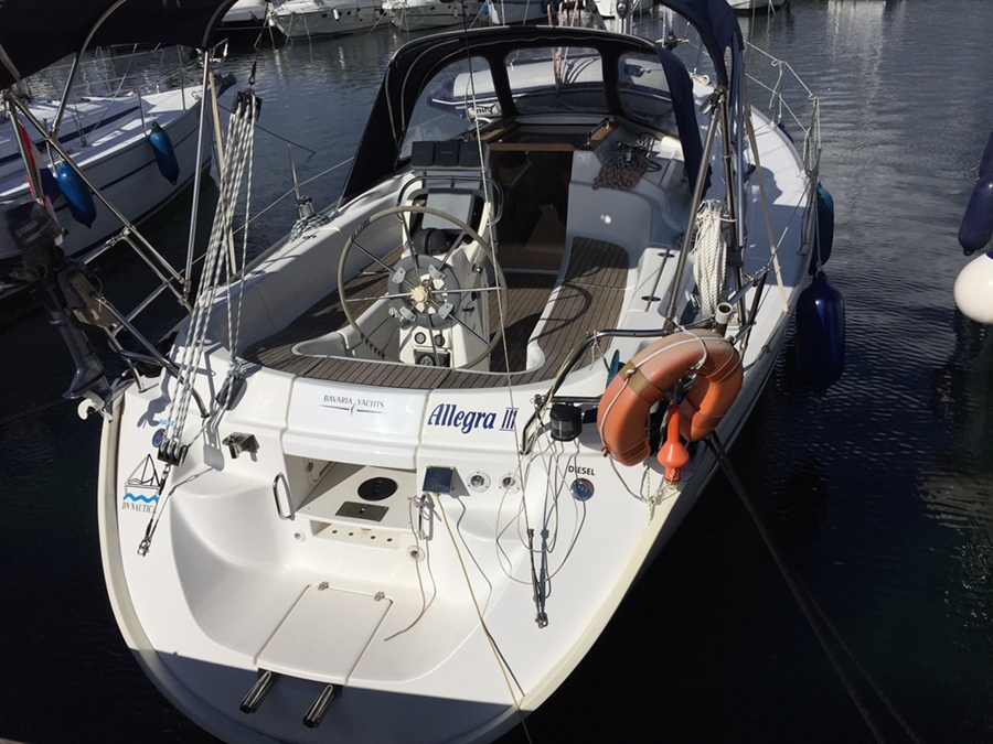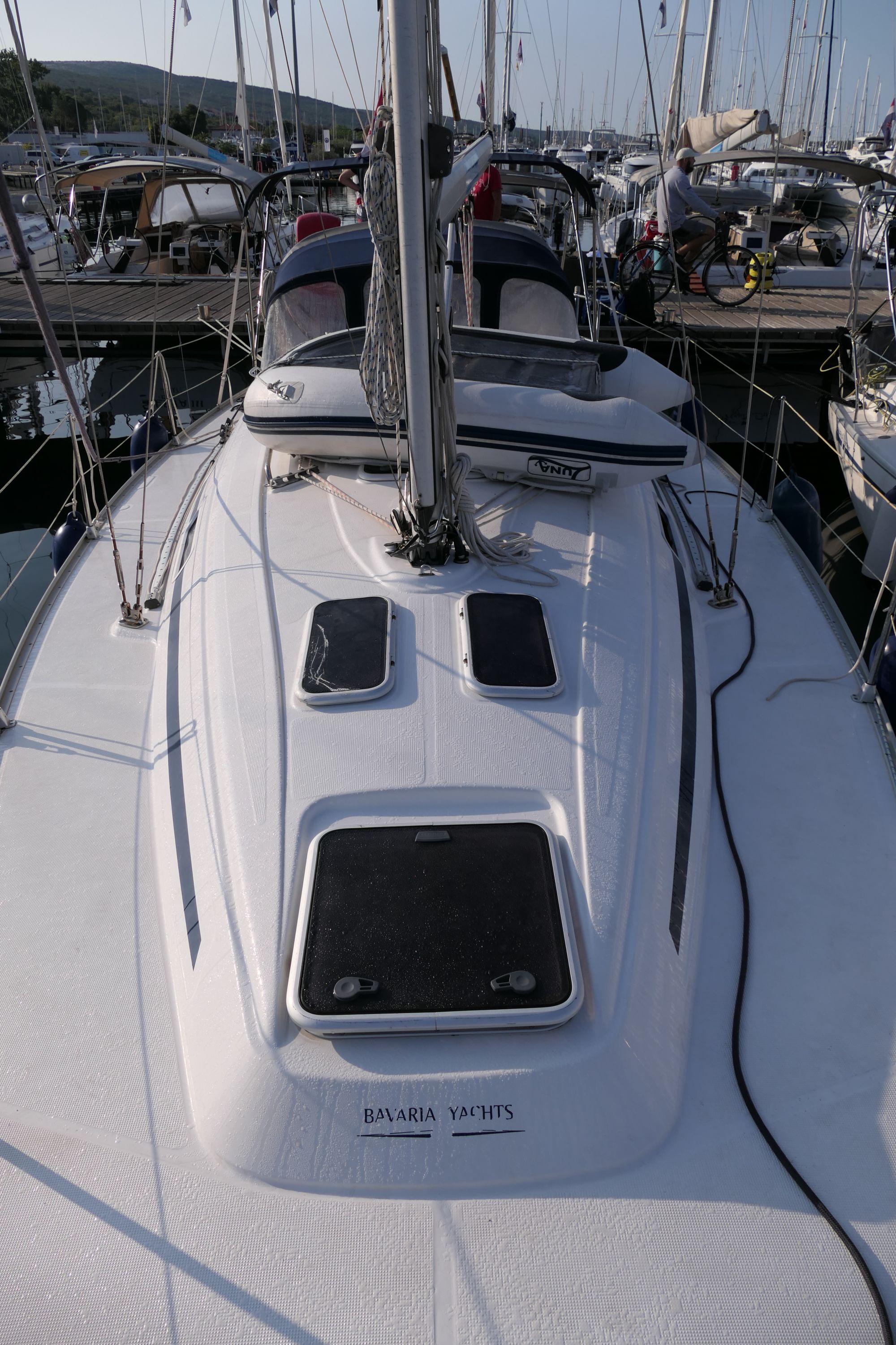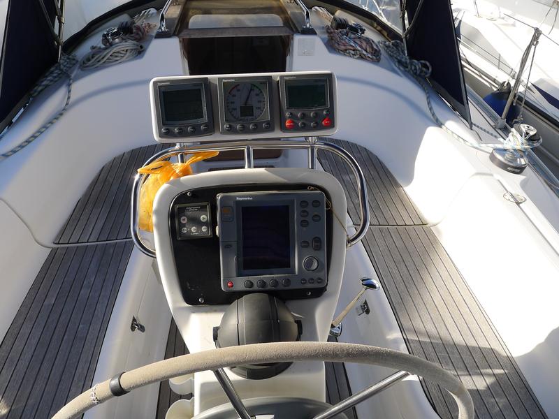 | Outside | Anker mit Kette, Biminitop, Bootshaken, Cockpitdusche, Cockpitpolster, Cockpittisch, elektr. Ankerwinsch, Fender, Festmacherleinen, Kugelfender, Kunststoff-Eimer (Pütz), Sprayhood, Wasserschlauch |