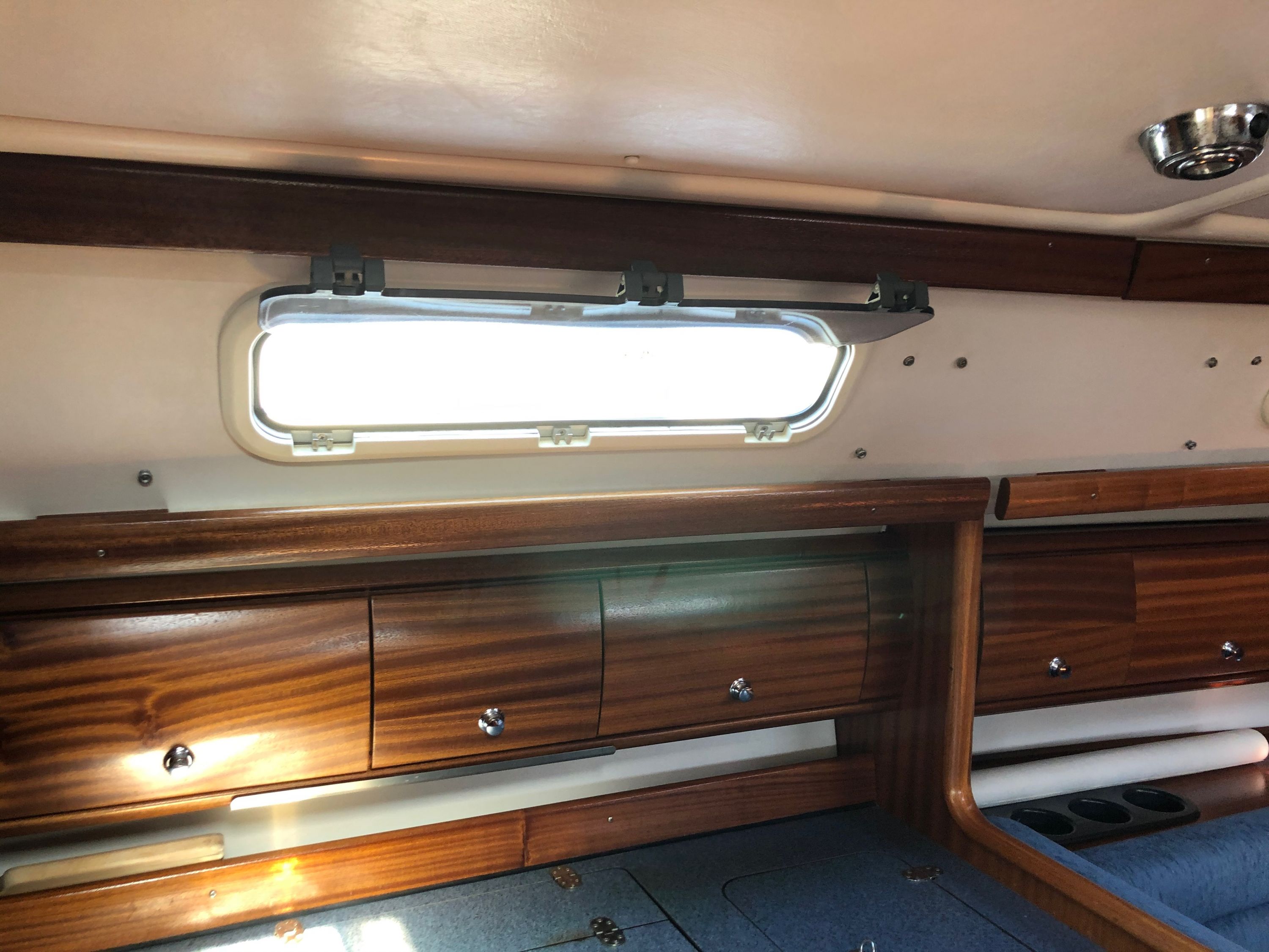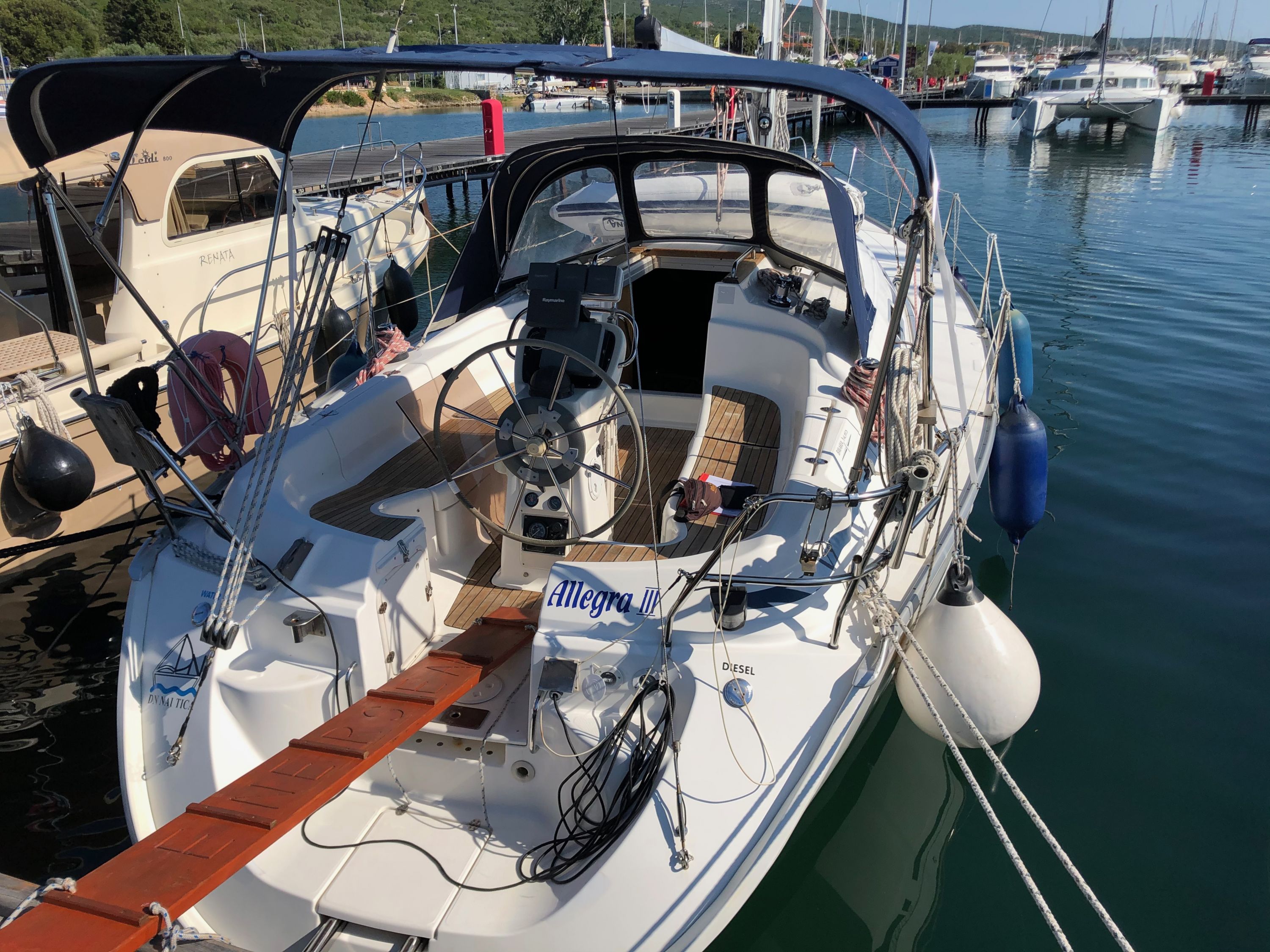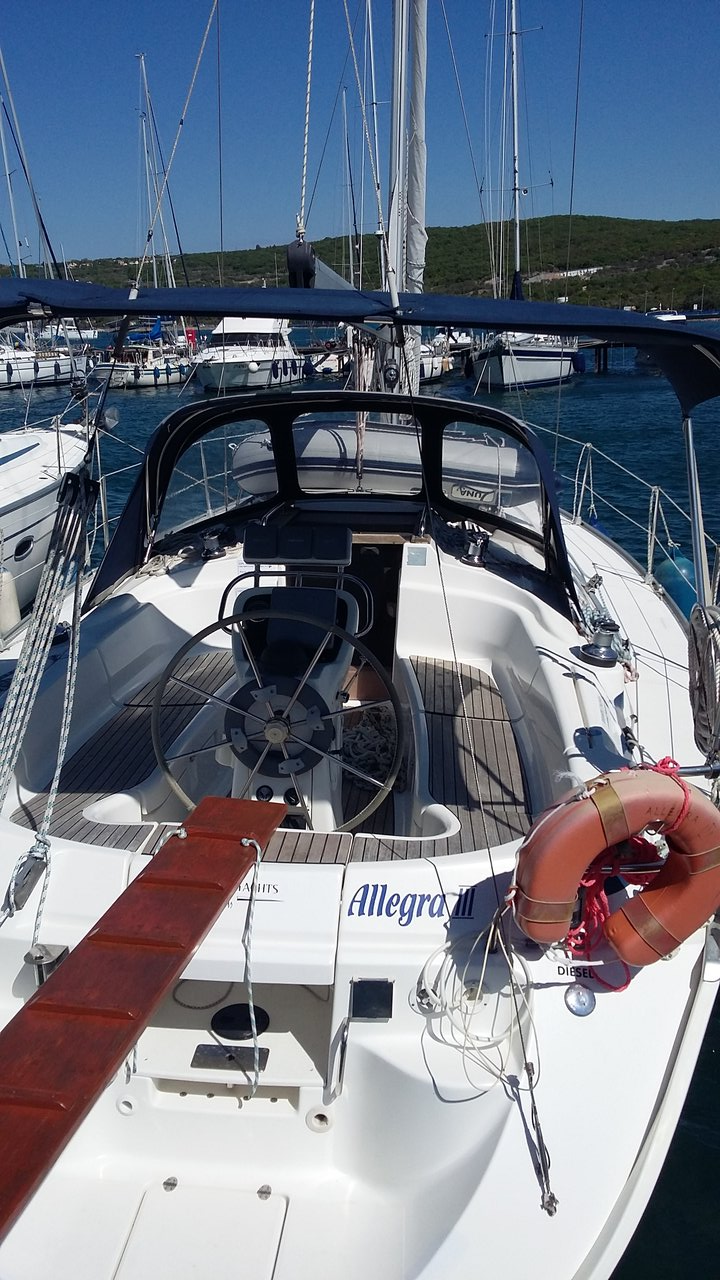 | Outside | Anker mit Kette, Biminitop, Bootshaken, Cockpitdusche, Cockpitpolster, Cockpittisch, elektr. Ankerwinsch, Fender, Festmacherleinen, Kugelfender, Kunststoff-Eimer (Pütz), Sprayhood, Wasserschlauch |