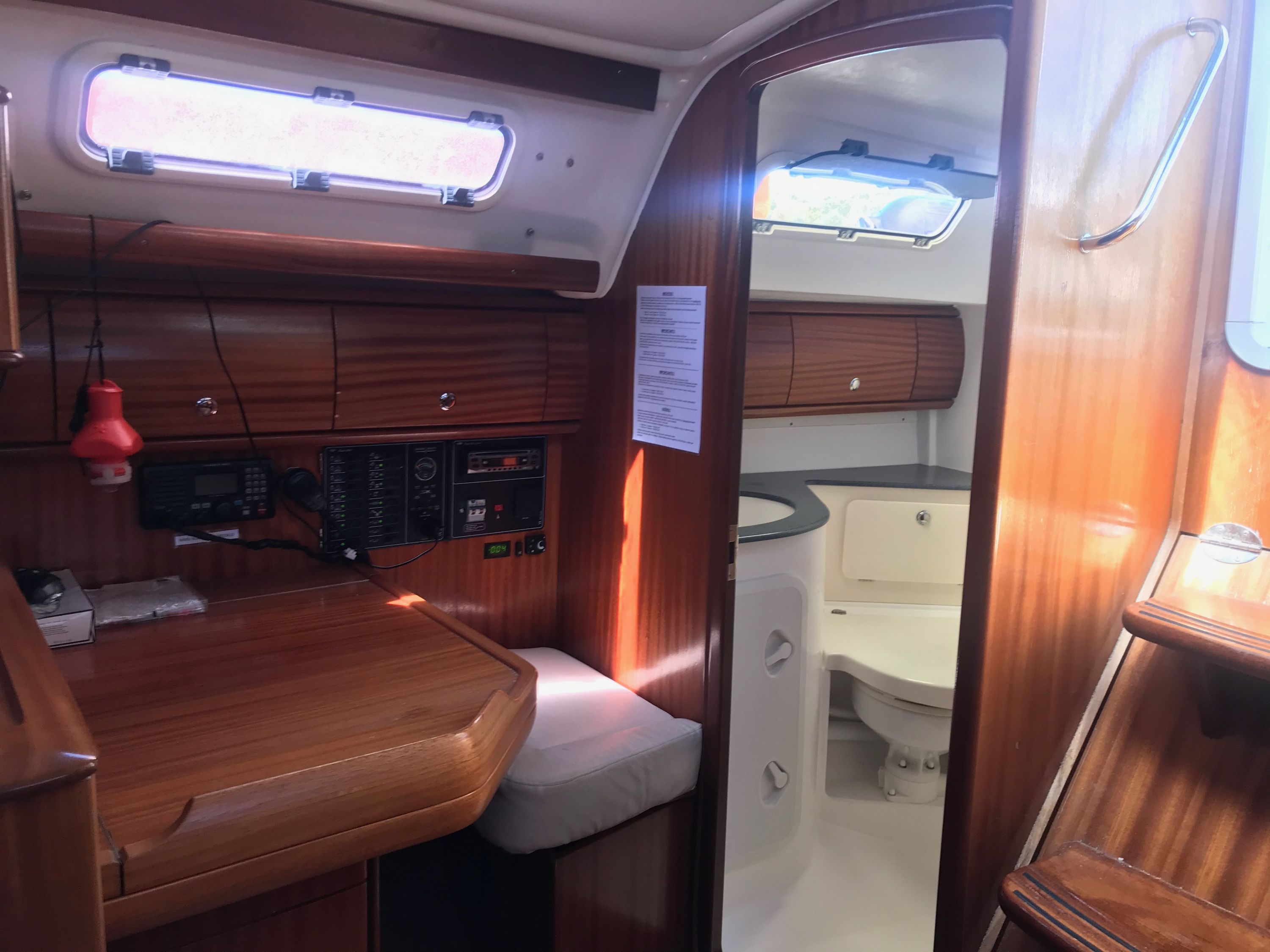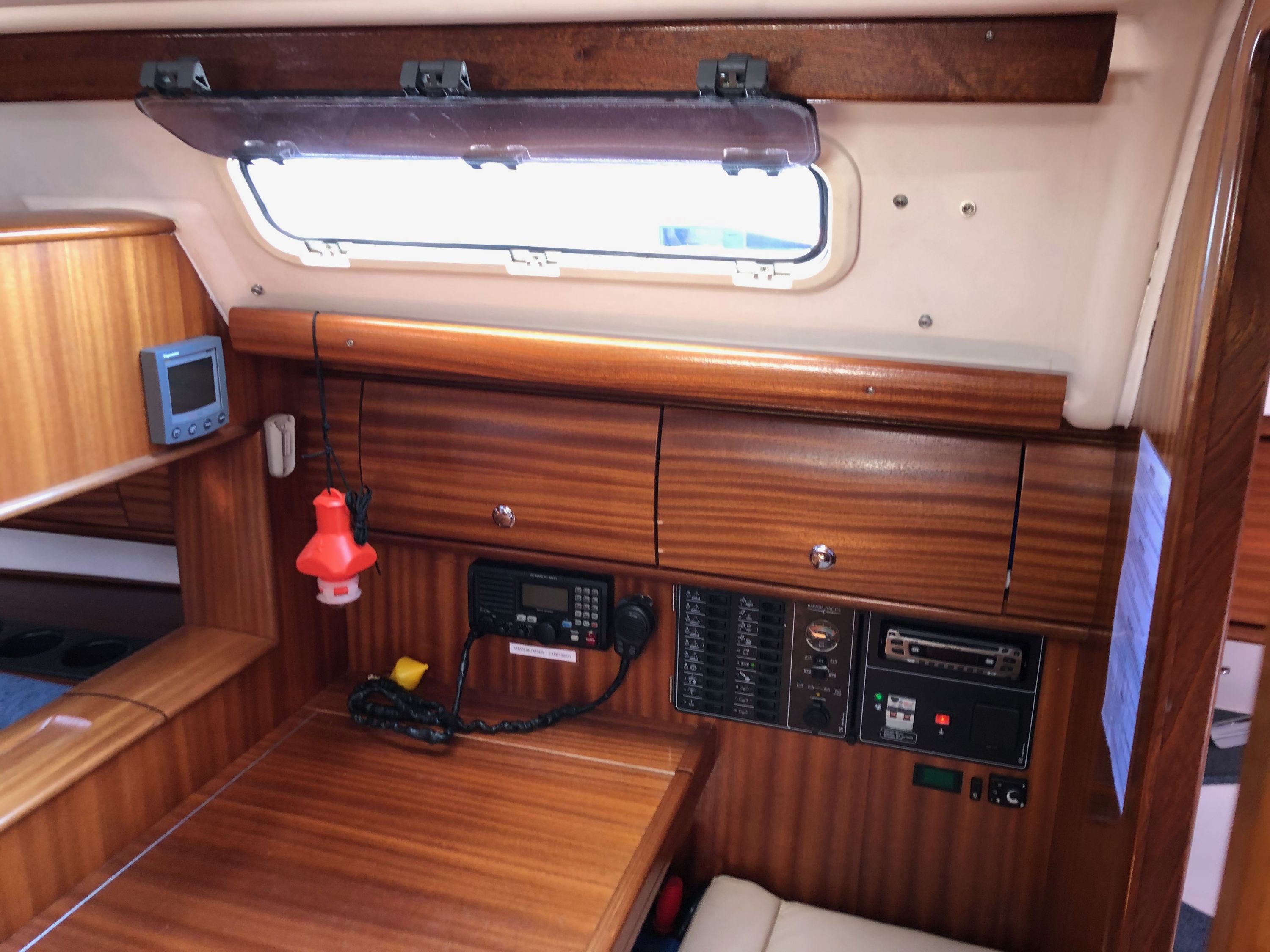 | Navigation | Fernglas, GPS mit Kartenplotter im Cockpit, Hafenhandbücher, Handpeilkompass, Navigationsbesteck, Tridata (Log, Echolot, Windm.), Windmesser |