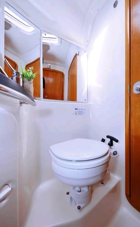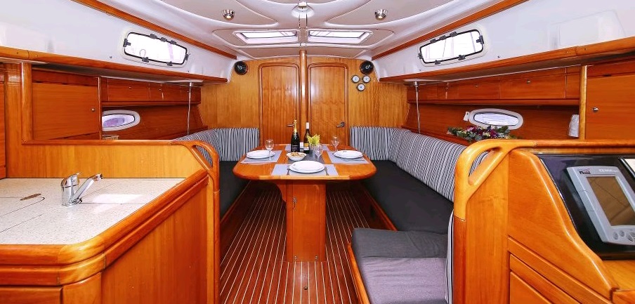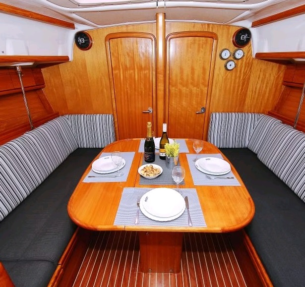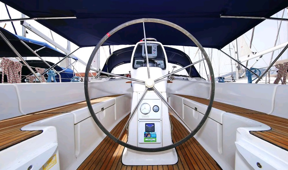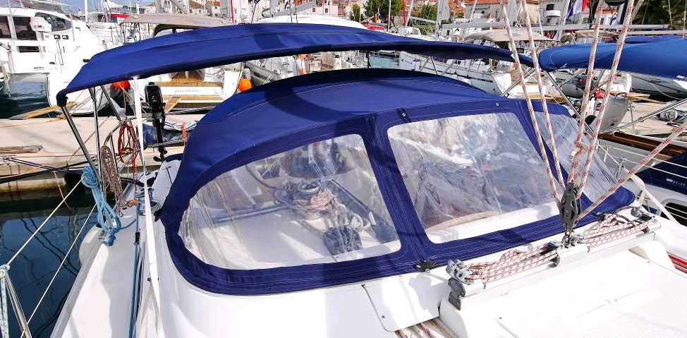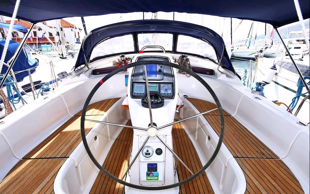 | Outside | Badeplattform, Biminitop, Cockpitdusche, Cockpitlautsprecher, Cockpitleuchte, Cockpittisch, elektr. Ankerwinsch, Sprayhood, Teak im Cockpit |