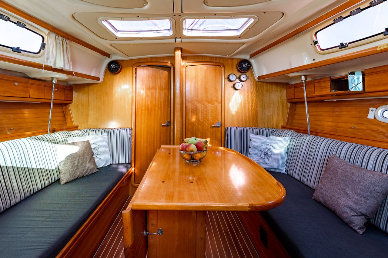| Outside | Badeplattform, Biminitop, Cockpitdusche, Cockpitlautsprecher, Cockpitleuchte, Cockpittisch, elektr. Ankerwinsch, Sprayhood, Teakdeck |