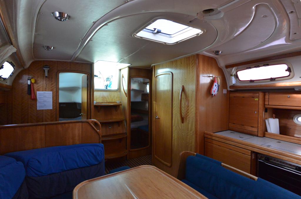 Der Yacht merkt man ihr Alter an einigen Stellen an (lockere Scharniere/Schrauben, diverse Abnutzungsspuren, keine Mückennetze in den Fenstern, Bilgenpumpe ohne Schwimmschalter, fehlende GPS Datenübertragung ans Funkgerät), ansonsten aber technisch und optisch völlig in Ordnung.
