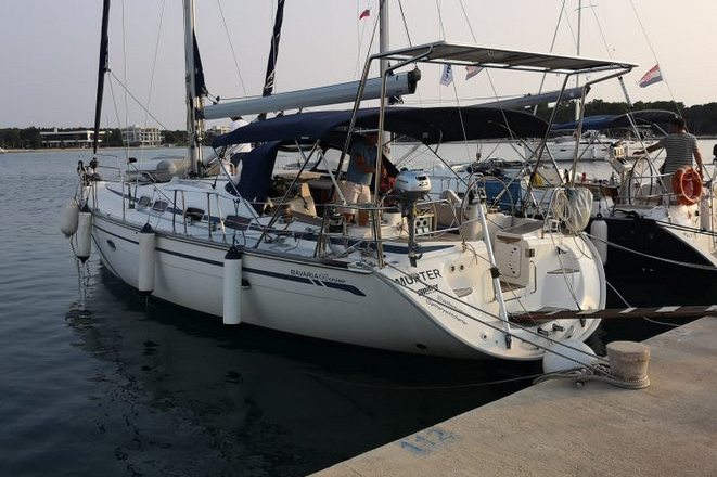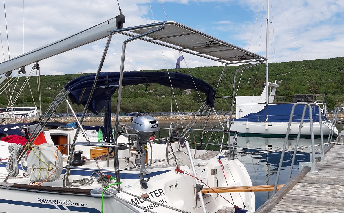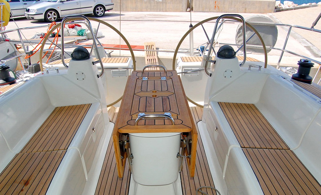 | Outside | Biminitop, Cockpitdusche, Cockpitkühlschrank, Cockpitpolster, Cockpittisch, elektr. Ankerwinsch, Fender, Gangway, Solaranlage, Sprayhood, Teak im Cockpit |