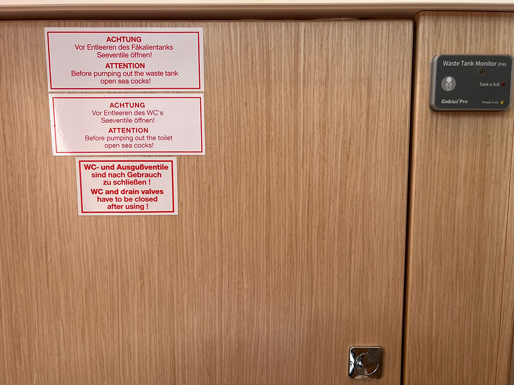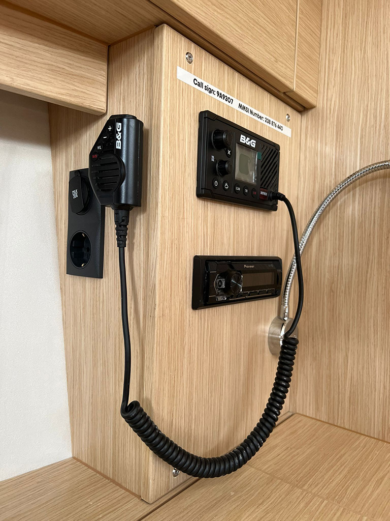 | Safety | Autopilot, Bordapotheke, Bordwerkzeug, Bugstrahlruder, Feststoffschwimmwesten, Handbilgepumpe, Navigationslichter, Nebelhorn, Notpinne, Notsignale, Rettungsinsel, Rettungskragen, Taschenlampe, UKW-Funk |