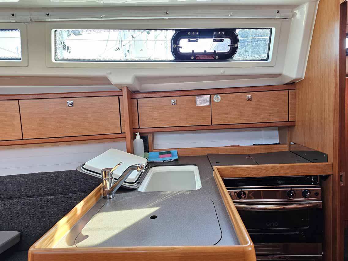 | Safety | Automatikwesten, Autopilot, Blitzboje, Bootsmannstuhl, Bordapotheke, Bordwerkzeug, Feuerlöscher, Lifebelts, Motor-Ersatzteile, Nebelhorn, Notsignale, Radarreflektor, Reparaturset für Beiboot, Rettungsinsel, Sicherheitsausrüstung, Suchscheinwerfer, Taschenlampe, UKW-Funk mit AIS, Zweitanker |