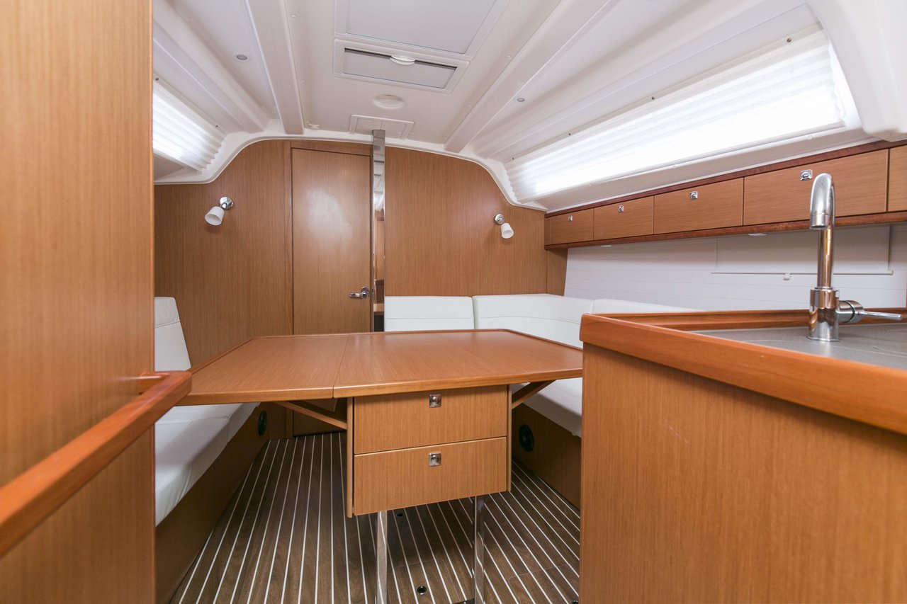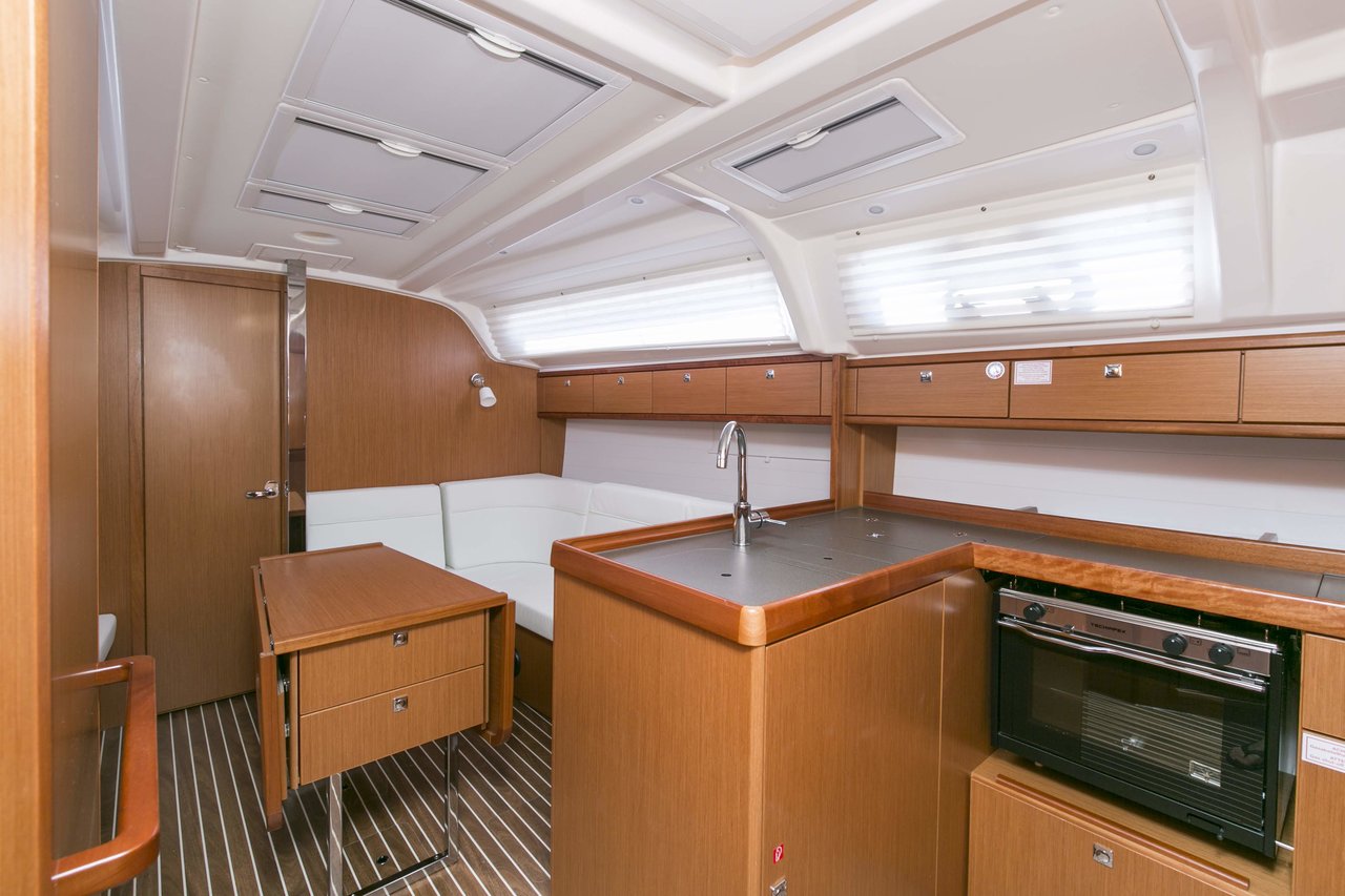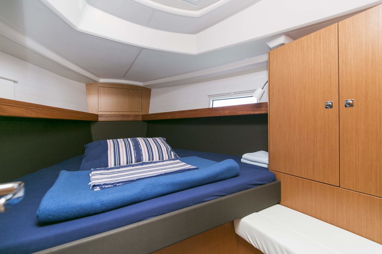 | Safety | Autopilot, Bordapotheke, Bordwerkzeug, Bugstrahlruder, Feststoffschwimmwesten, Handbilgepumpe, Navigationslichter, Nebelhorn, Notpinne, Notsignale, Rettungskragen, Taschenlampe, UKW-Funk |