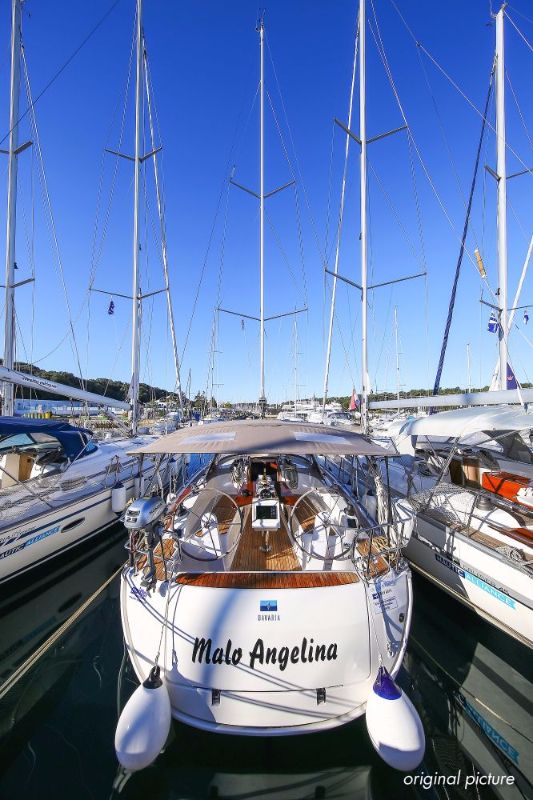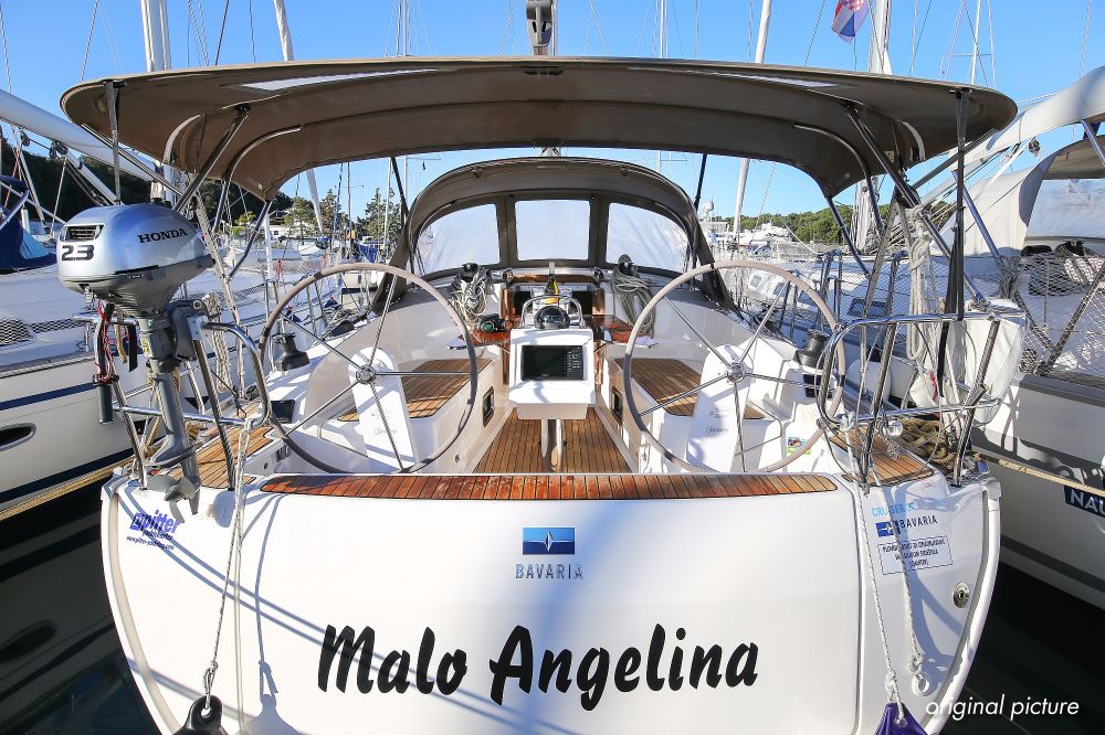 | Outside | 220 V-Landanschluss, Anker mit Kette, Ankerwinsch, Badeplattform, Biminitop, Bootshaken, Cockpitdusche, Cockpitlautsprecher, Cockpitpolster, Cockpittisch, Dieselkanister , elektr. Ankerwinsch, Faltpropeller, Fender, Festmacherleinen, Gangway, Kugelfender, Kunststoff-Eimer (Pütz), Solaranlage, Sprayhood, Teak im Cockpit, Teakdeck, Wantenschneider, Wasserkanister , Wasserschlauch, Windex |