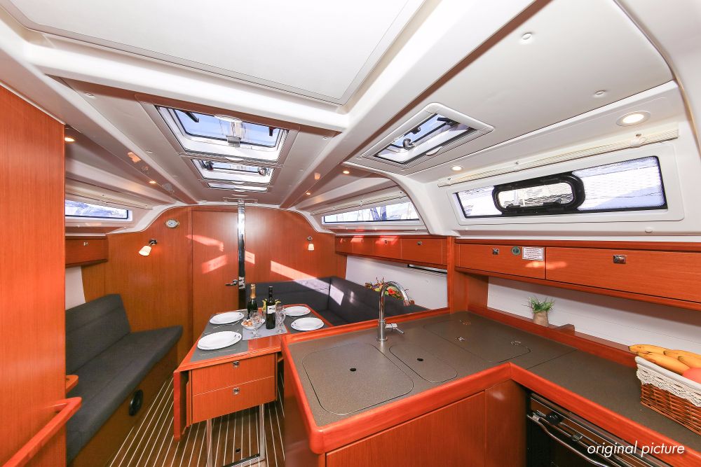 | Inside | Borduhr, Heizung, Inverter 12V/220V, Kühlschrank, Ladegerät, Luftpumpe für Beiboot, Pantryausstattung, Radio, USB Steckdose, Warmwasser |