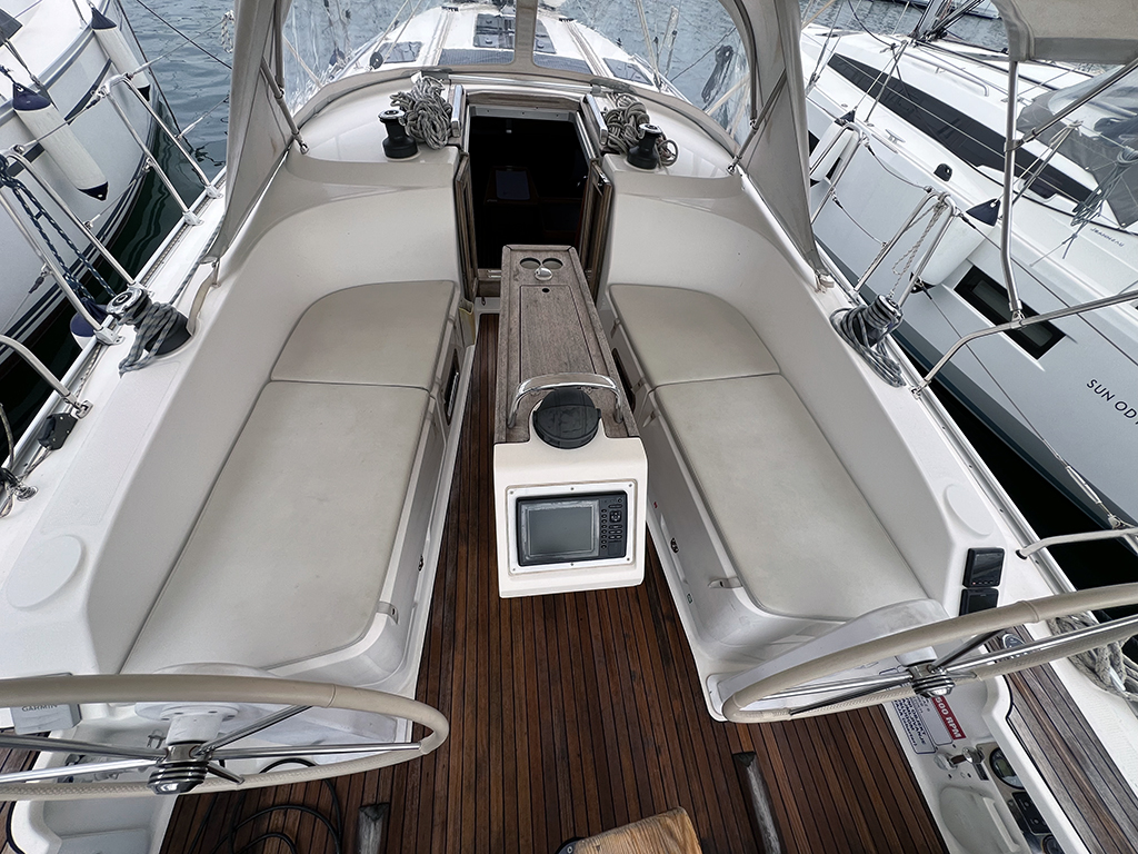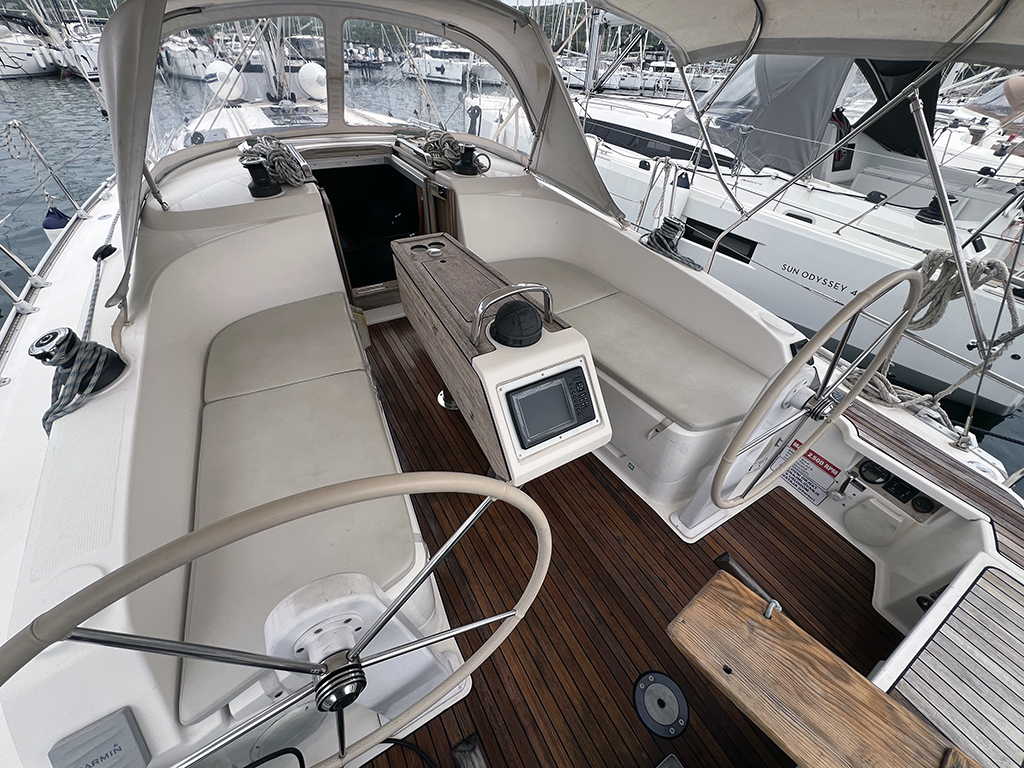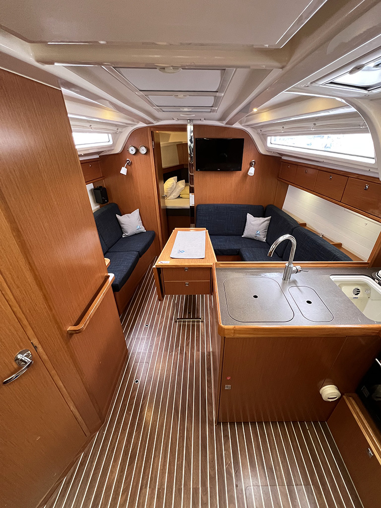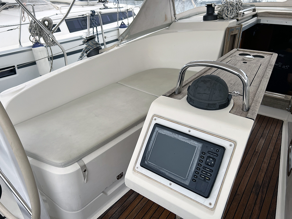 Outside 220 V-Landanschluss, Anker mit Kette, Biminitop, Bootshaken, Cockpitdusche, Cockpittisch, elektr. Ankerwinsch, Fender, Festmacherleinen, Kugelfender, Kunststoff-Eimer (Pütz), Rodkicker, Solaranlage, Sprayhood, Wasserschlauch, Winschen