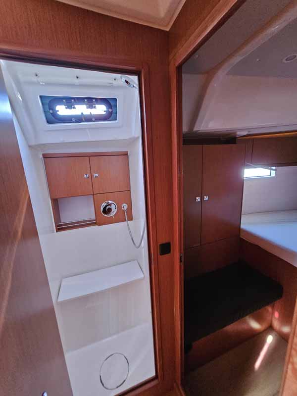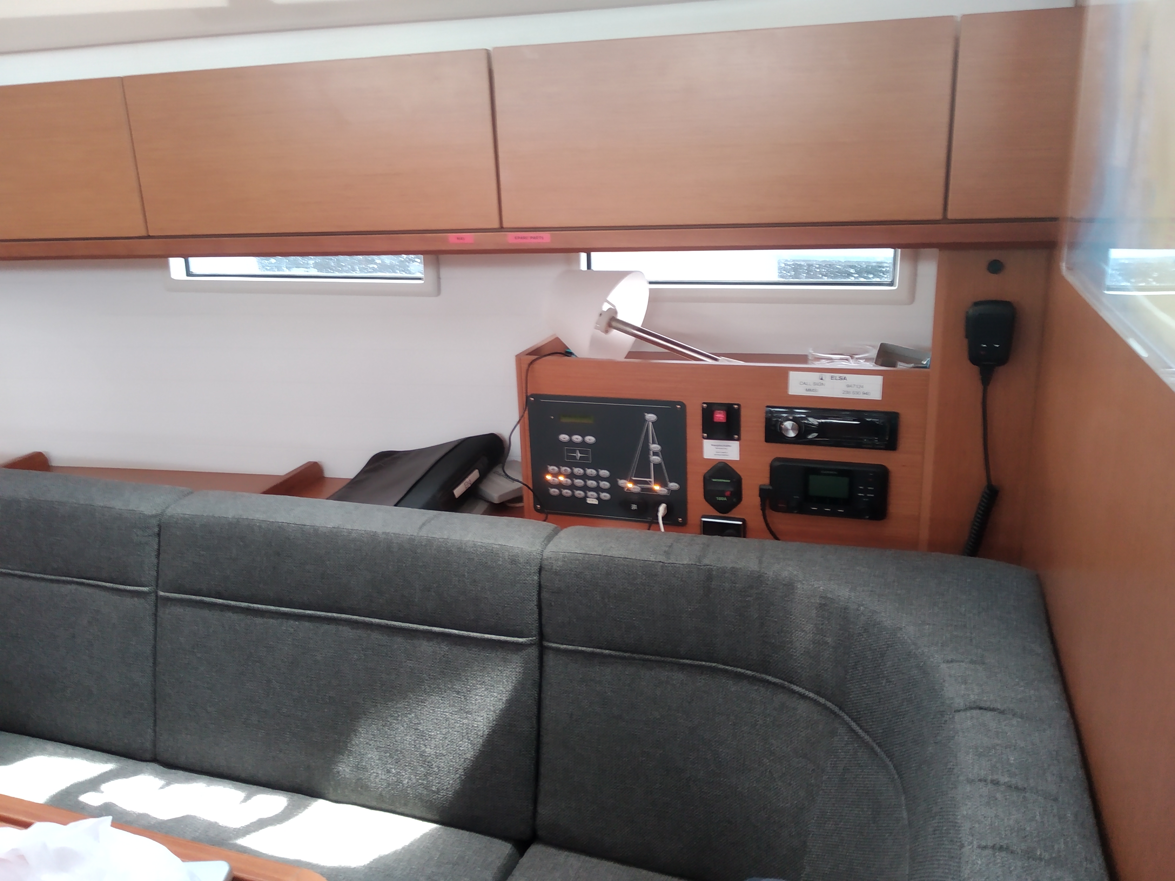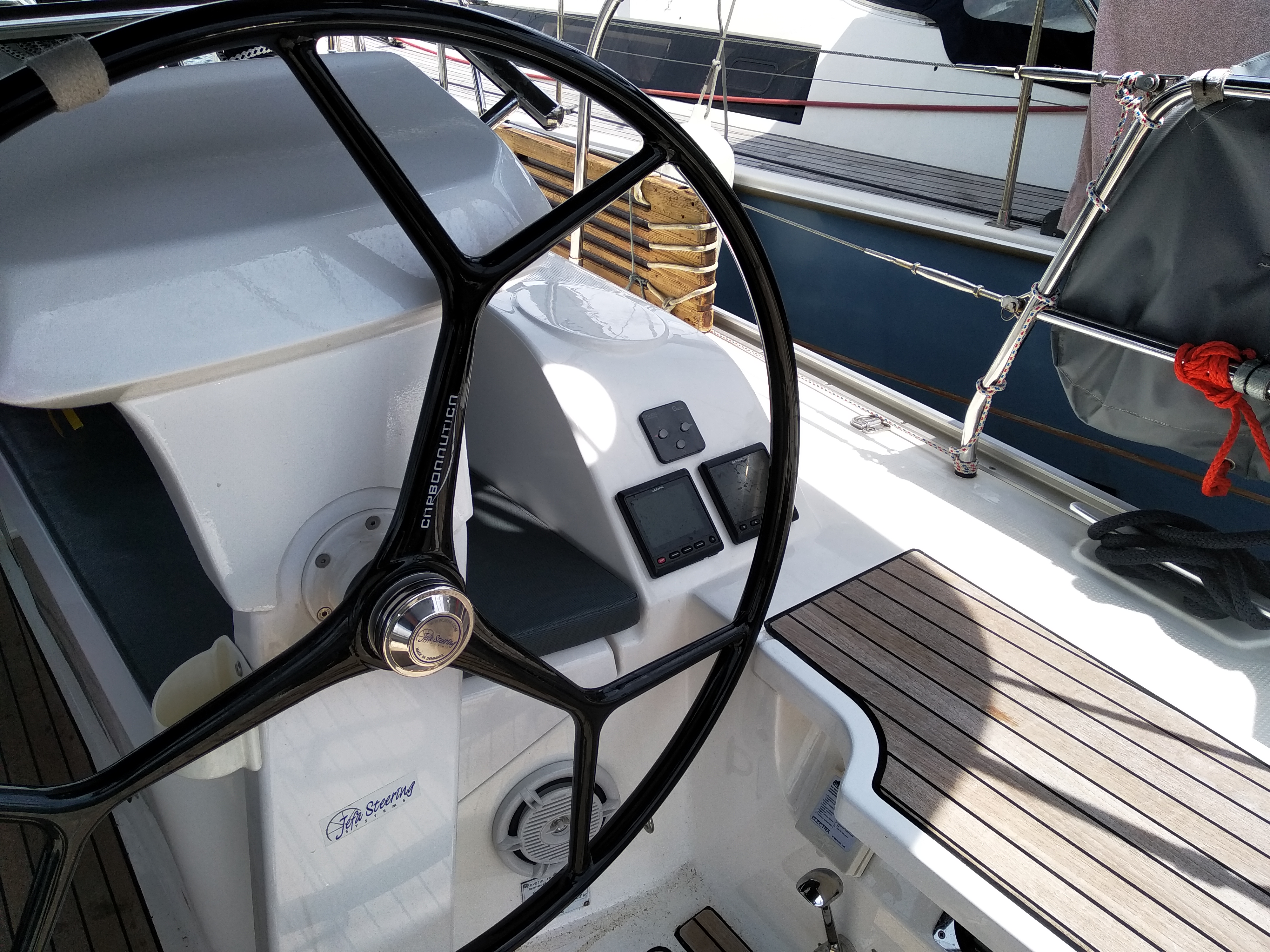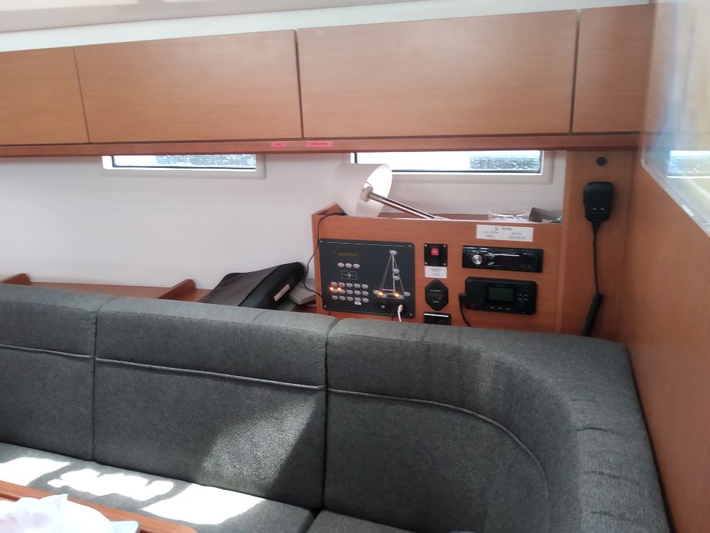 | Navigation | Barometer, Fernglas, GPS mit Kartenplotter im Cockpit, Hafenhandbücher, Handpeilkompass, Navigationsbesteck, Seekarten, Tridata (Log, Echolot, Windm.) |