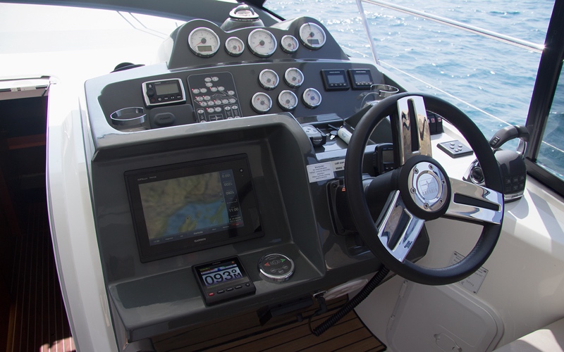 | Navigation | Drehzahlmesser, Echolot, Fernglas, GPS, Hafenhandbücher, Kartenplotter, Kompass, Seekarten, Sumlog, Trimmklappen (hydr.) |