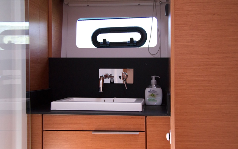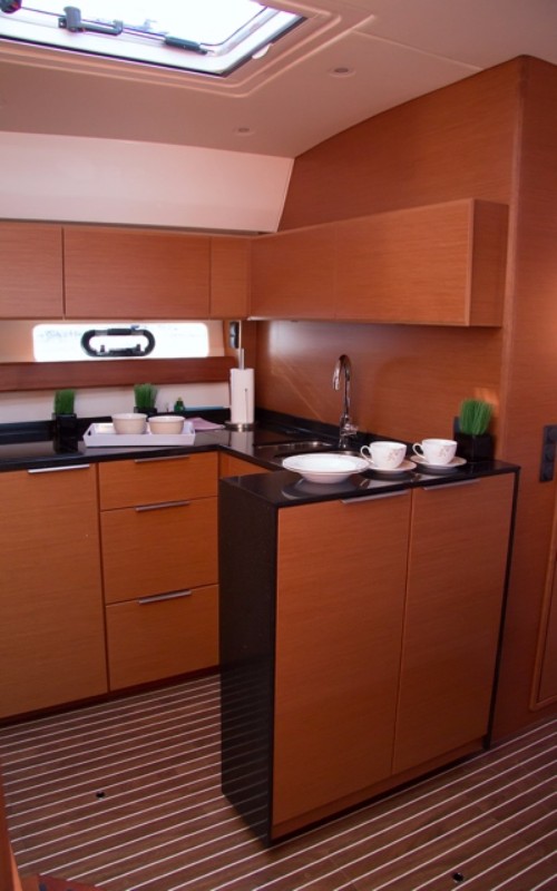 | Safety | Autopilot, Bordapotheke, Bordwerkzeug, Bugstrahlruder, elektr. Bilgepumpe, Feuerlöscher, Flaggen, Handbilgepumpe, Lifebelts, Navigationslichter, Nebelhorn, Radarreflektor, Rettungsinsel, Rettungsring, Rettungswesten, Taschenlampe, UKW-Funk, Zweitanker |