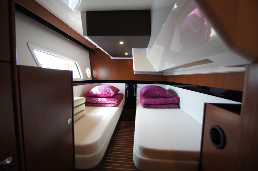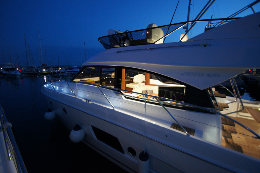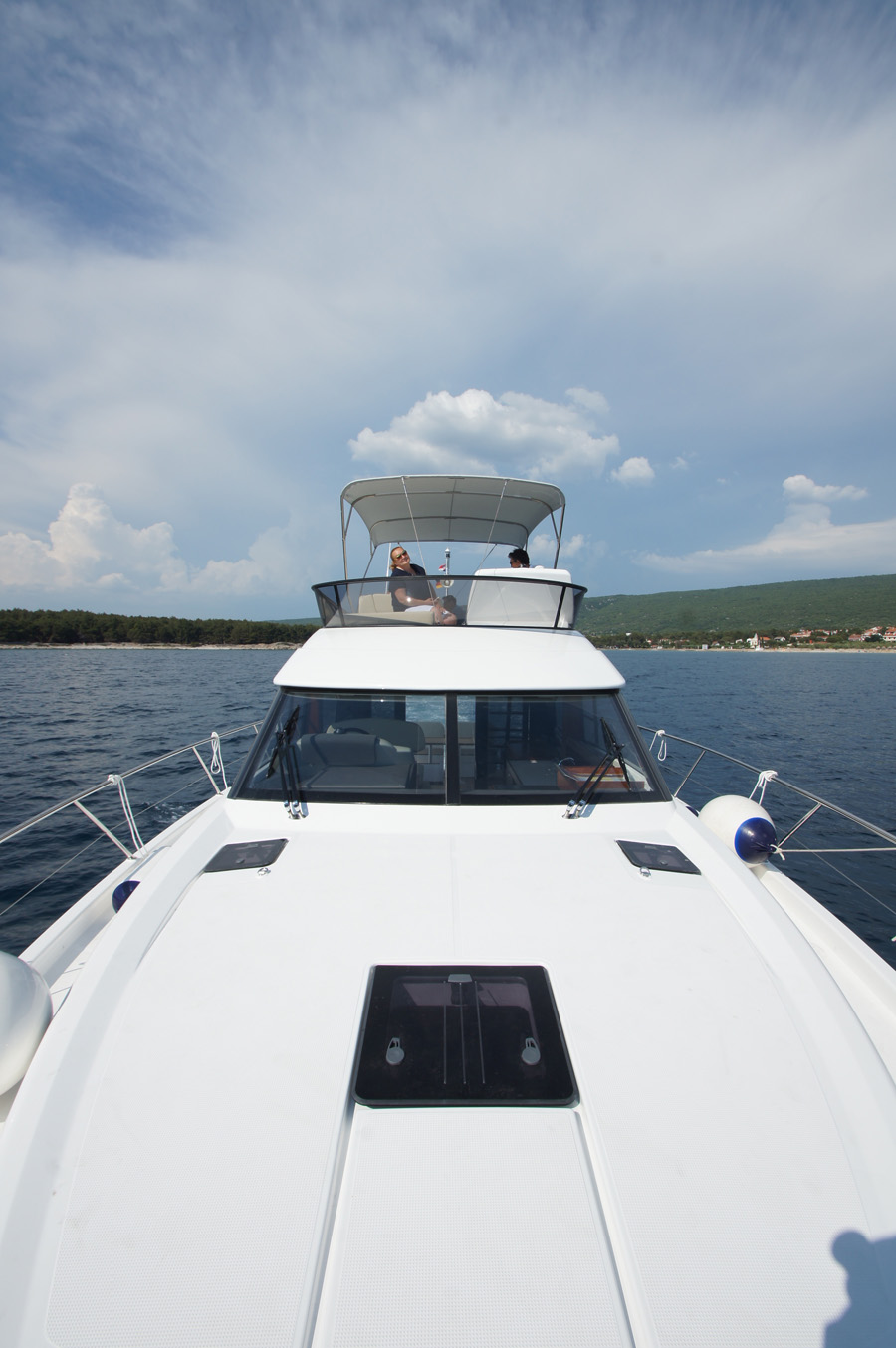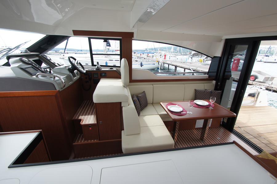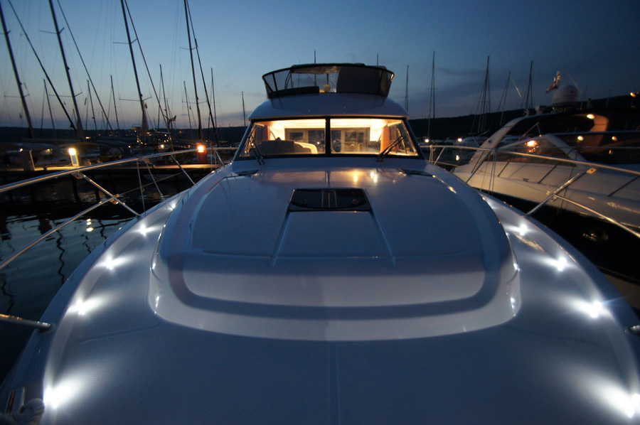 | Outside | 220 V-Landanschluss, Anker mit Kette, Cockpitdusche warm/kalt, Cockpittisch, elektr. Ankerwinsch, Fender, Hardtop, Scheibenwischer, Seereling, Teakdeck |
