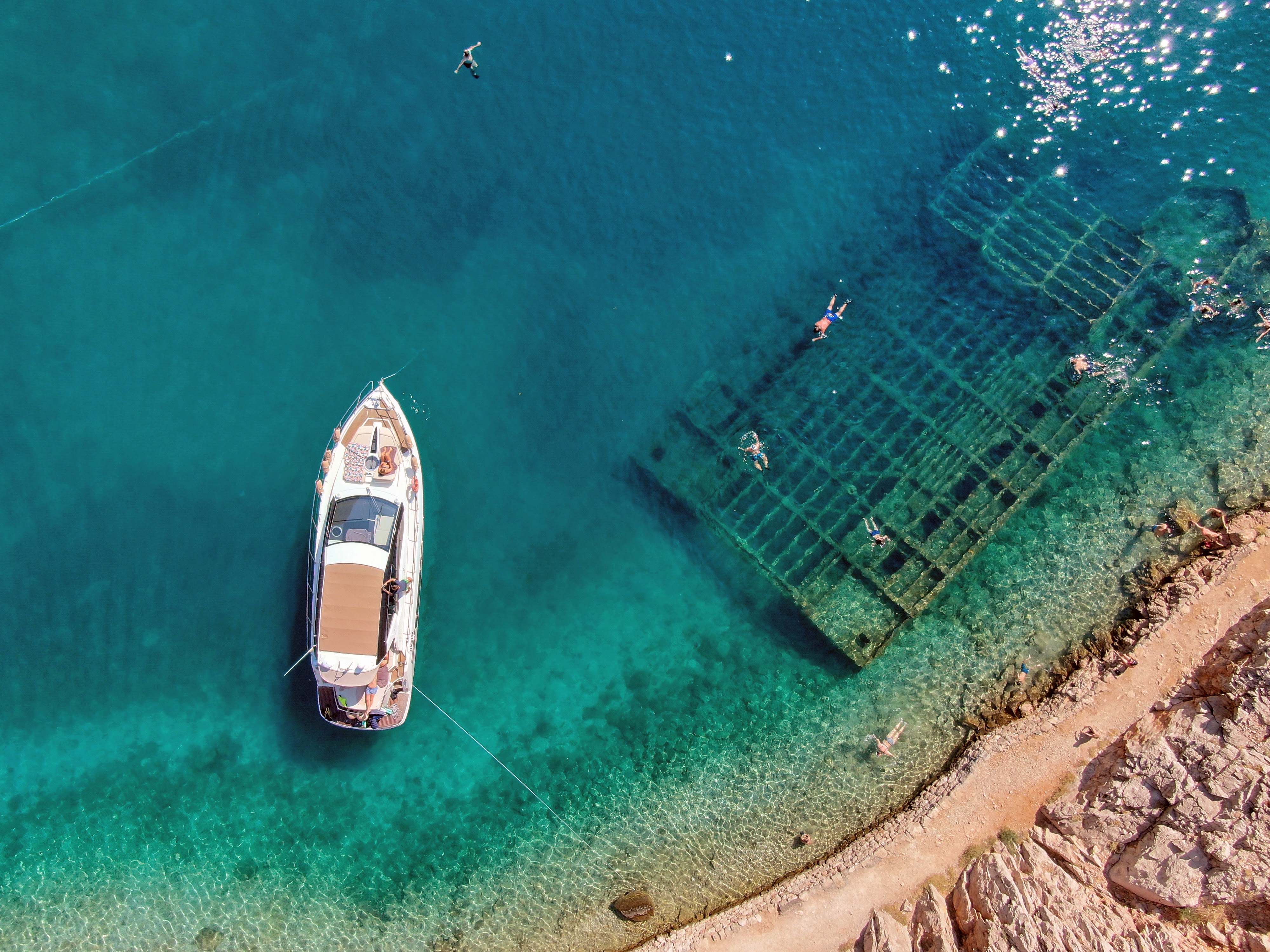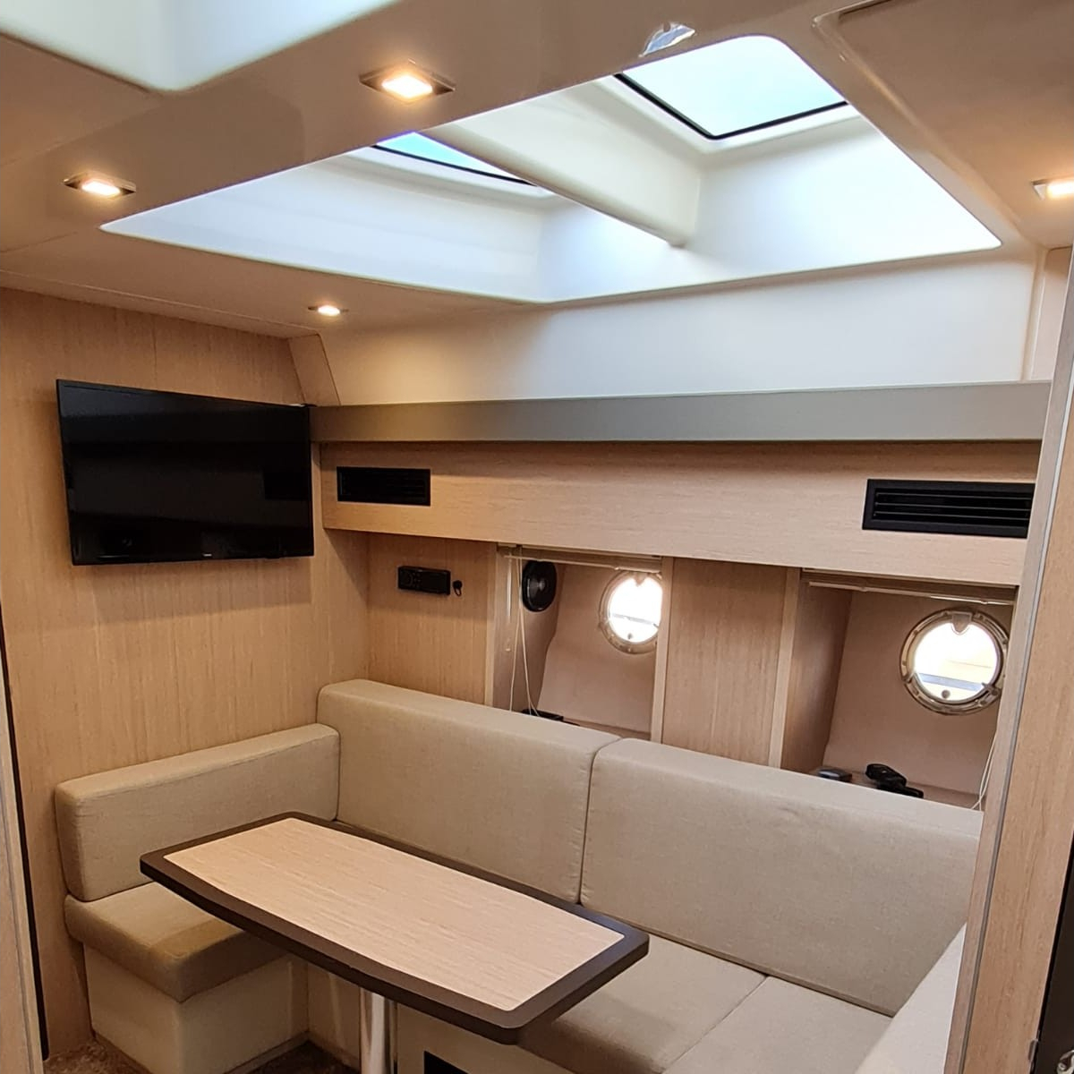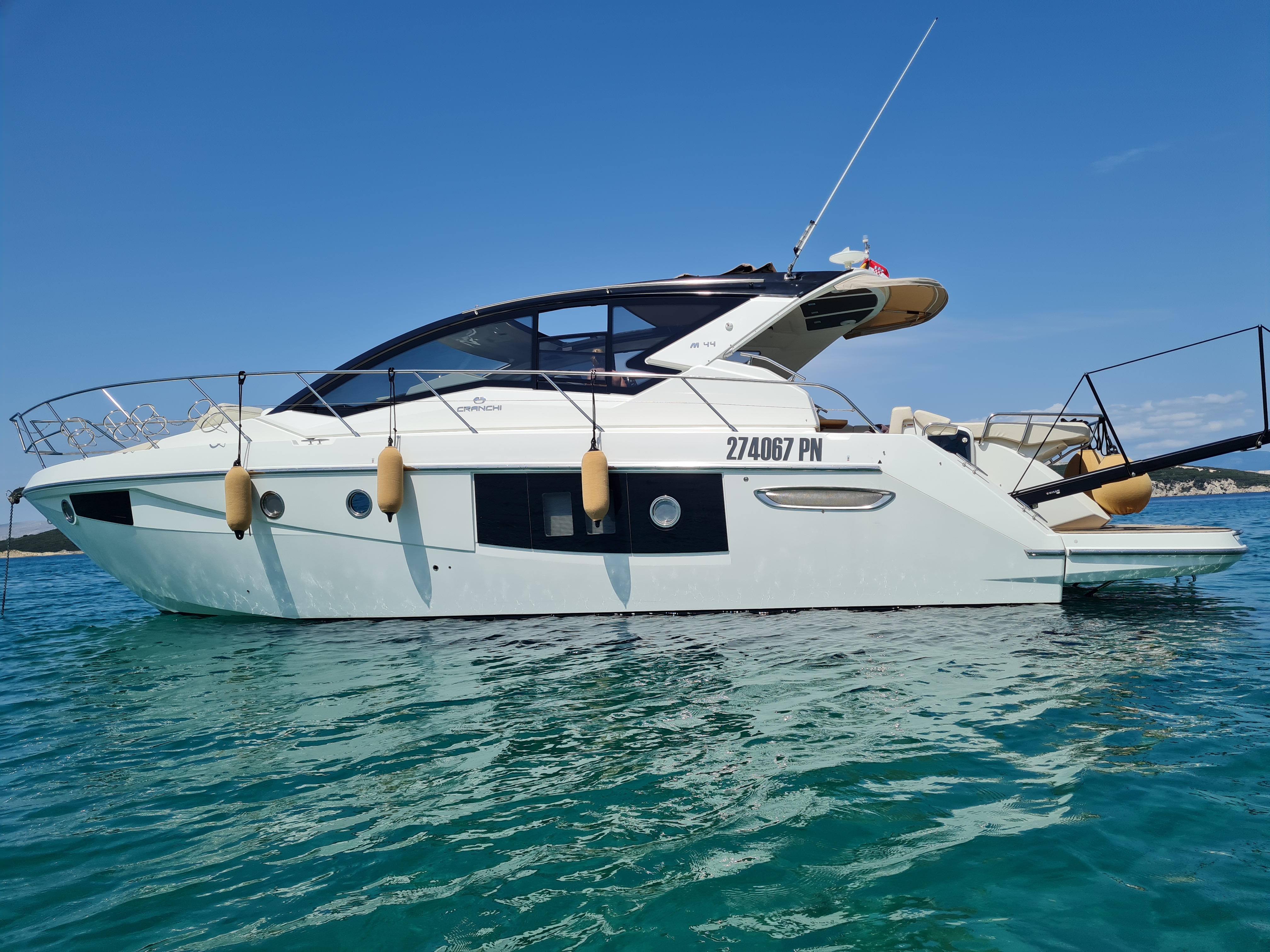 | Outside | Anker mit Kette, Badeplattform, Cockpitdusche, Cockpittisch, Deckpolster, elektr. Winsch, Fender, Festmacherleinen, Teak im Cockpit |