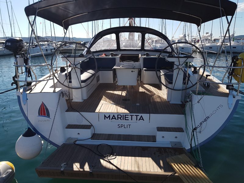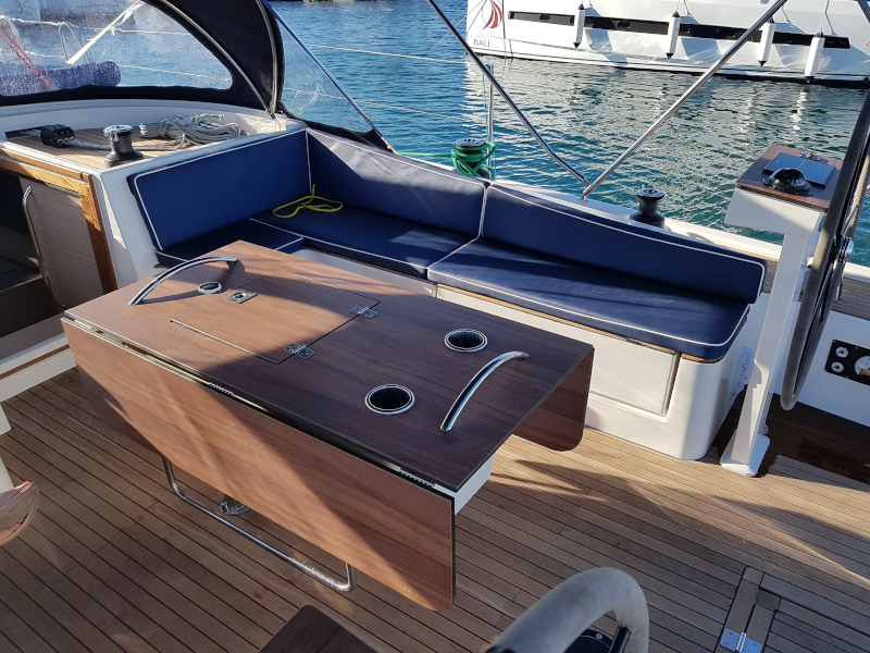 | Outside | Badeplattform, Biminitop, Cockpitdusche, Cockpitlautsprecher, Cockpitpolster, Cockpittisch, Sprayhood, Teak im Cockpit, Teakdeck |