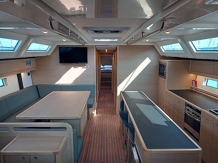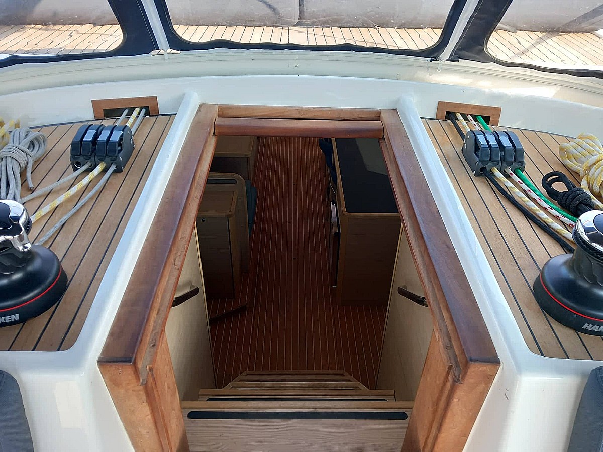 | Outside | Ankerkettenzähler, Badeplattform, Cockpitdusche, Cockpitlautsprecher, Cockpitpolster, Cockpittisch, Grill, Hardtop, Solaranlage, Sprayhood, Teak im Cockpit, Teakdeck |