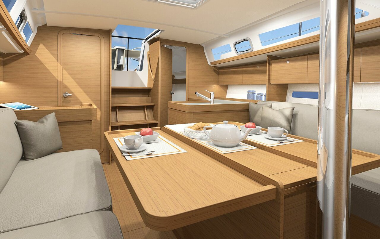 | Outside | 220 V-Landanschluss, Badeleiter, Biminitop, Cockpitdusche, Cockpitlautsprecher, Cockpitleuchte, Cockpittisch, elektr. Ankerwinsch, Grill, Solaranlage, Sprayhood, Teak im Cockpit |