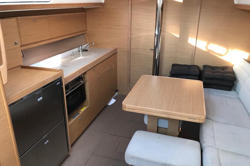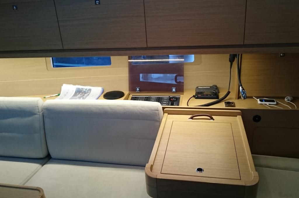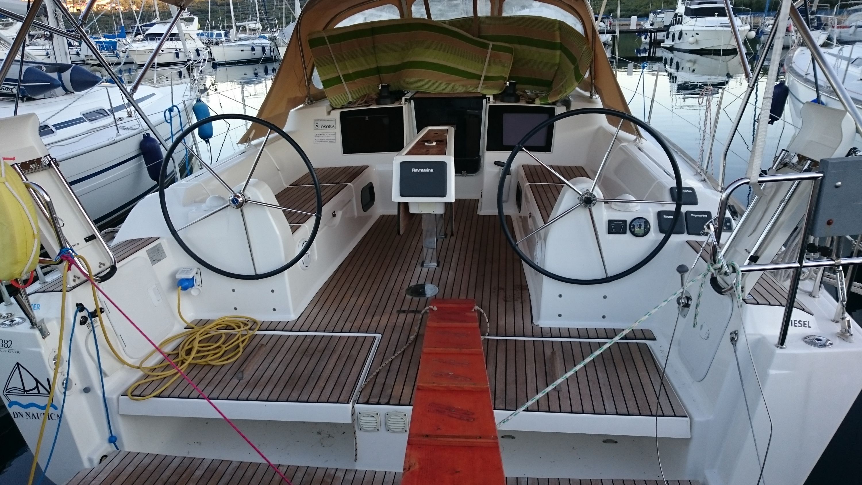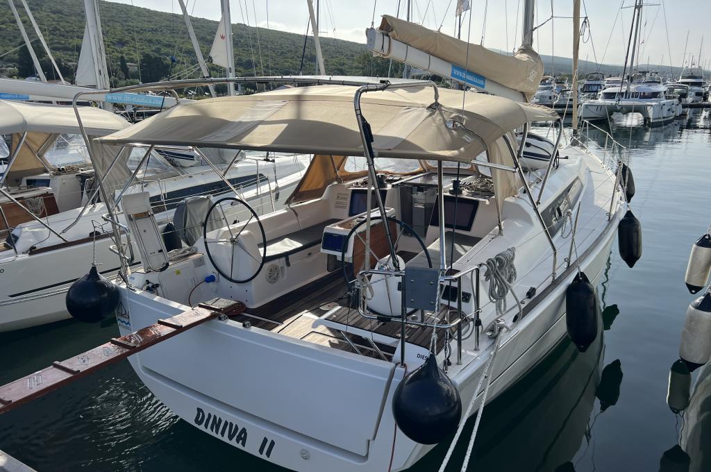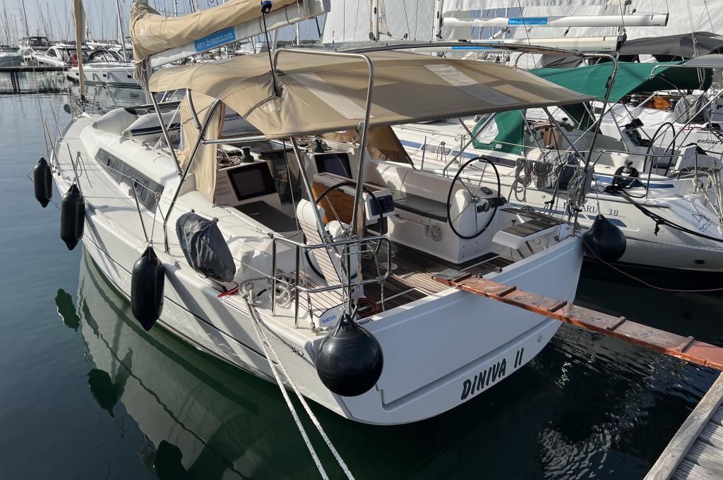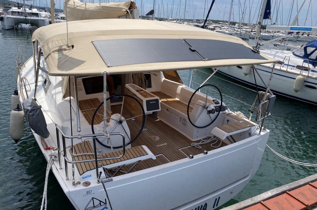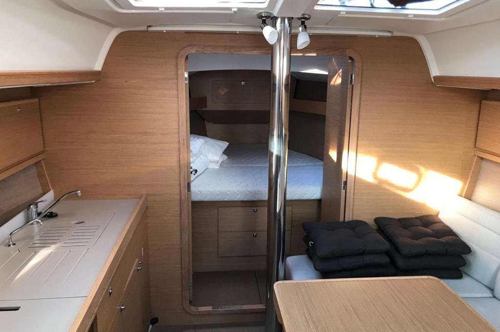 Bei der Dufour handelt sich im Grunde um ein sehr gute Yacht. Die Yacht hat eine sehr gute Raumaufteilung und für ihre Größe sehr viel Platz und segelt sehr gut. Leider ist nur eine Selbstwendefock verbaut und auch die Trimmmöglichkeiten am Großsegel sind sehr überschaubar, was den Spaß doch etwas in Grenzen hält. Schade ist auch dass die Ausstattung der Yacht konsequent auf billig getrimmt ist. Unsere Yacht war zum Charterzeitpunkt gerade 6 Monate im Dienst und sah schon sehr ramponiert aus, was der Qualität der verwendeten Materialien geschuldet ist. Die Polster waren schmudlig und konnten auf den Sitzflächen nicht fixiert werden. Im Bodenbereich gab es schon tiefe Dellen im Furnier. Einige Verschlüsse an den Schränken waren bereits defekt und die Handläufe waren auch nicht solide befestigt und gaben bereits bei leichten Zug nach.