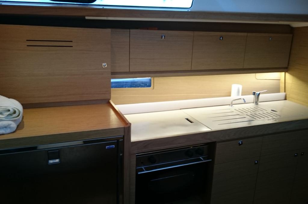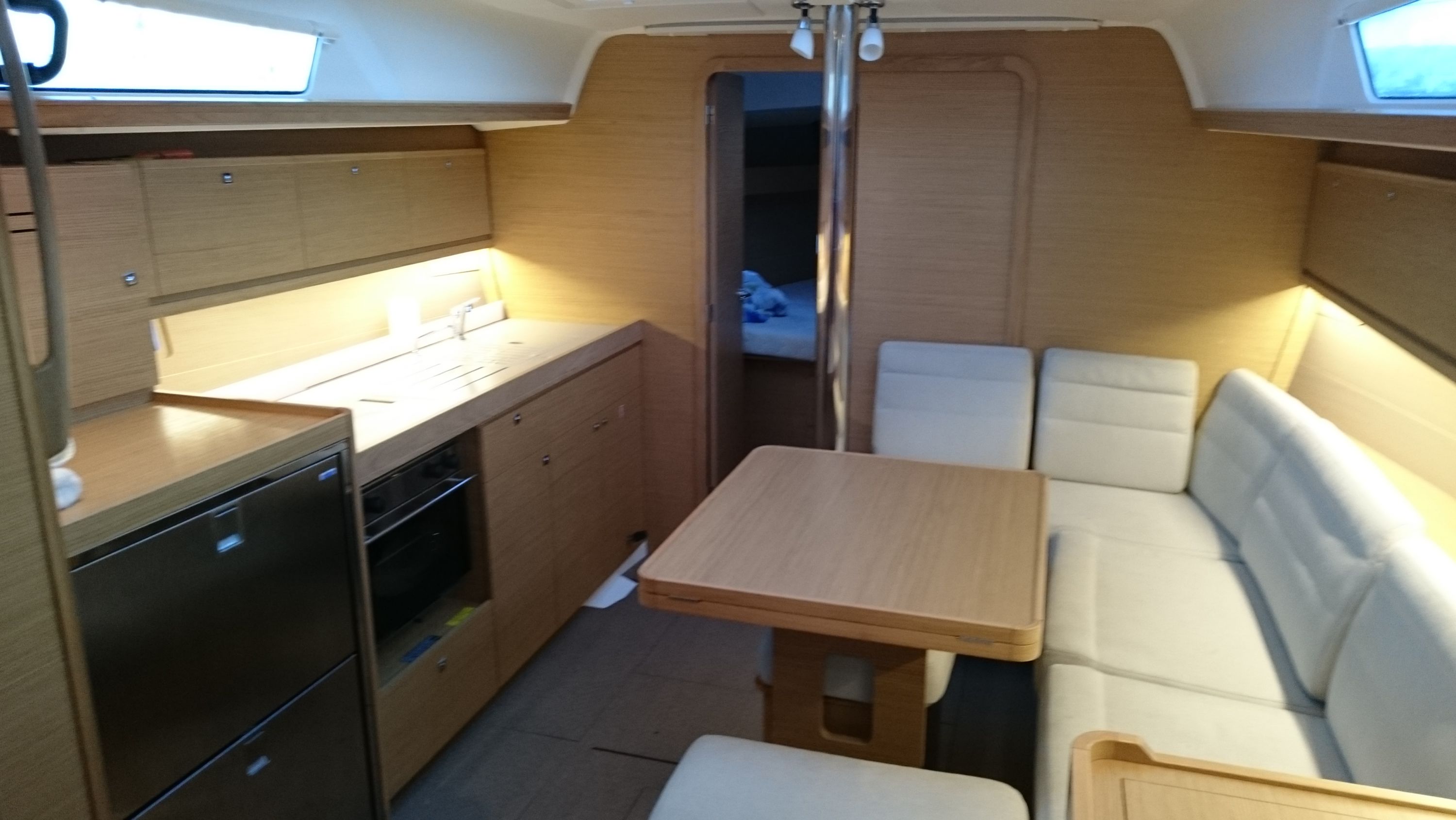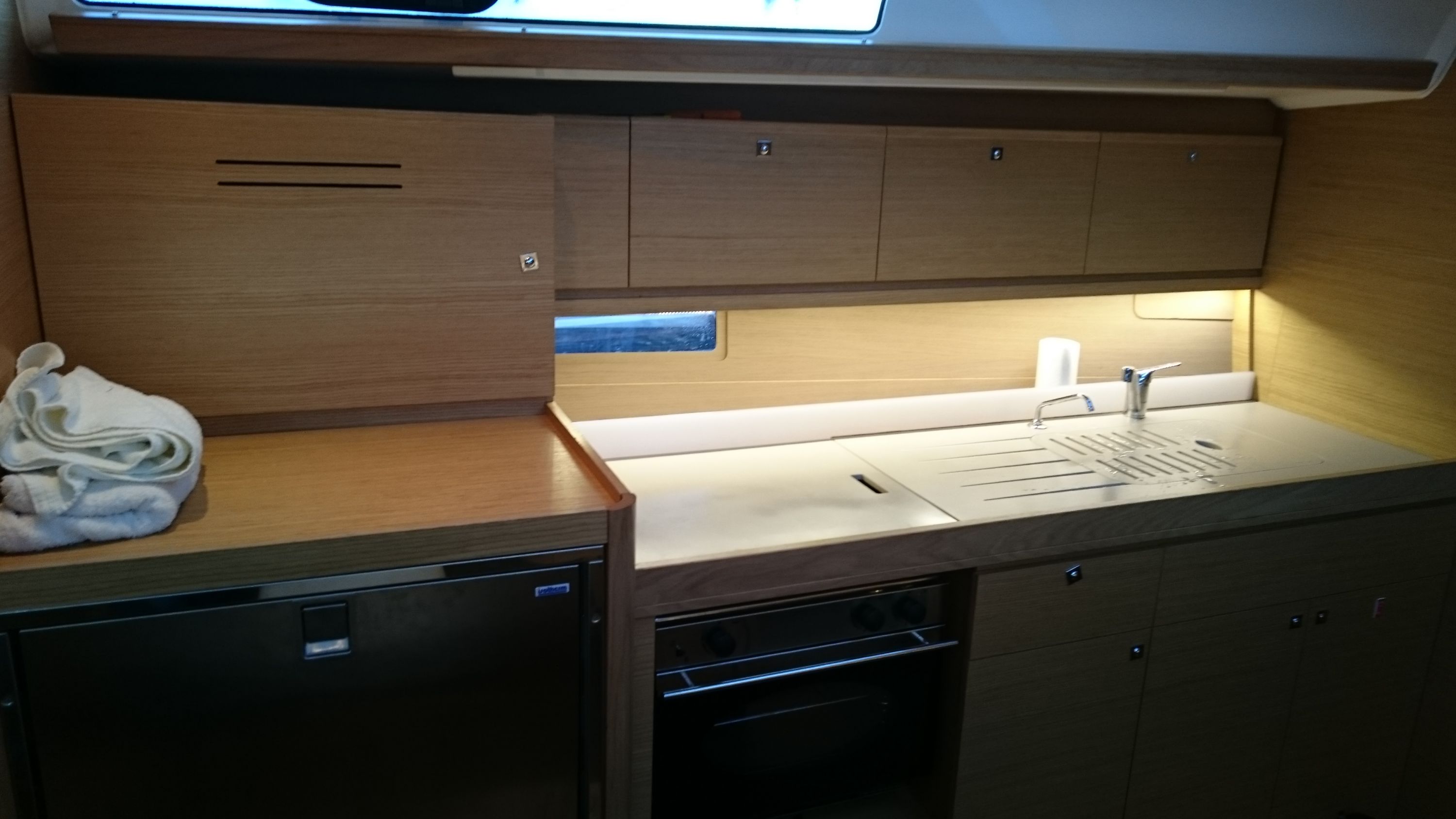 Freundlich, unkompliziert, sehr gute Übergabe und Rückgabe. Das Schiff wirkt sehr hell und geräumig für diese Größe. Wir wahren 4 Erw. und 2 Kinder vom Platz her kein Problem. Großer Kühlschrank(2×), schöne Küche. Super Steuereigenschaften unter Motor! Zum Segeln am Wind ist die Genuar zu kleine. Geschuldet der automatik Fog. Halb- und Rückenwind gehen gut.