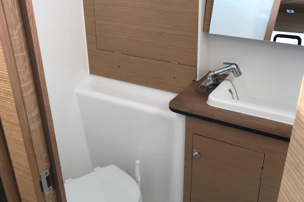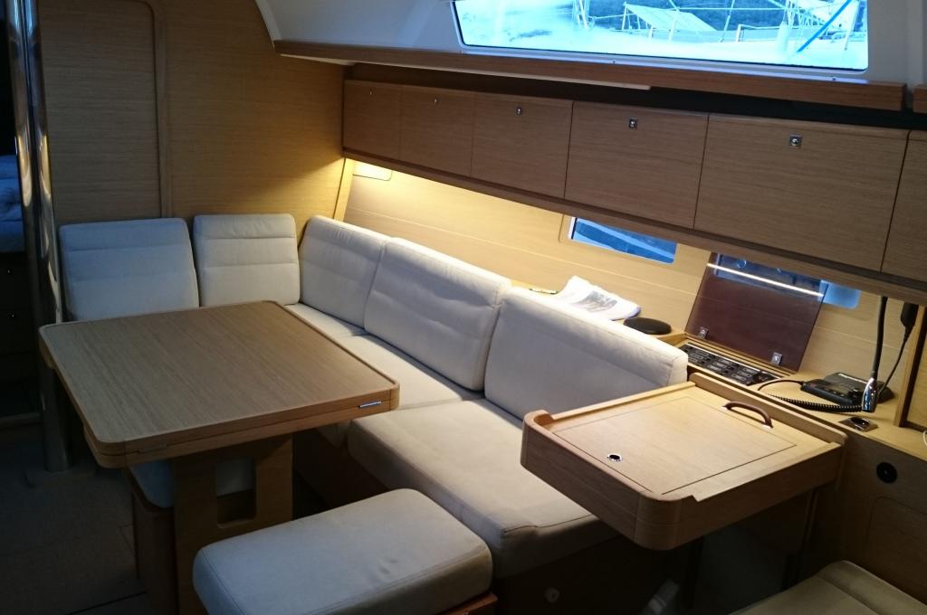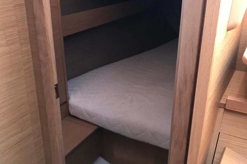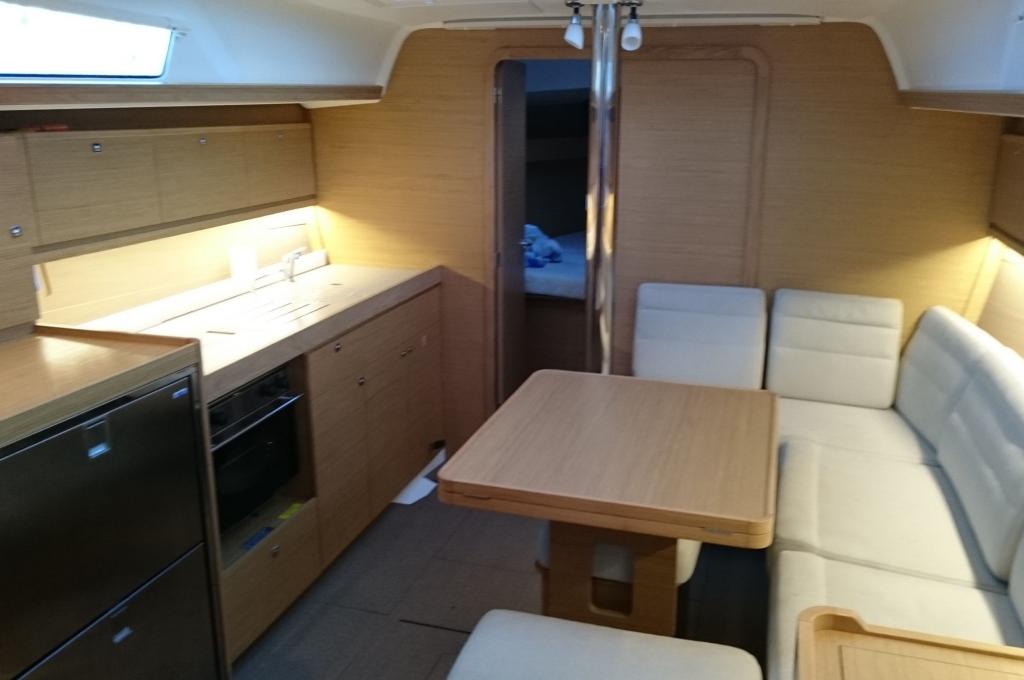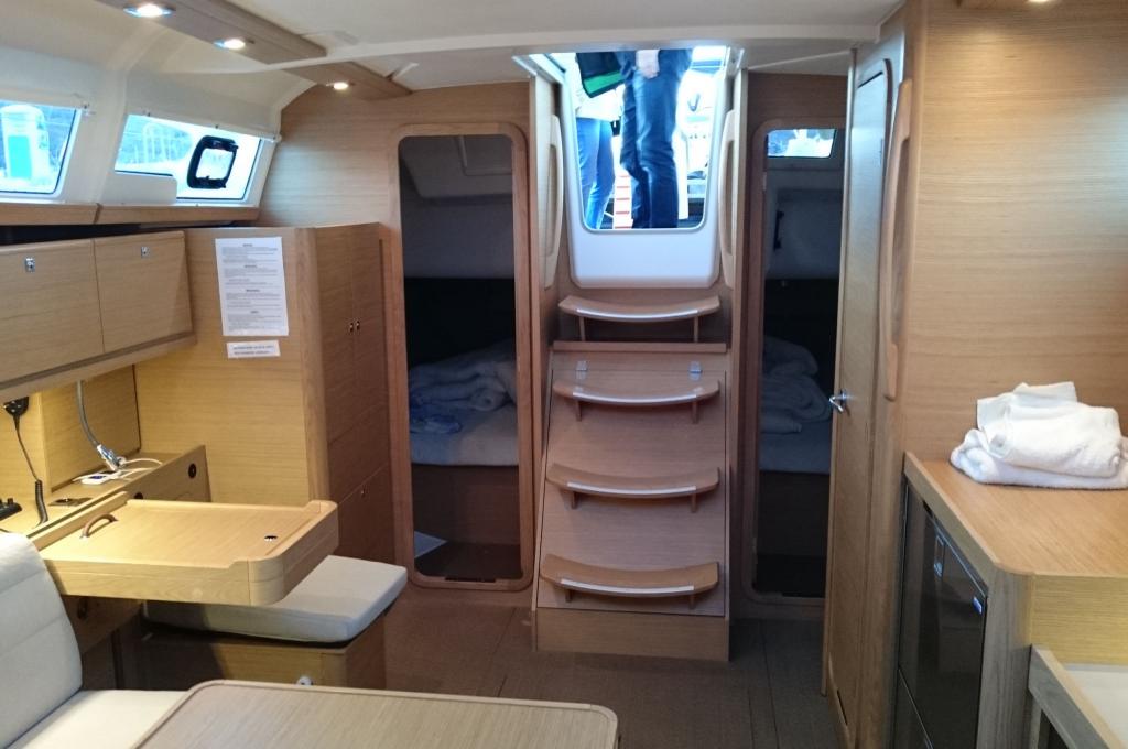 Freundlich, unkompliziert, sehr gute Übergabe und Rückgabe. Das Schiff wirkt sehr hell und geräumig für diese Größe. Wir wahren 4 Erw. und 2 Kinder vom Platz her kein Problem. Großer Kühlschrank(2×), schöne Küche. Super Steuereigenschaften unter Motor! Zum Segeln am Wind ist die Genuar zu kleine. Geschuldet der automatik Fog. Halb- und Rückenwind gehen gut.
