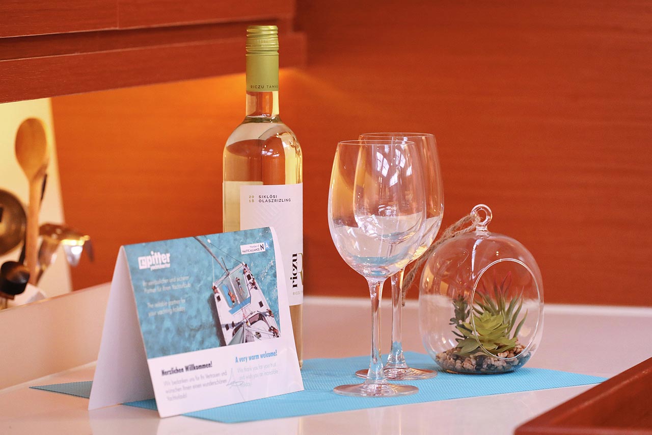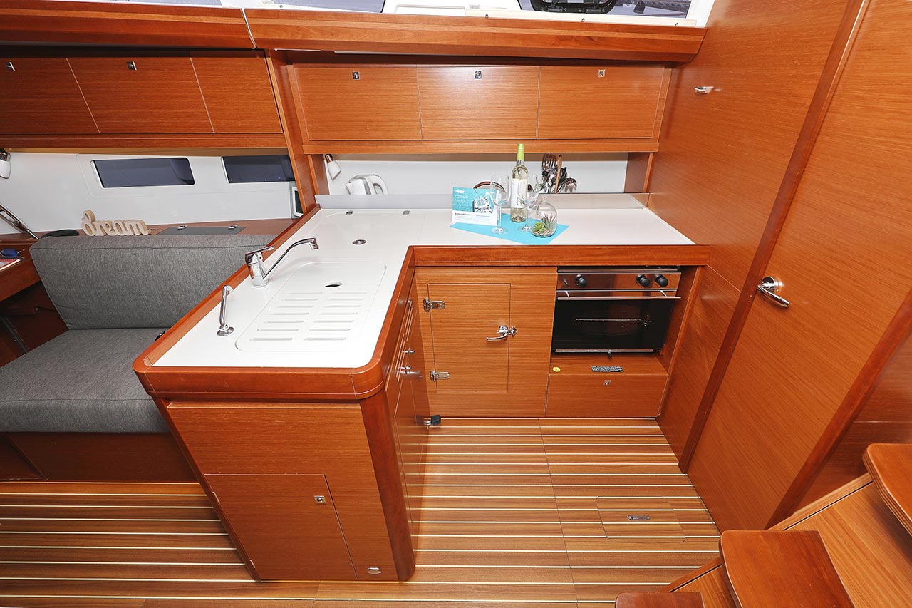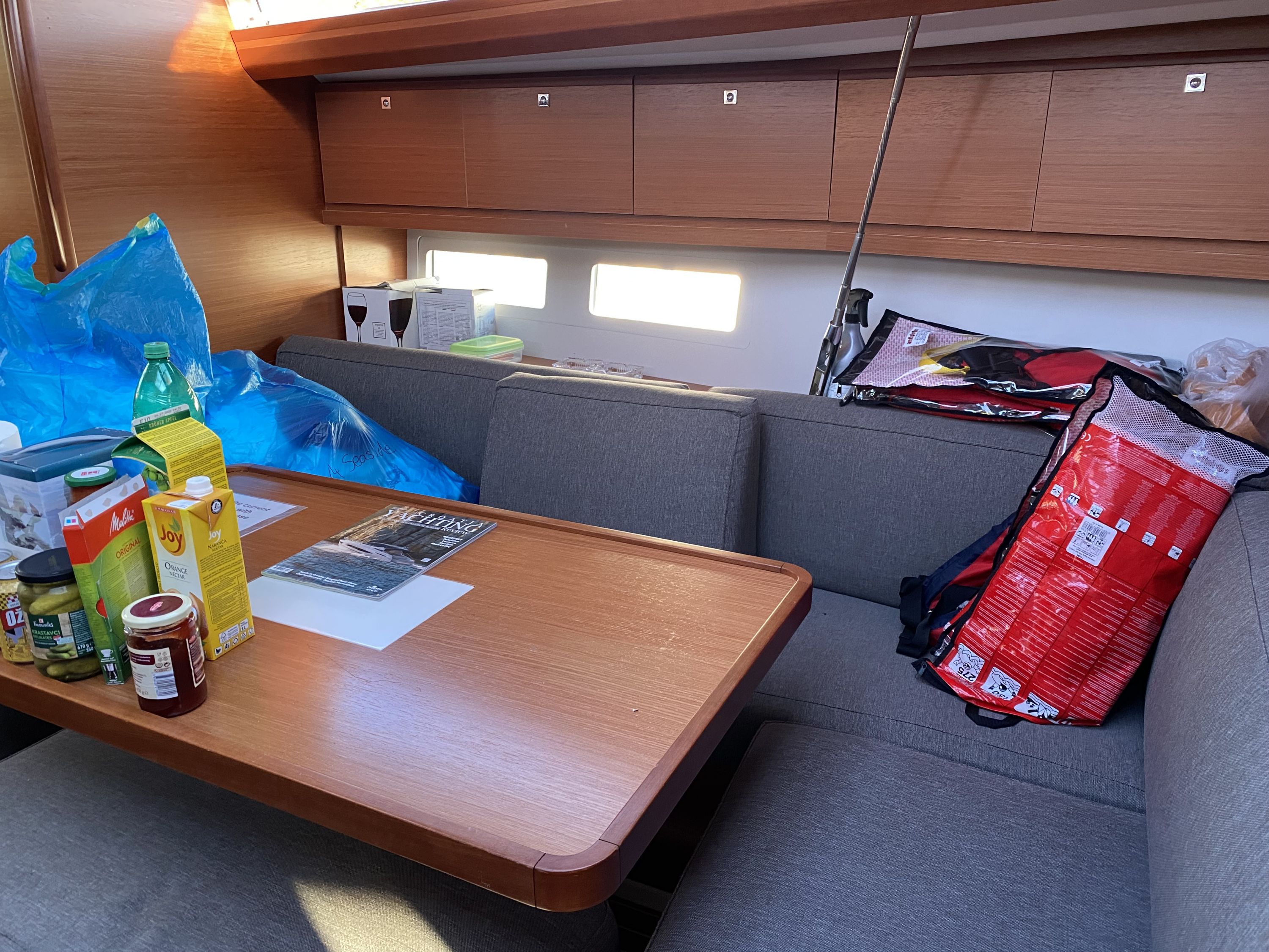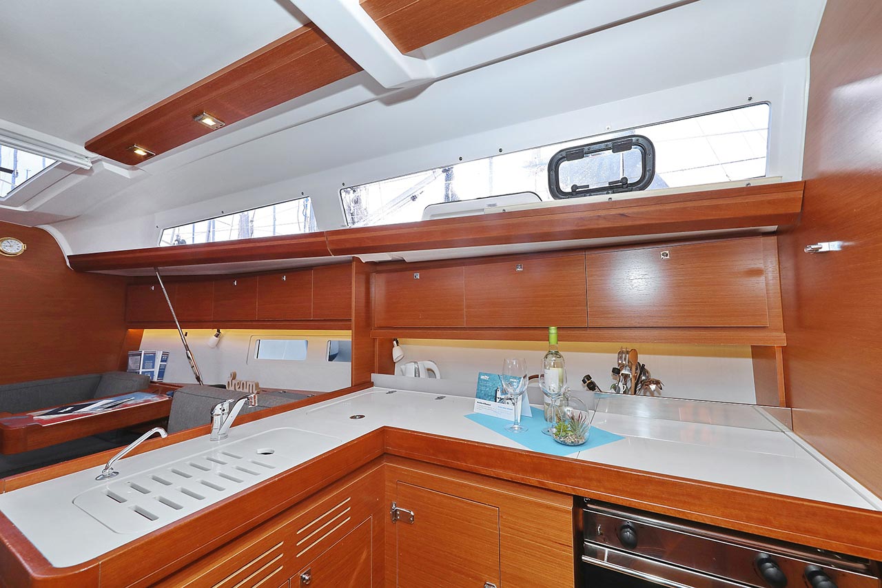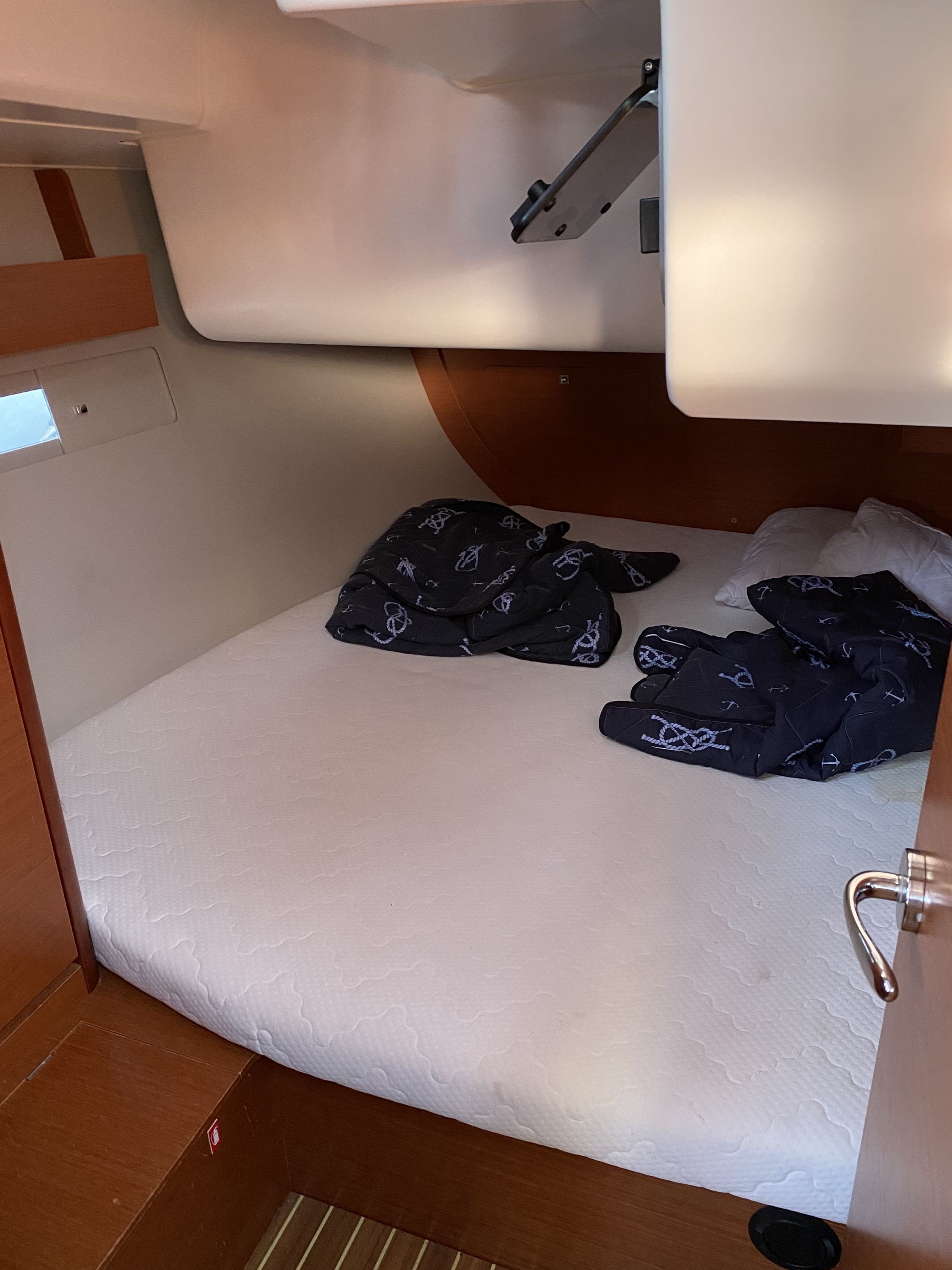 | Safety | Automatikwesten, Autopilot, Blitzboje, Bootsmannstuhl, Bordapotheke, Bordwerkzeug, Bugstrahlruder, Feuerlöscher, Lifebelts, Motor-Ersatzteile, Nebelhorn, Notsignale, Radarreflektor, Reparaturset für Beiboot, Rettungsinsel, Suchscheinwerfer, Taschenlampe, UKW-Funk, Zweitanker |