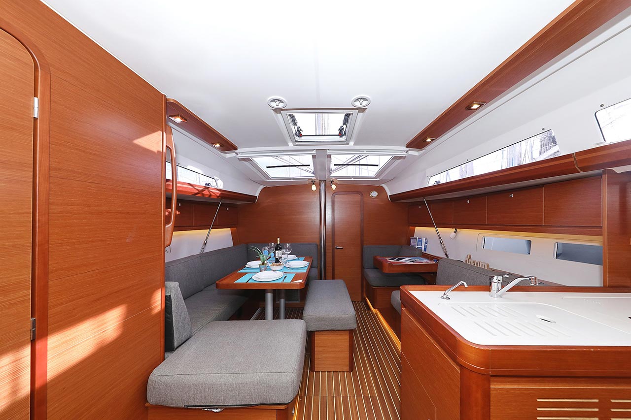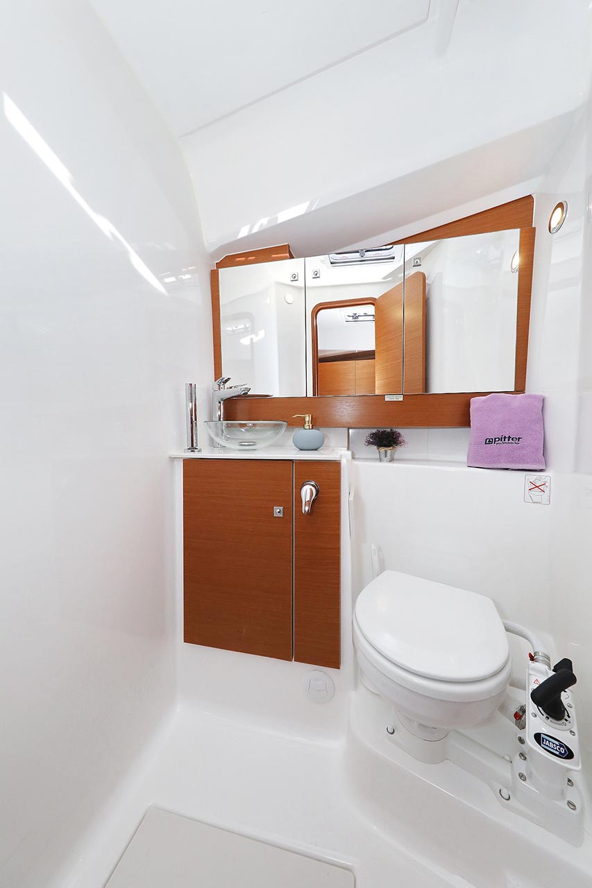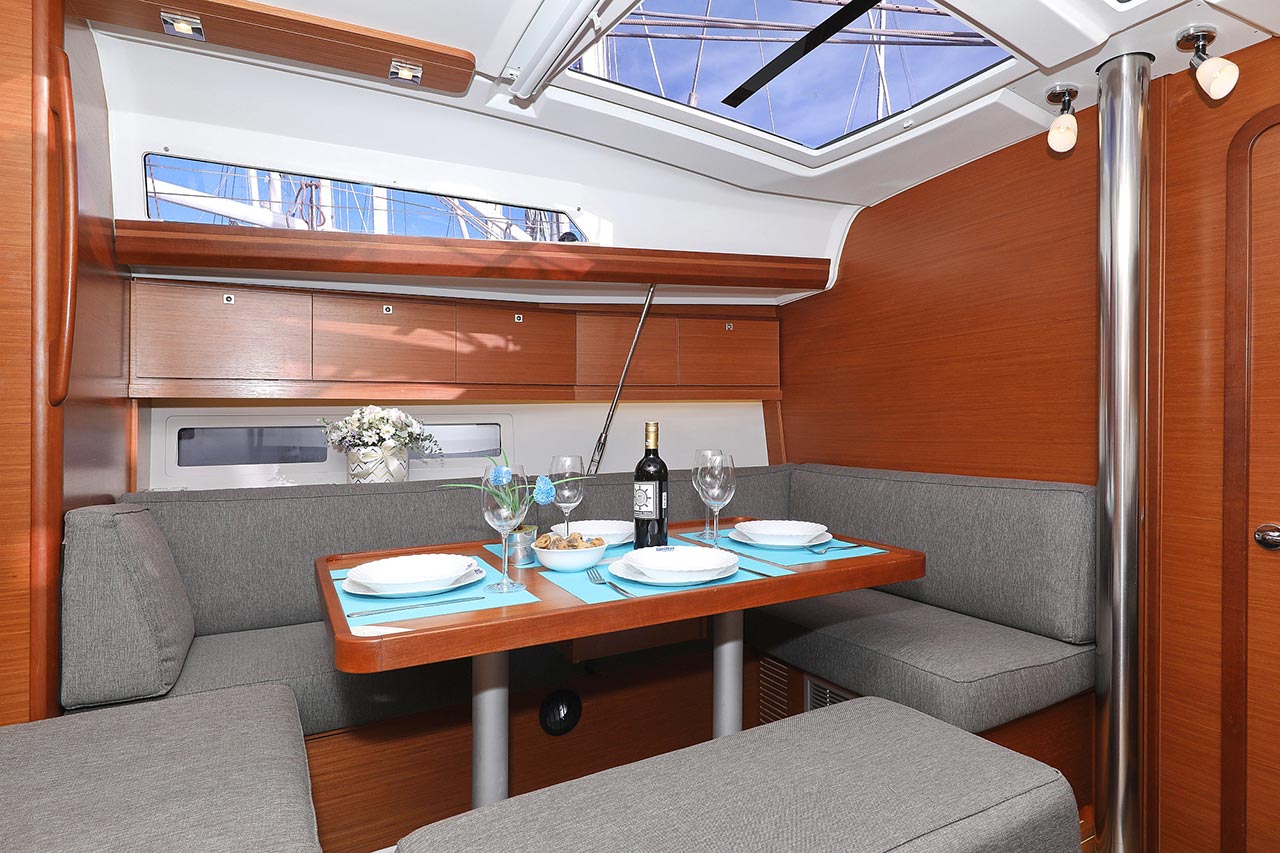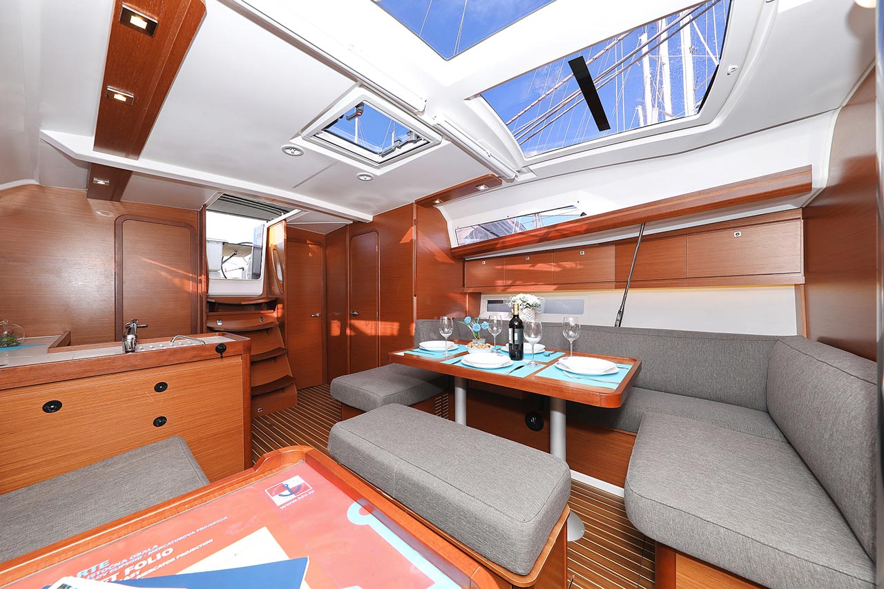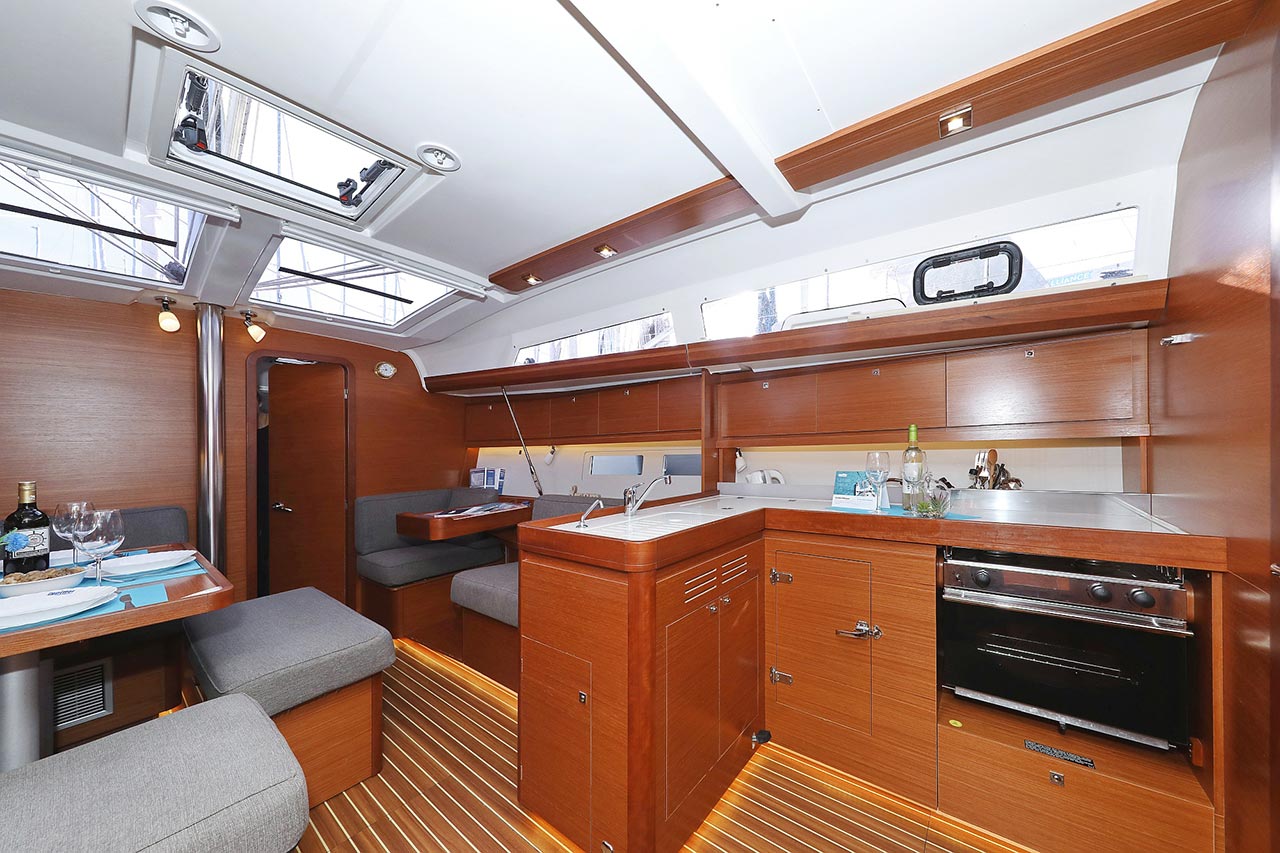 | Inside | 2. Kühlschrank, Borduhr, Dusche, Heizung, Inverter 12V/220V, Klimaanlage (Landstrom), Kühlschrank, Ladegerät, Luftpumpe für Beiboot, Pantryausstattung, Radio mit CD/MP3/USB, Salontisch absenkbar, Warmwasser, WC (elektr.) |