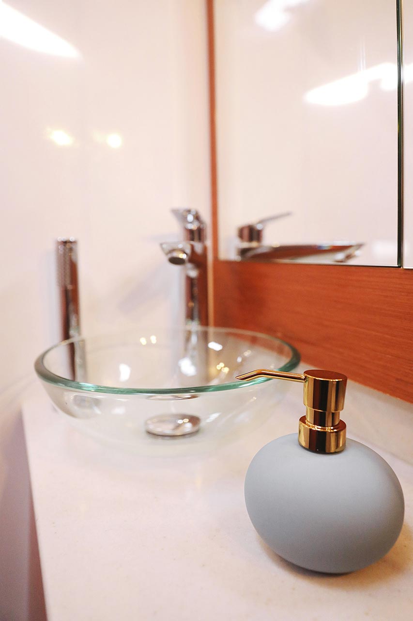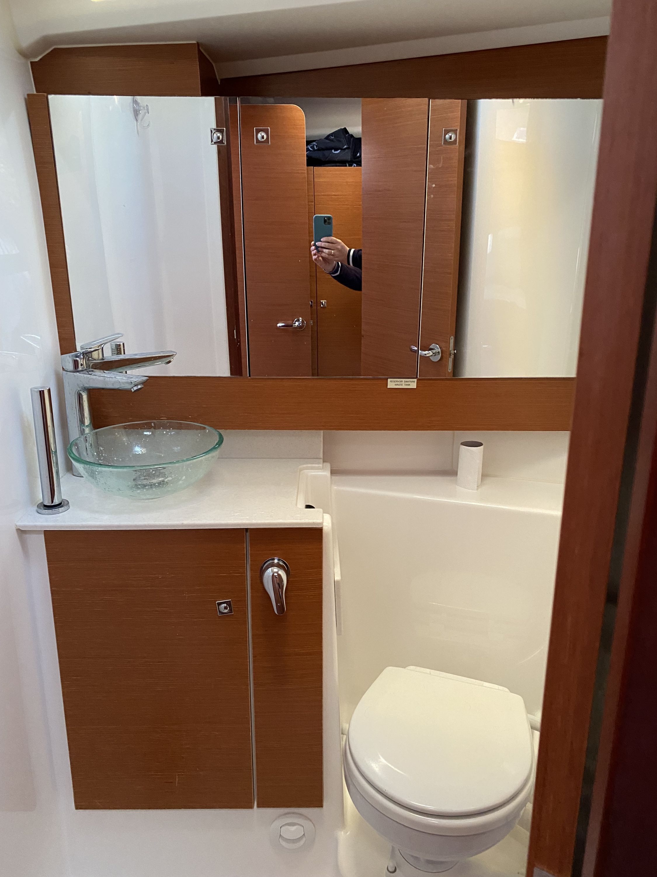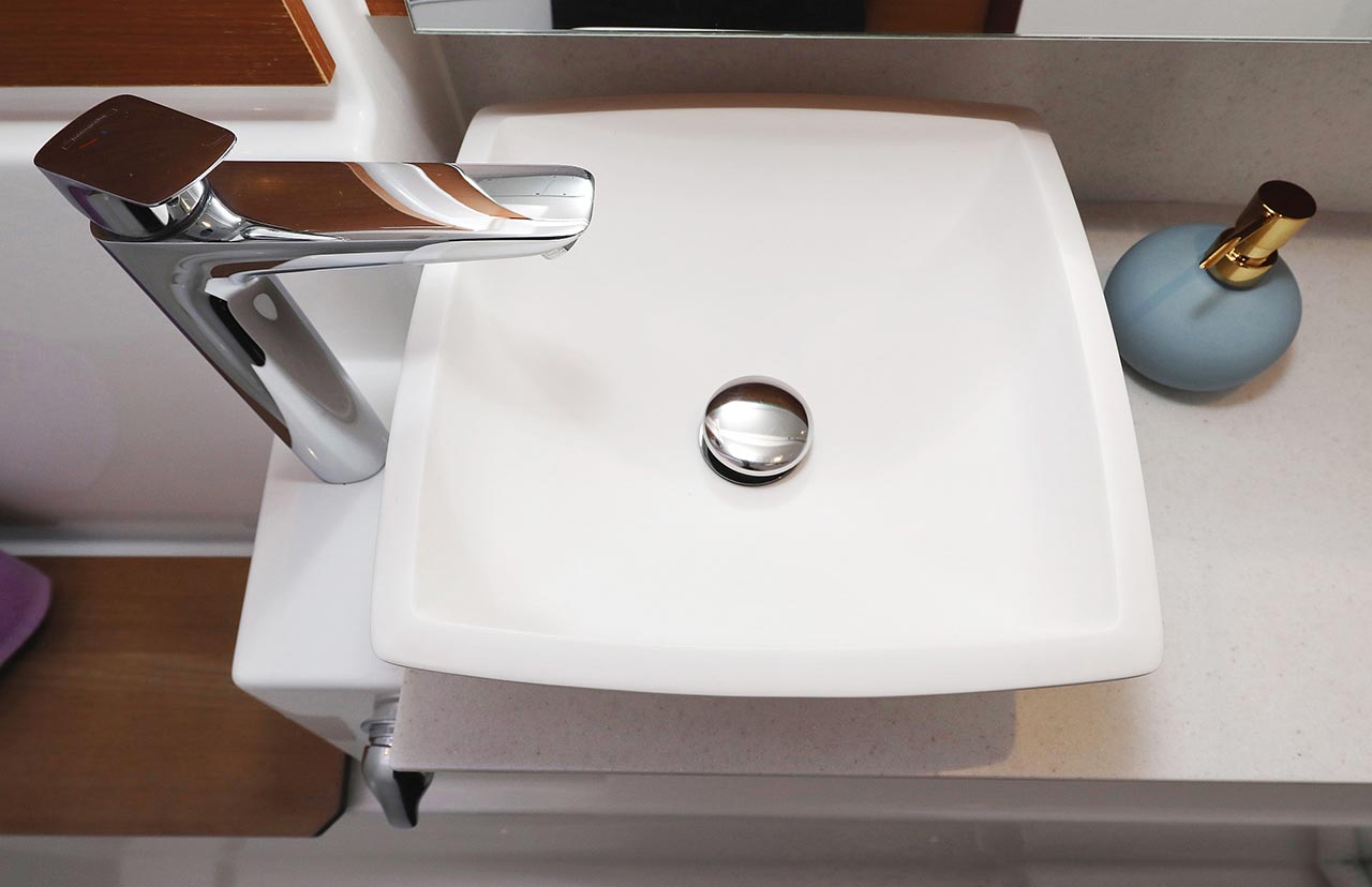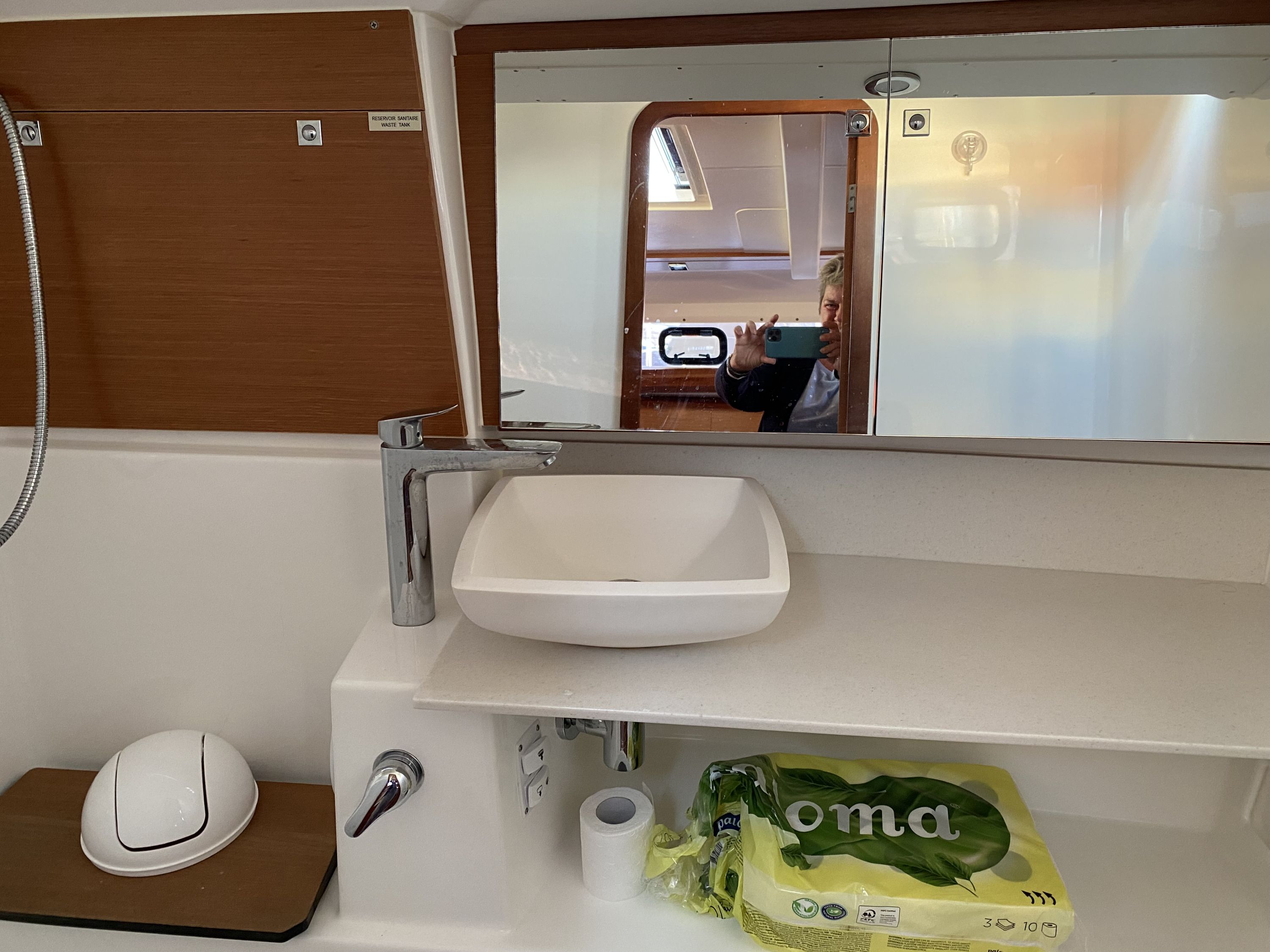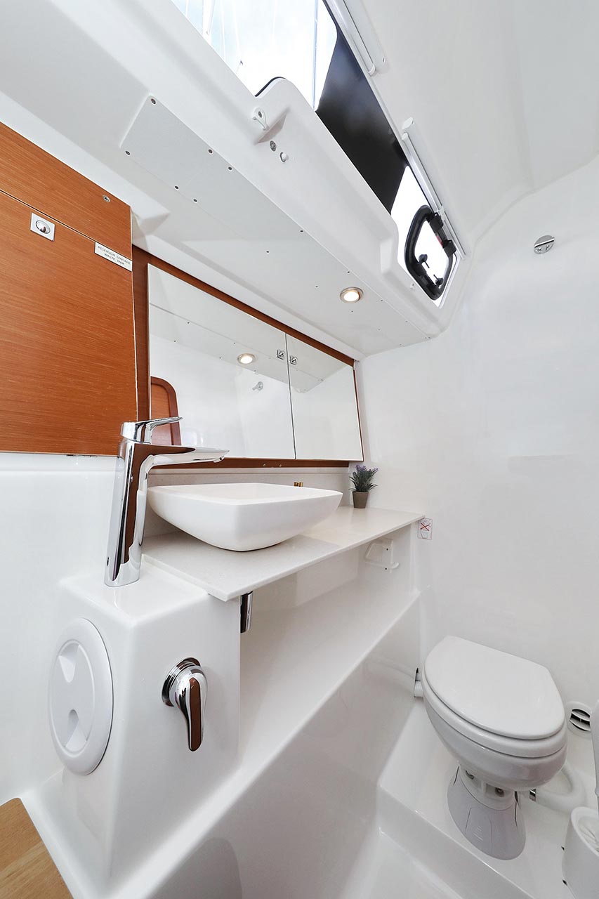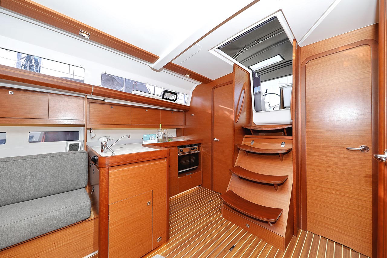 | Inside | 2. Kühlschrank, Borduhr, Dusche, Heizung, Inverter 12V/220V, Klimaanlage (Landstrom), Kühlschrank, Ladegerät, Luftpumpe für Beiboot, Pantryausstattung, Radio mit CD/MP3/USB, Salontisch absenkbar, Warmwasser, WC (elektr.) |