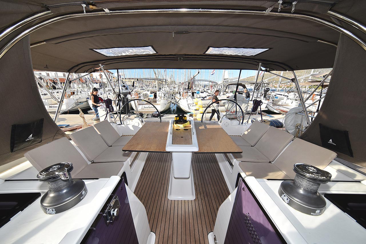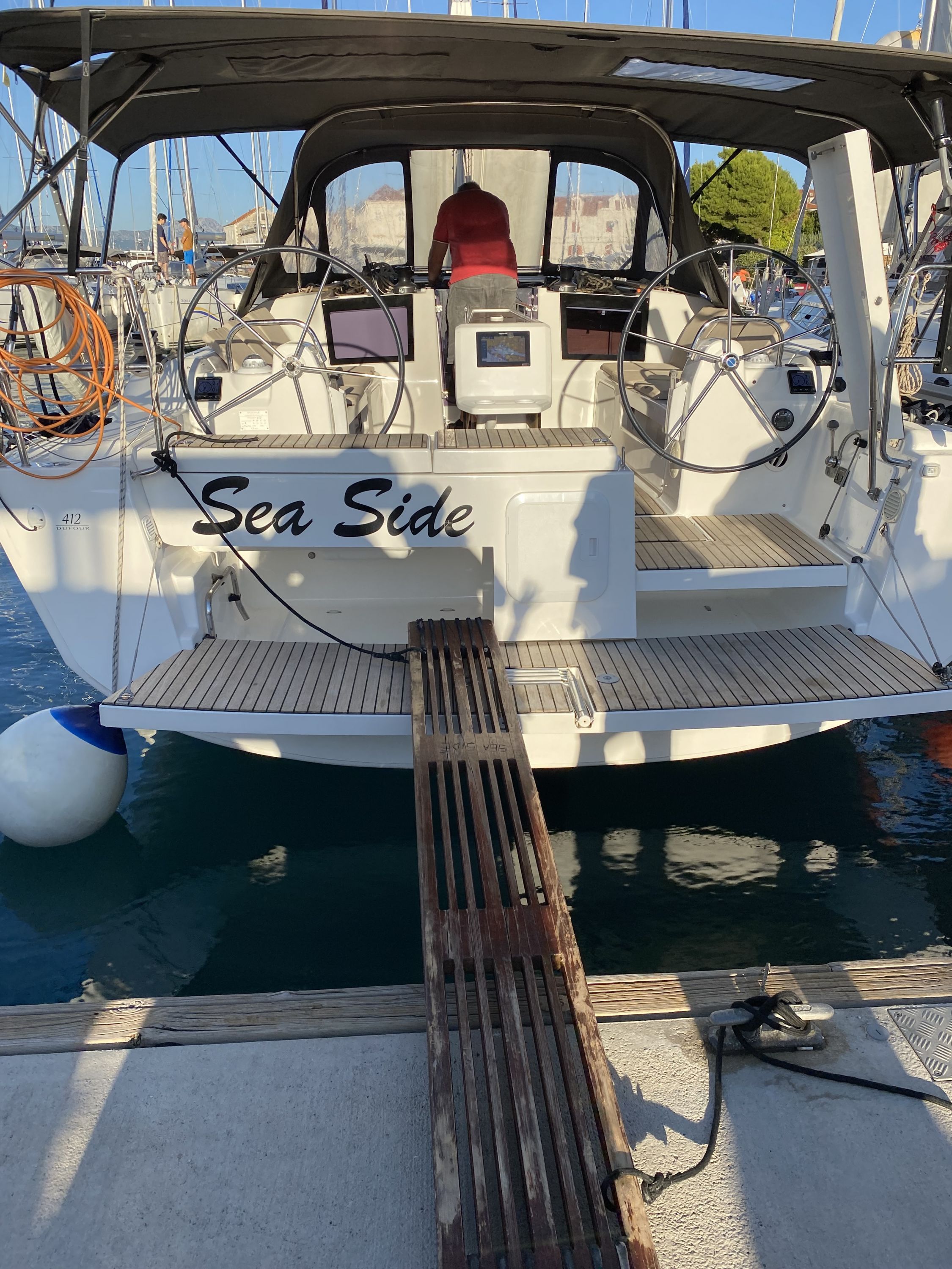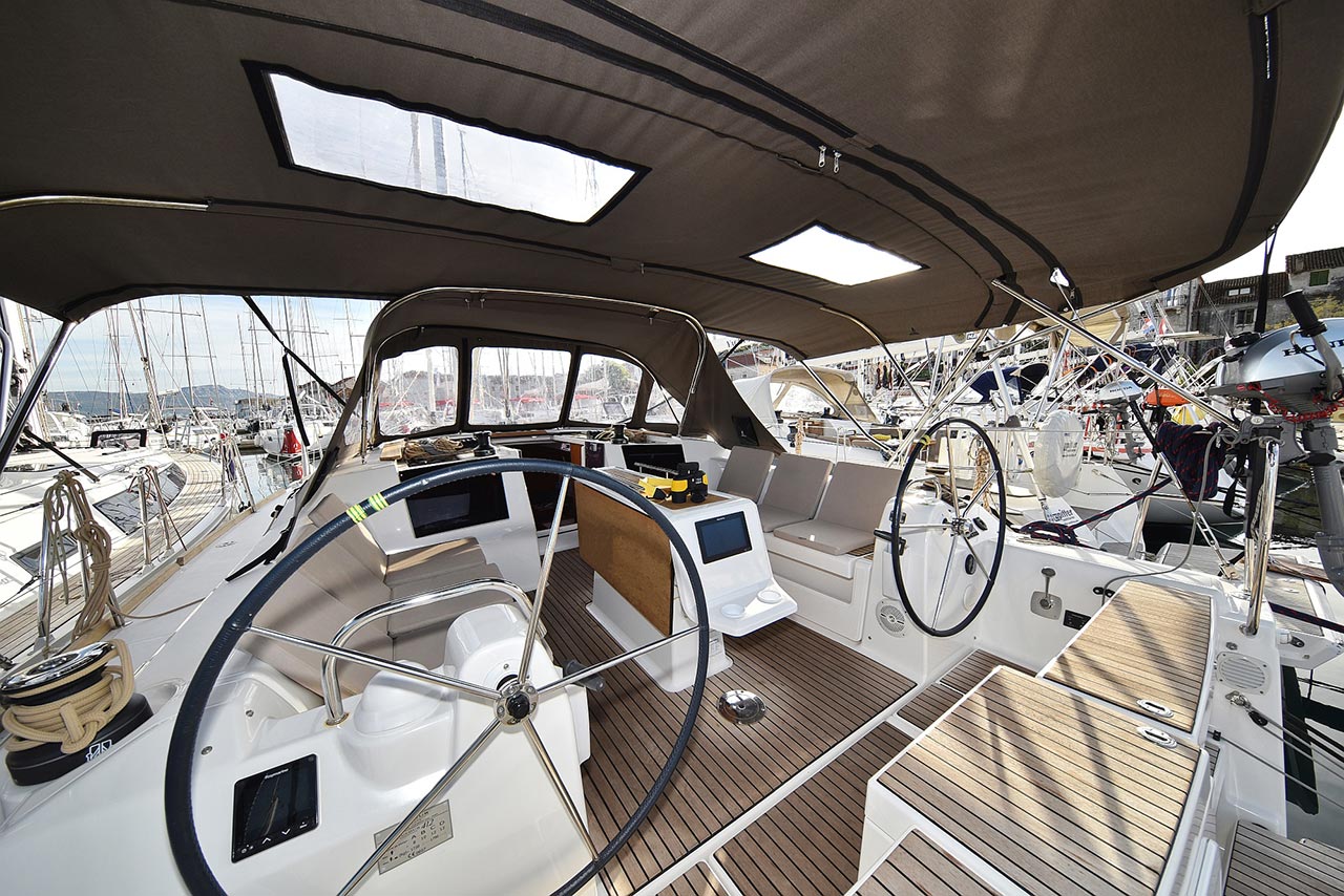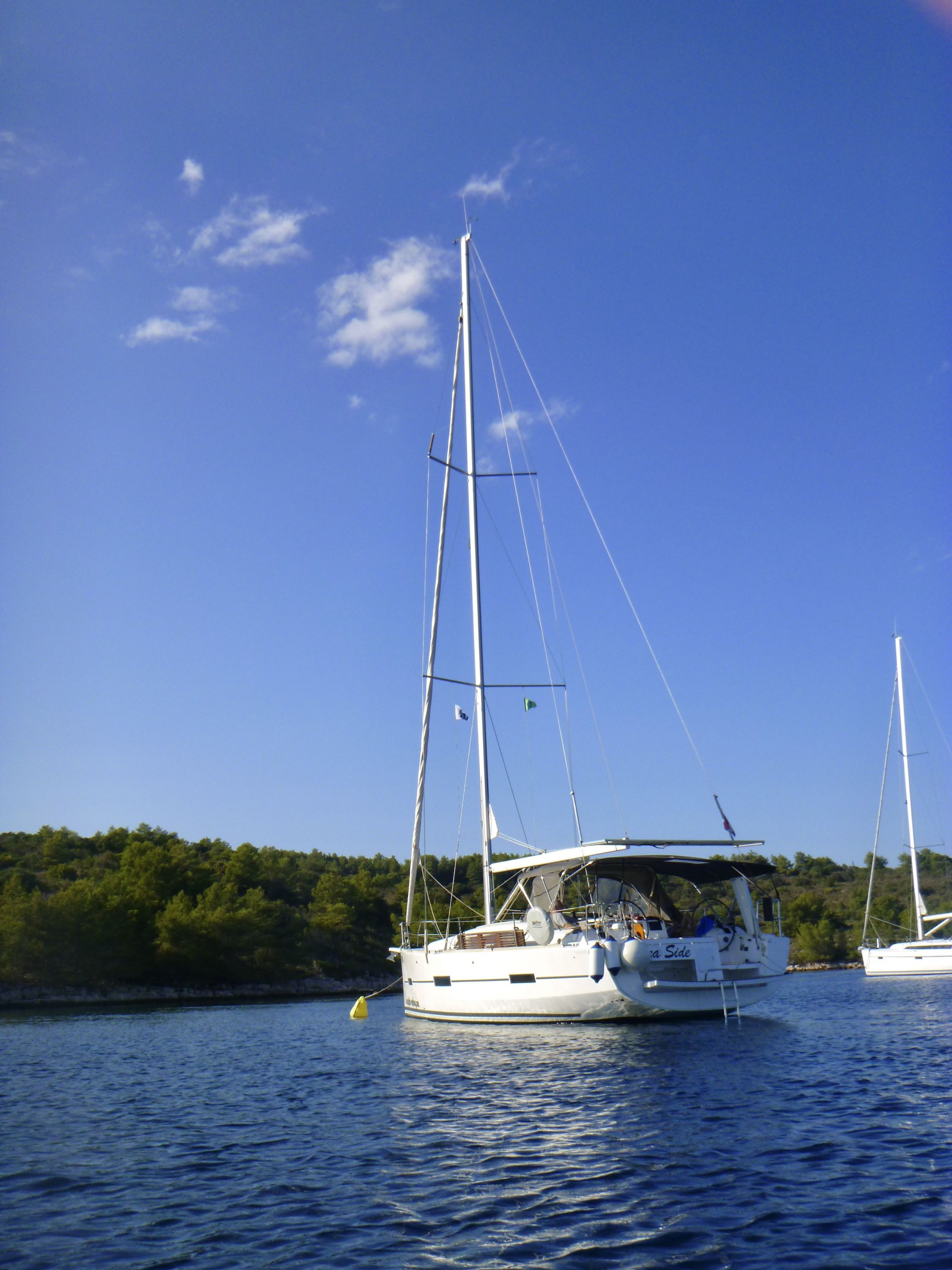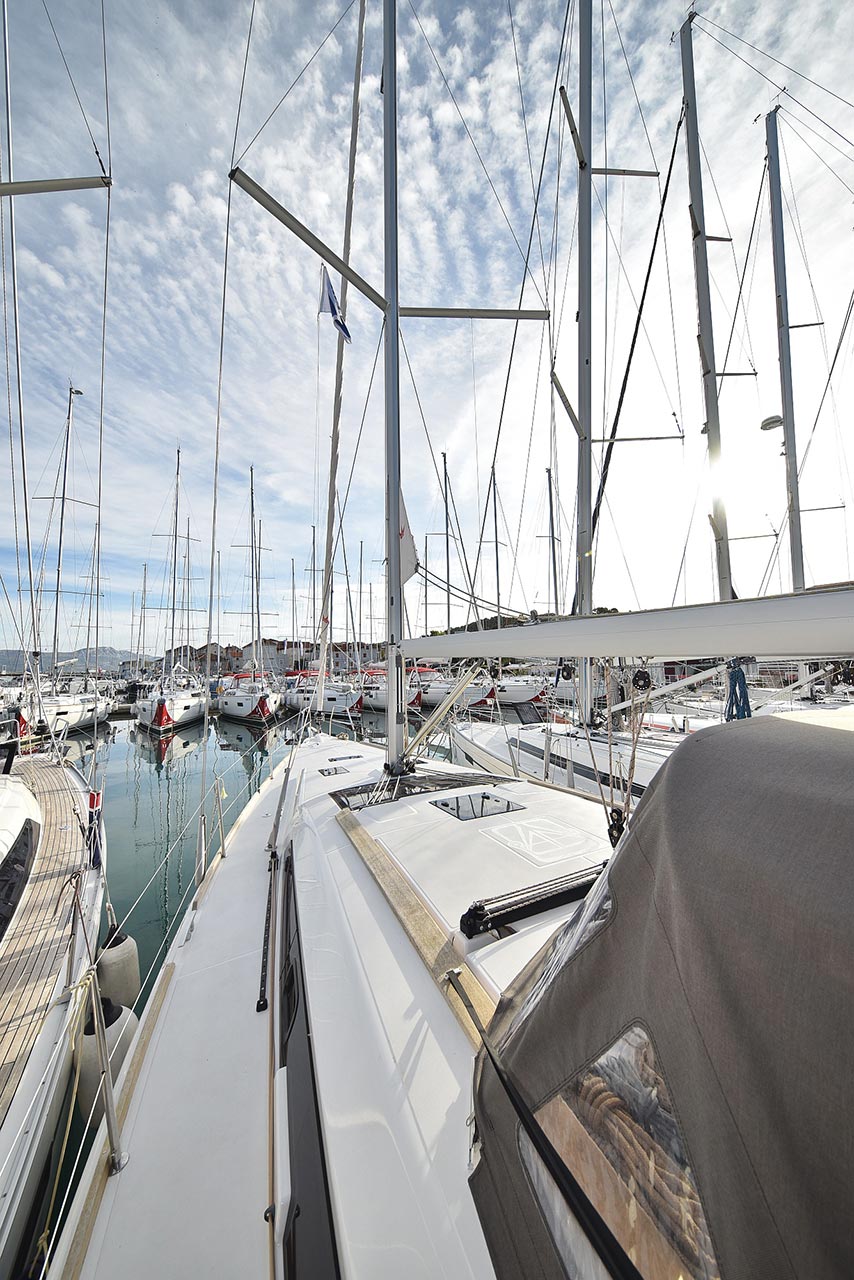 | Outside | 220 V-Landanschluss, Anker mit Kette, Ankerwinsch, Badeplattform, Biminitop, Bootshaken, Cockpitdusche, Cockpitlautsprecher, Cockpitpolster, Cockpittisch, Dieselkanister , elektr. Ankerwinsch, Fender, Festmacherleinen, Gangway, Kugelfender, Kunststoff-Eimer (Pütz), Solaranlage, Sprayhood, Teak im Cockpit, Wantenschneider, Wasserkanister , Wasserschlauch |