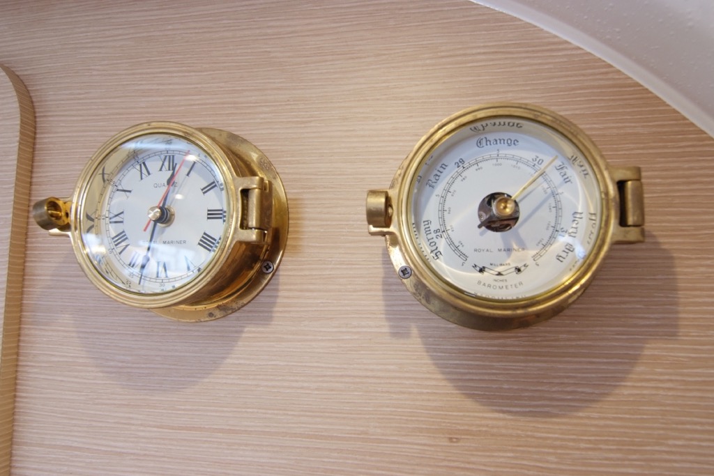 | Navigation | Fernglas, GPS mit Kartenplotter im Cockpit, Hafenhandbücher, Handpeilkompass, Seekarten, Tridata (Log, Echolot, Windm.) |