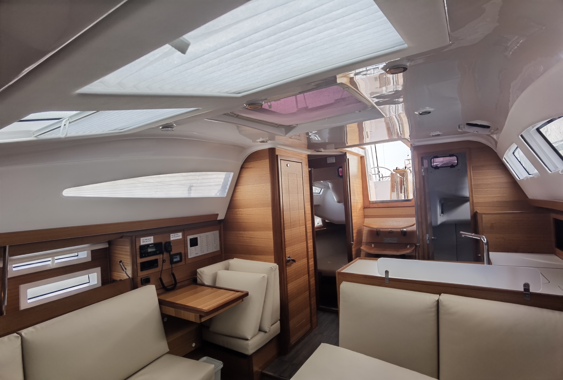 | Outside | Badeplattform, Biminitop, Cockpitdusche, Cockpitkühlschrank, Cockpitpolster, Cockpittisch, Deckbeleuchtung, Delta-Anker, elektr. Ankerwinsch, Grill, Solaranlage, Sprayhood |