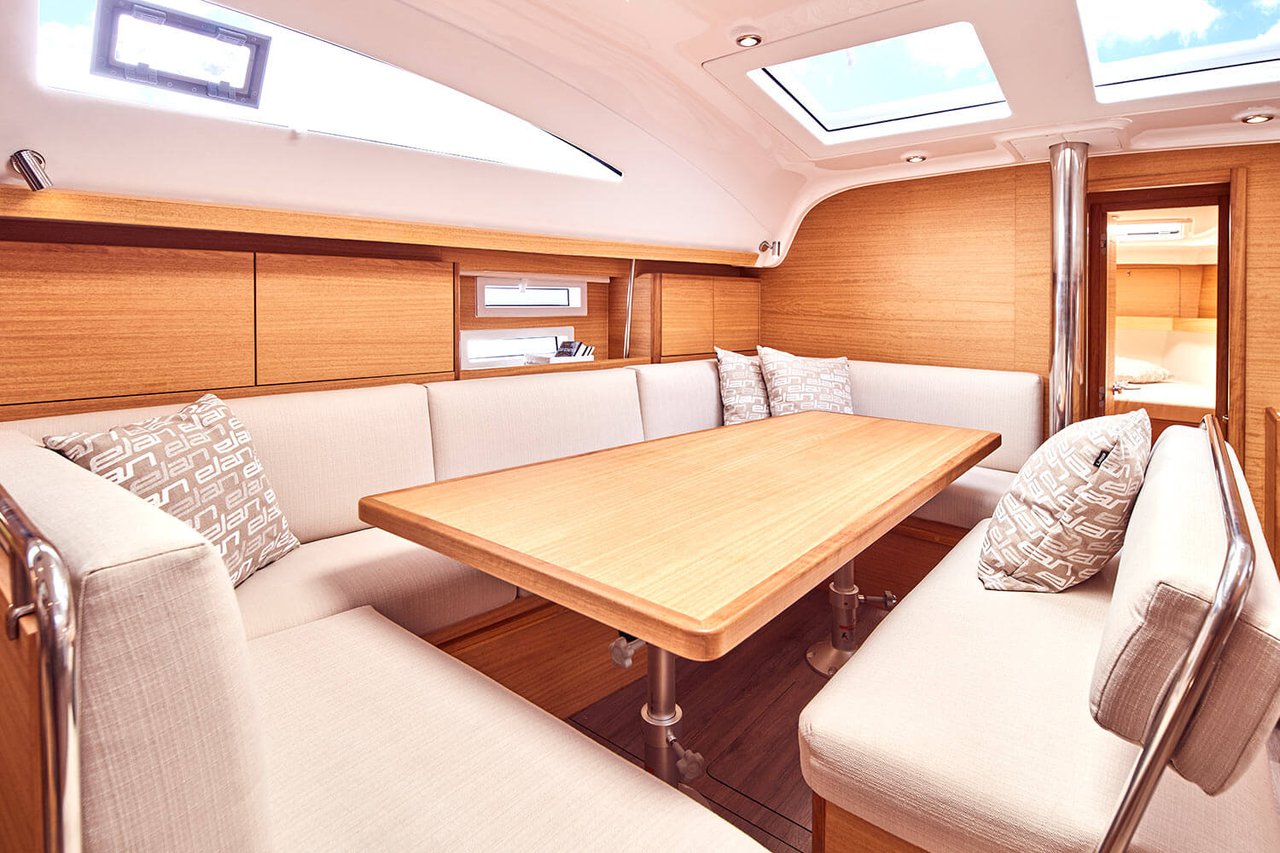 | Outside | Badeplattform, Biminitop, Cockpitdusche, Cockpitkühlschrank, Cockpitlautsprecher, Cockpitpolster, Cockpittisch, Fallwinschen, Fender, Grill, Kugelfender, Solaranlage, Sprayhood, Teak im Cockpit |