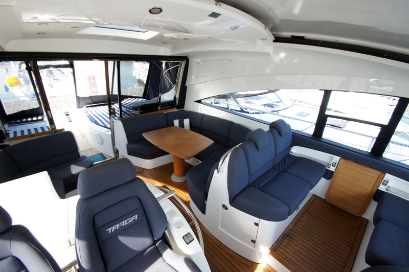 | Outside | 220 V-Landanschluss, Anker mit Kette, Badeleiter, Badeplattform, Cockpitdusche warm/kalt, Cockpitpolster, Cockpittisch, elektr. Ankerwinsch, elektr. Gangway, elektr. Winsch, Fender, Grill, Hardtop, Scheibenwischer, Seereling, Sonnensegel, Teakdeck |